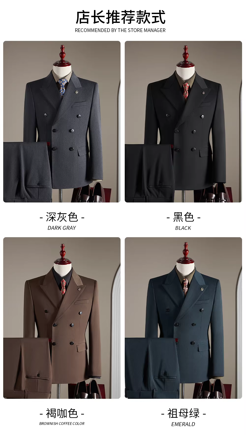 Bộ vest nam chất liệu len, kiểu dáng hai hàng khuy, trang phục công sở lịch lãm, chất lượng cao, ôm dáng, size lớn, bộ vest cưới chú rể ba món