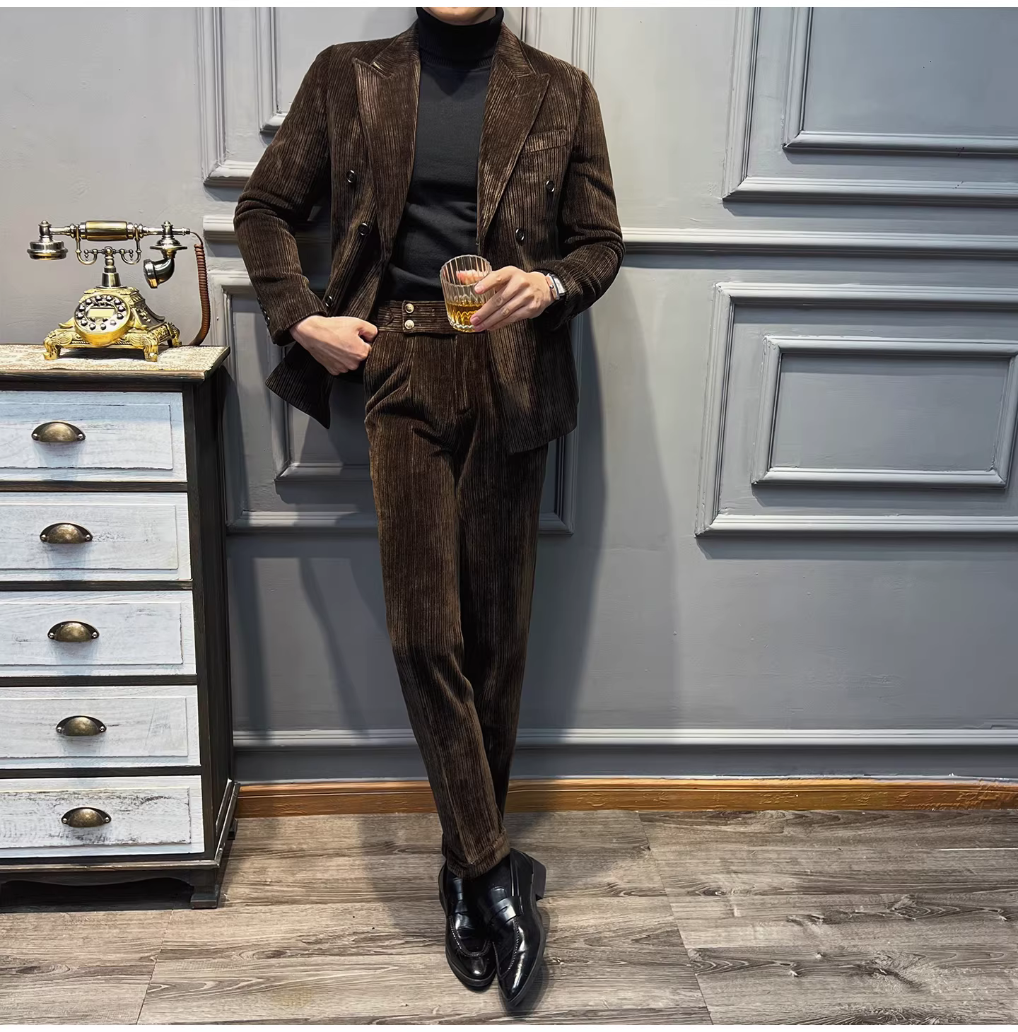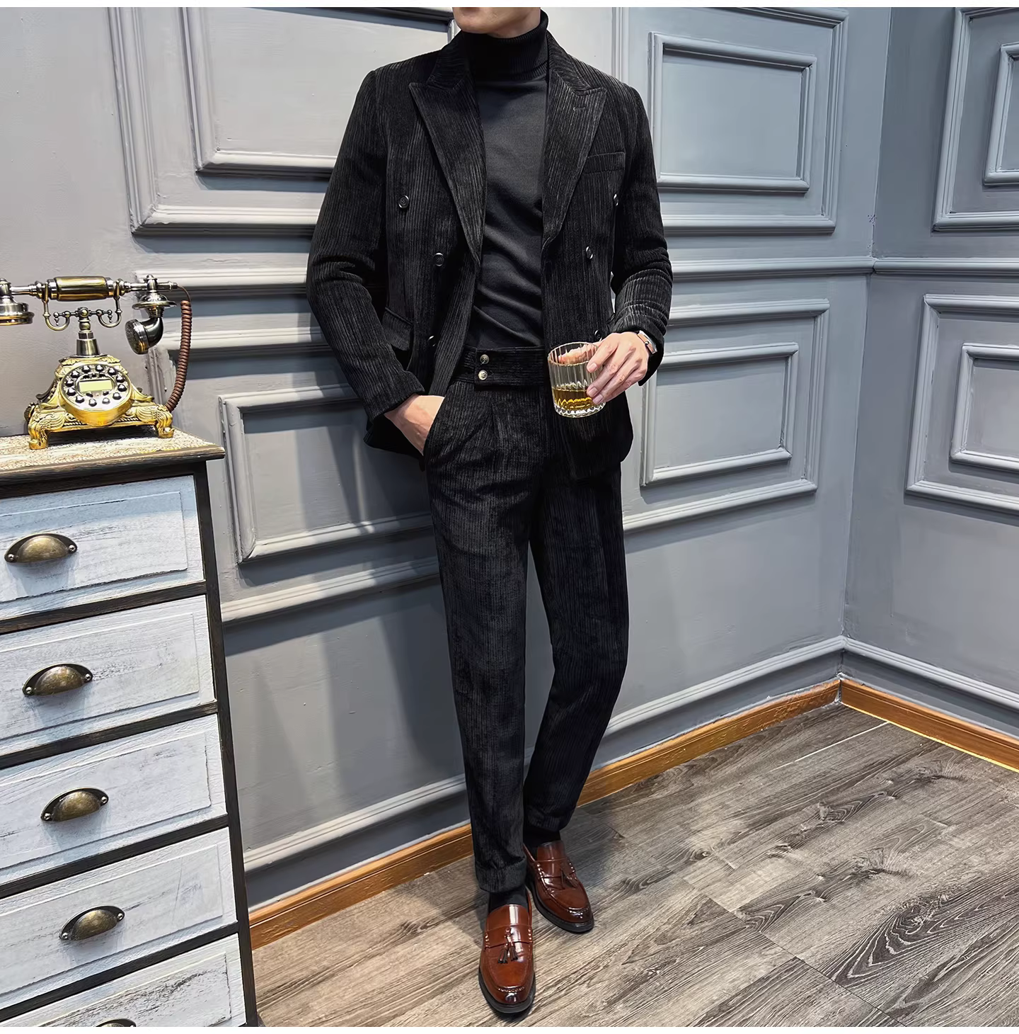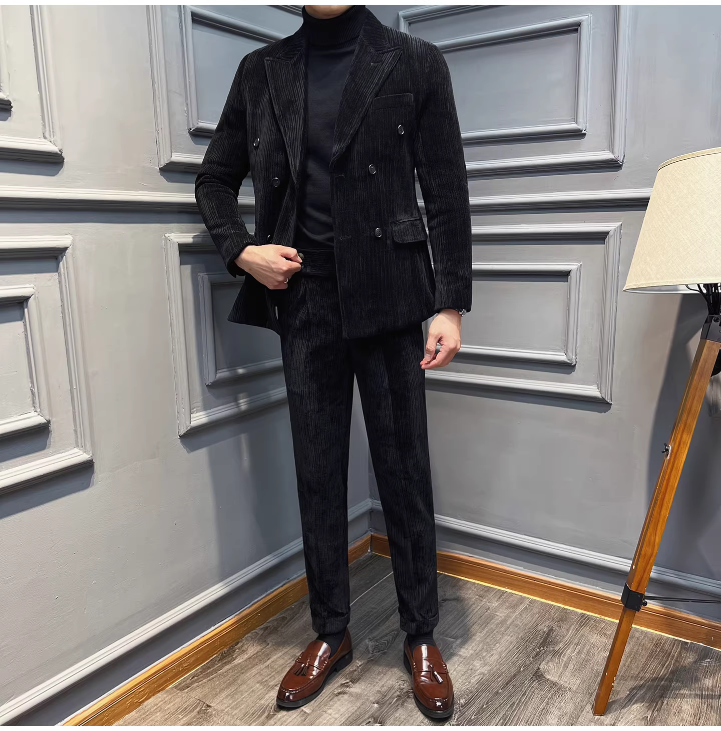 Bộ vest nam chất liệu nhung dày, dáng ôm, kiểu dáng mới thu đông, thời trang công sở lịch lãm, đa năng.