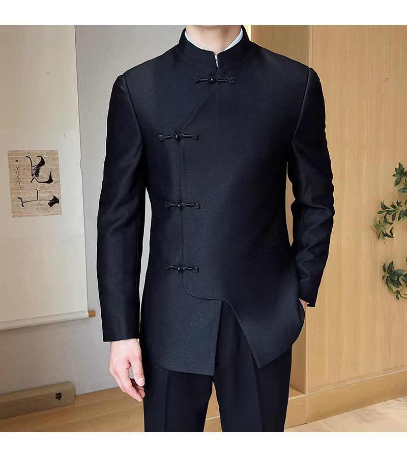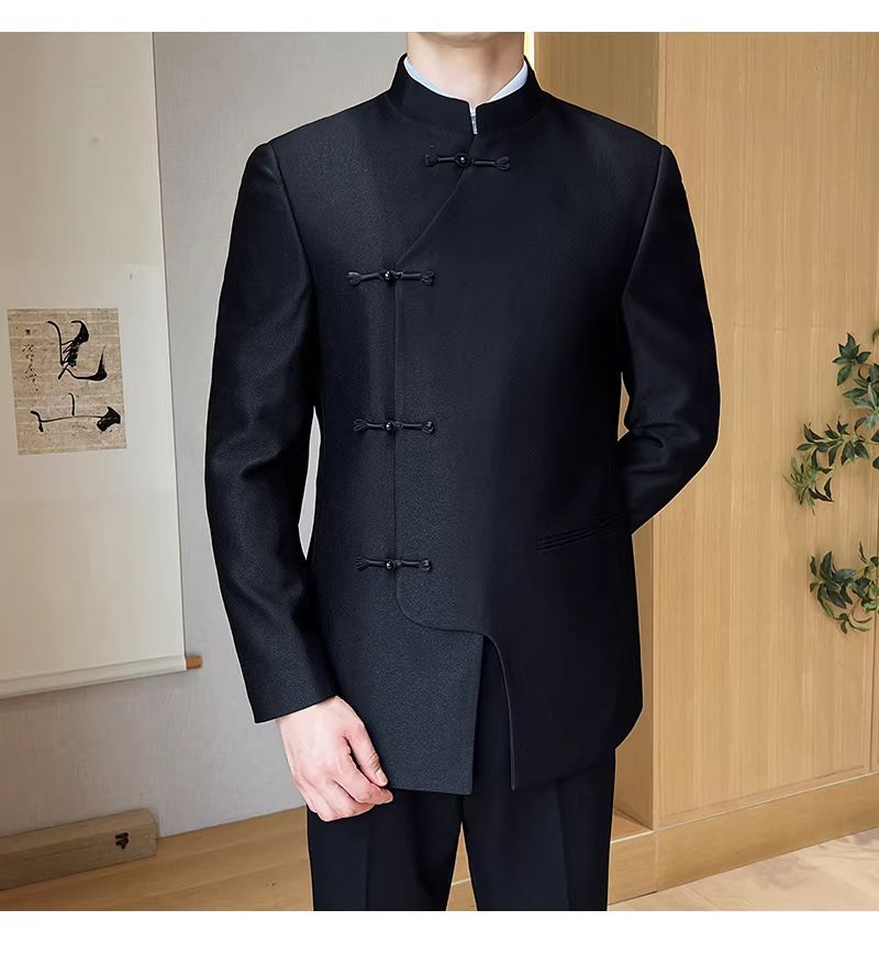 - Bộ vest nam cổ đứng kiểu Trung Quốc, phong cách công sở lịch lãm, đa năng, thời trang, thích hợp dự tiệc, vest chú rể cưới