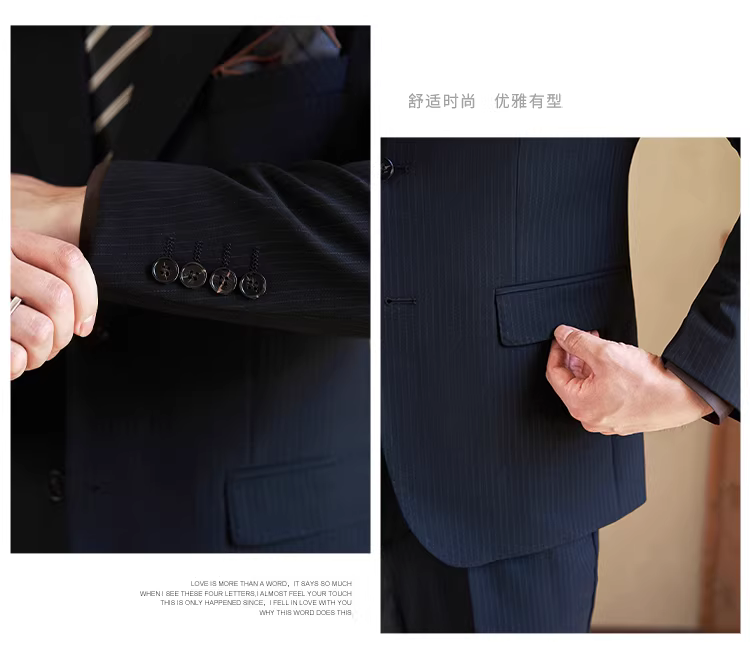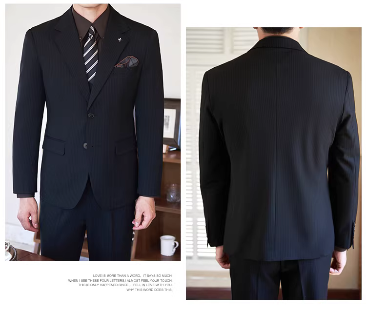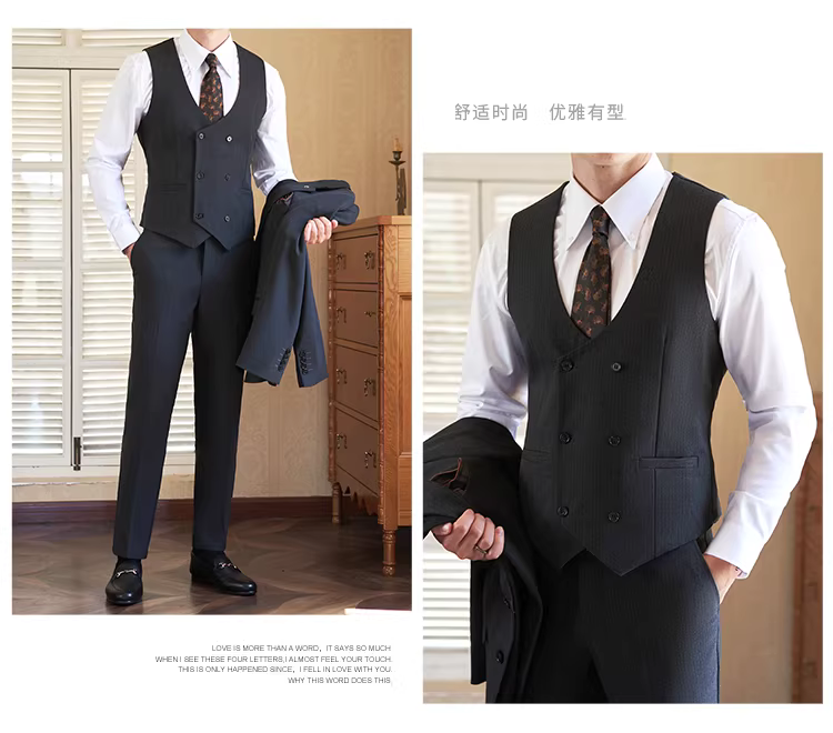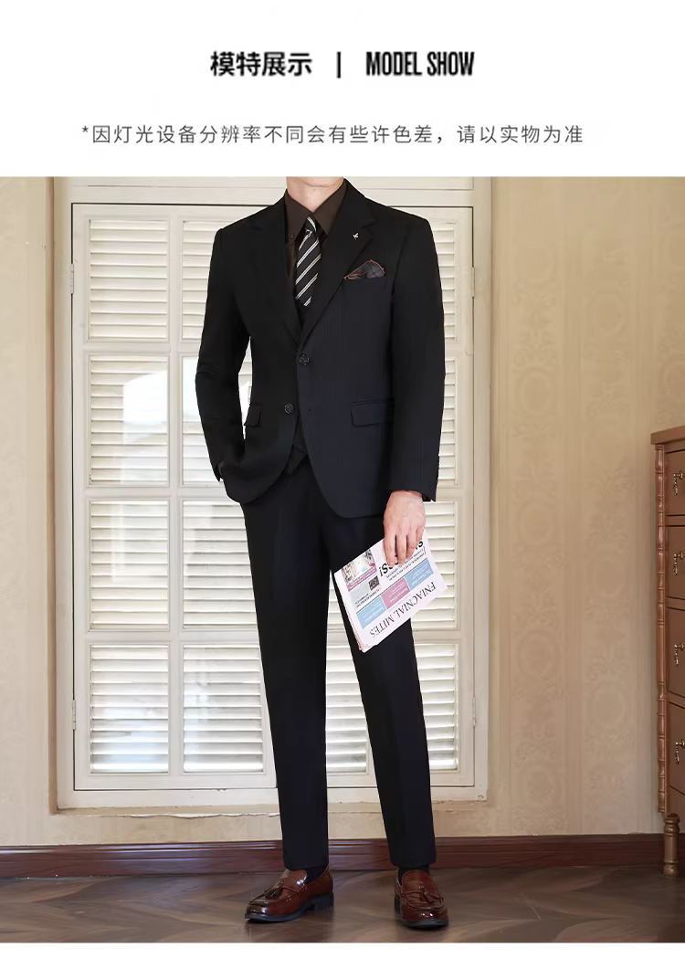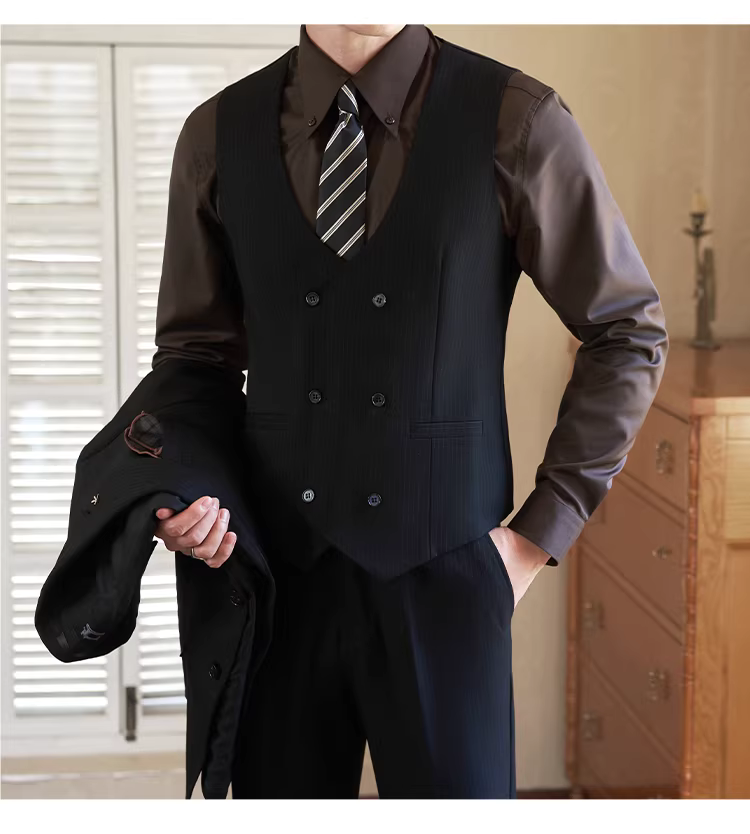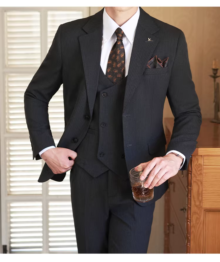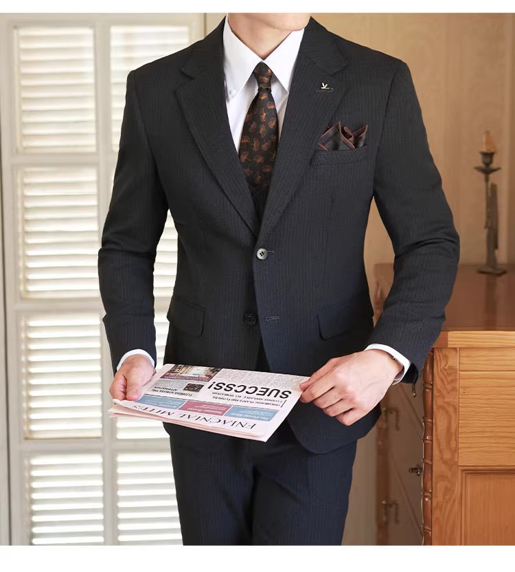 - Bộ vest nam kiểu Anh, kẻ sọc, vest công sở, trang phục dạ hội, đám cưới, kiểu dáng ôm sát, chất liệu cao cấp, bộ ba món.
