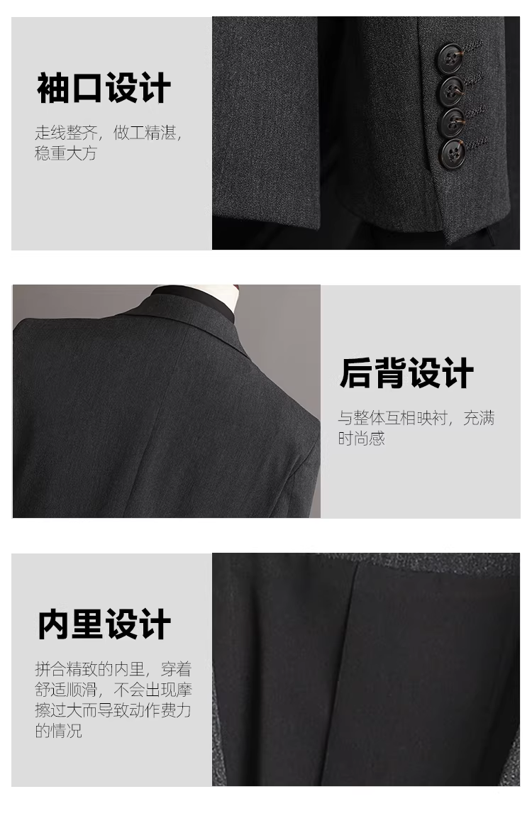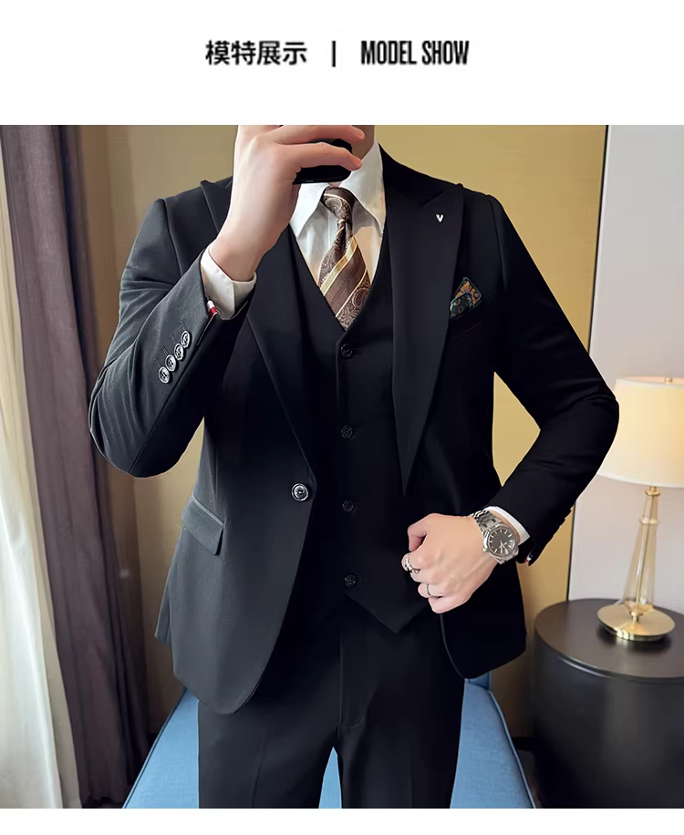 Bộ vest nam một cúc, dáng ôm, chất liệu cao cấp, lịch lãm, dễ chăm sóc, gồm ba món.