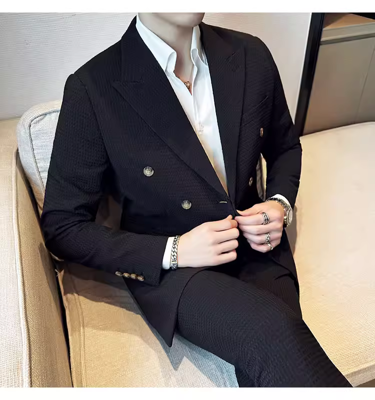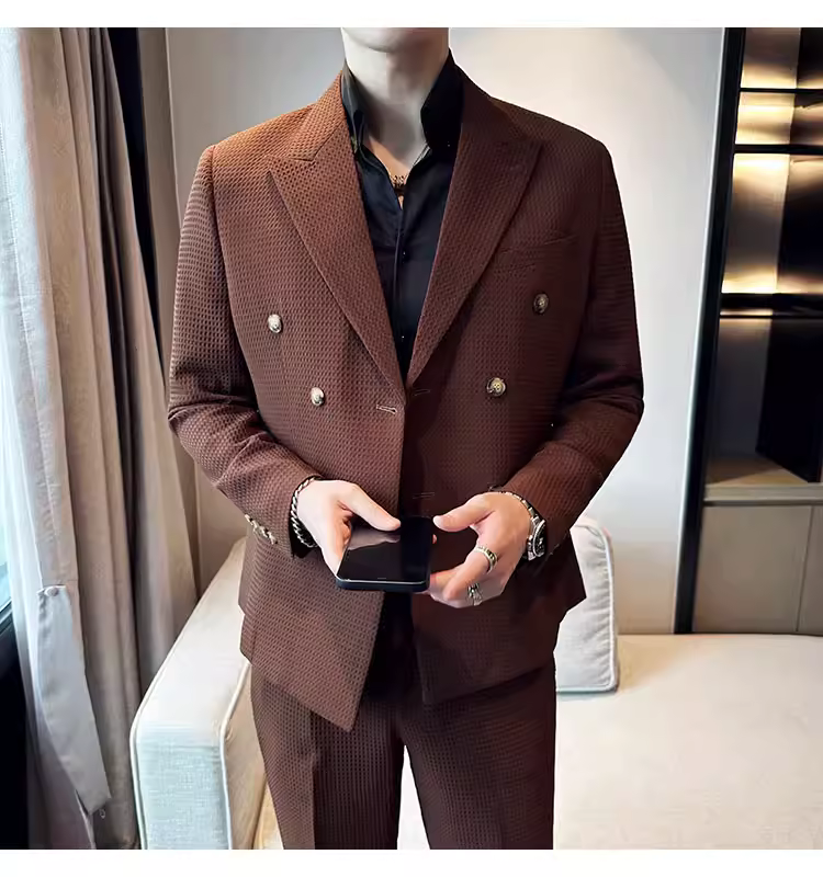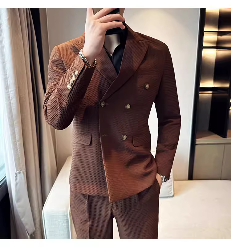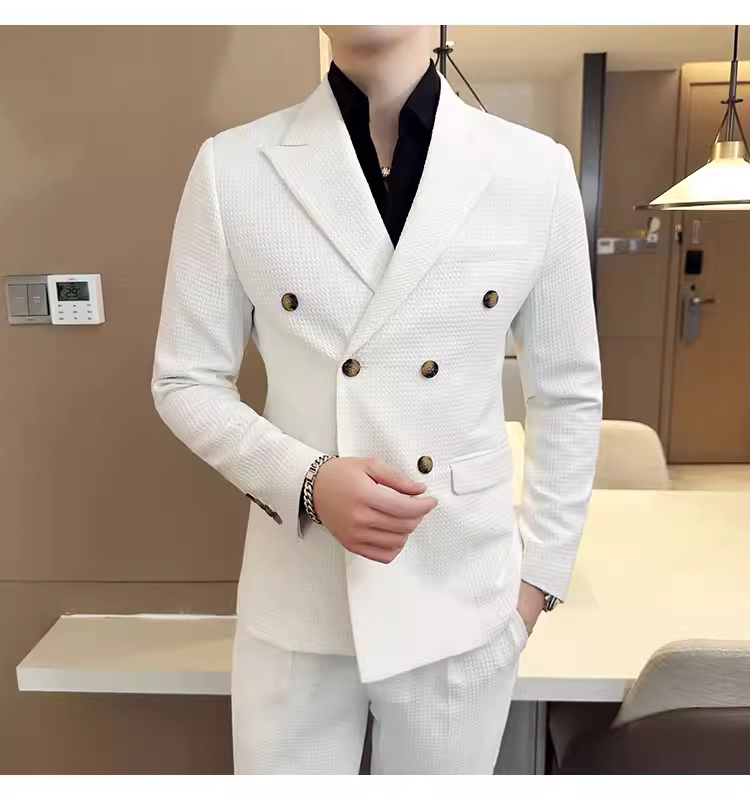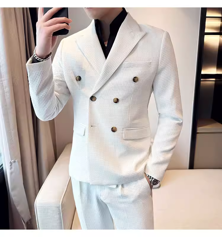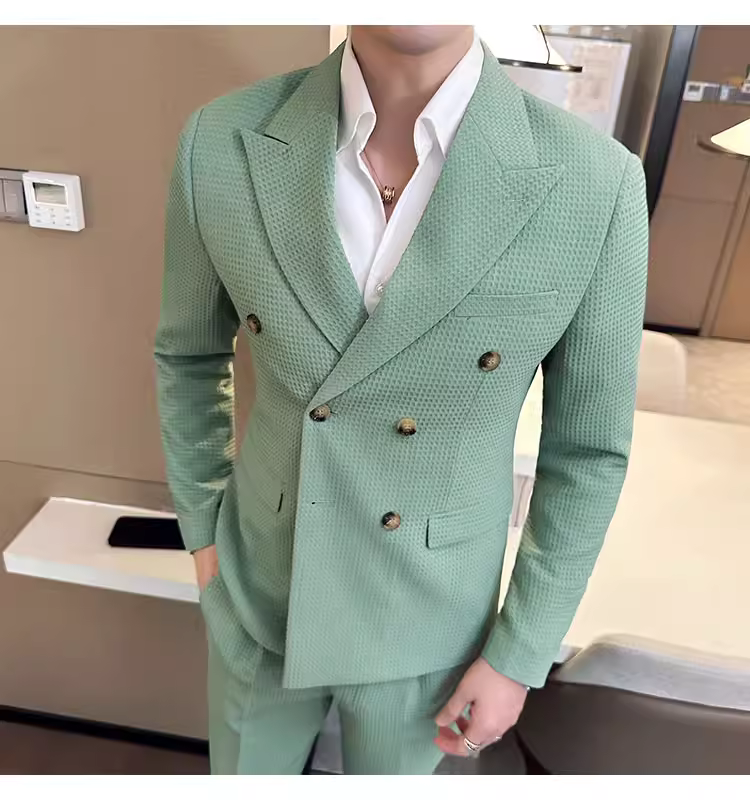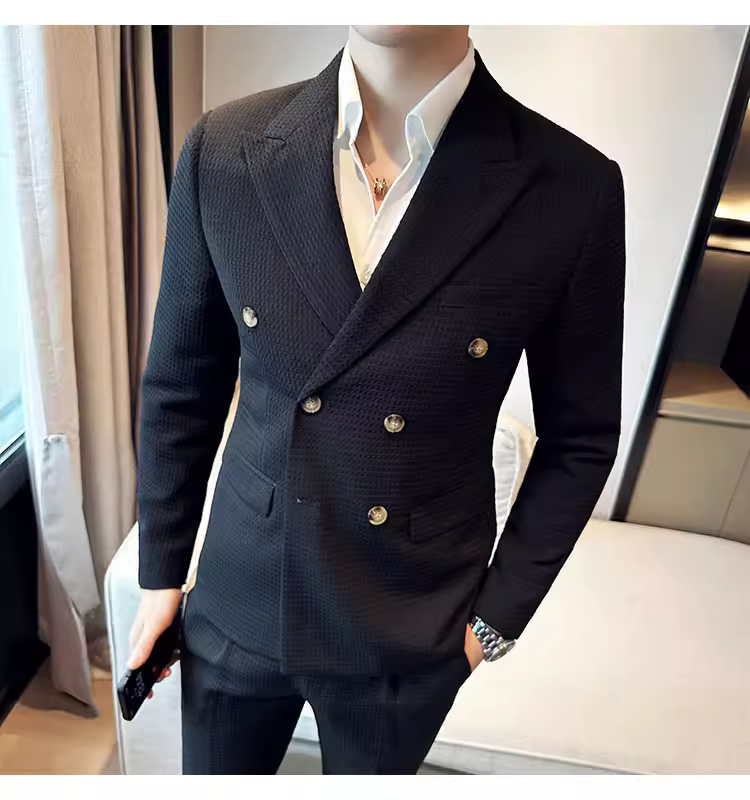 - Bộ vest nam mùa thu kiểu waffle, vest công sở cao cấp, kiểu dáng ôm body, vest nam hai hàng khuy