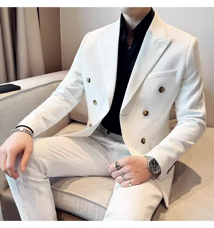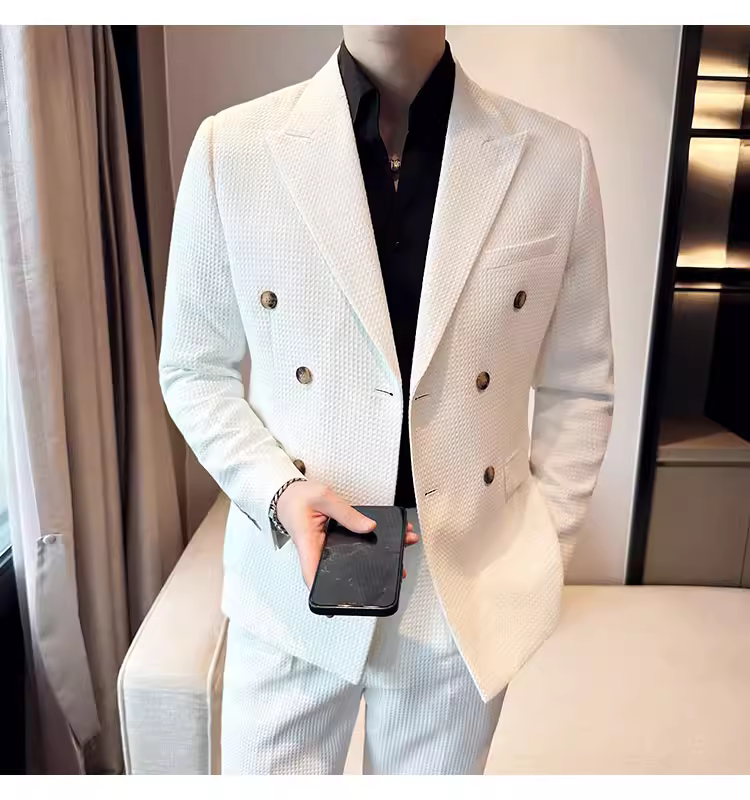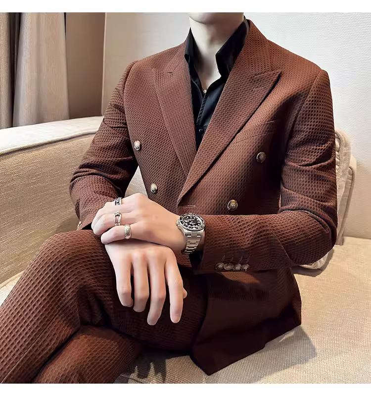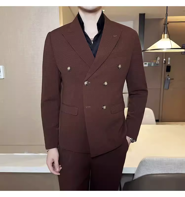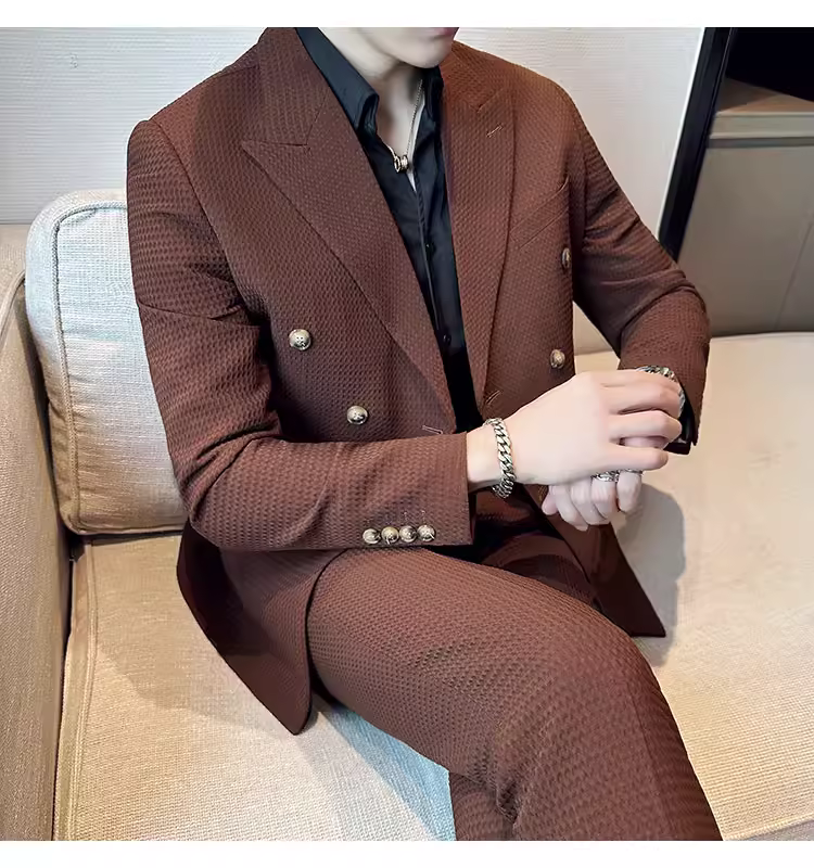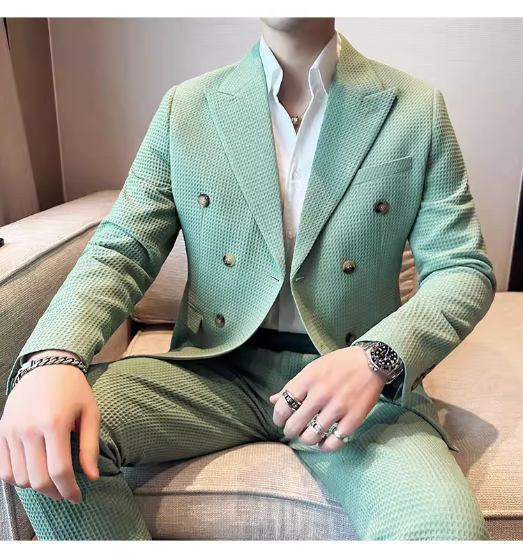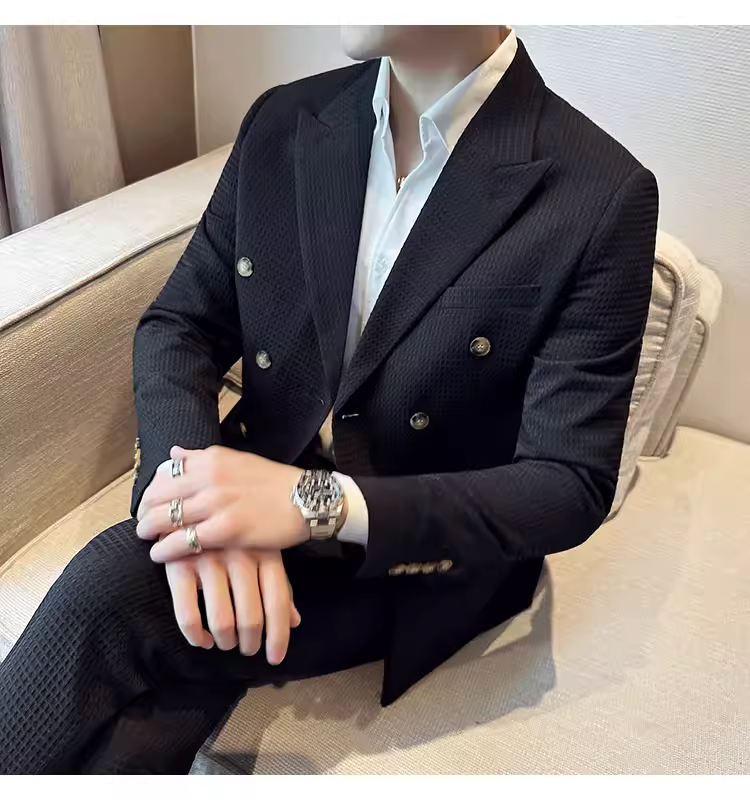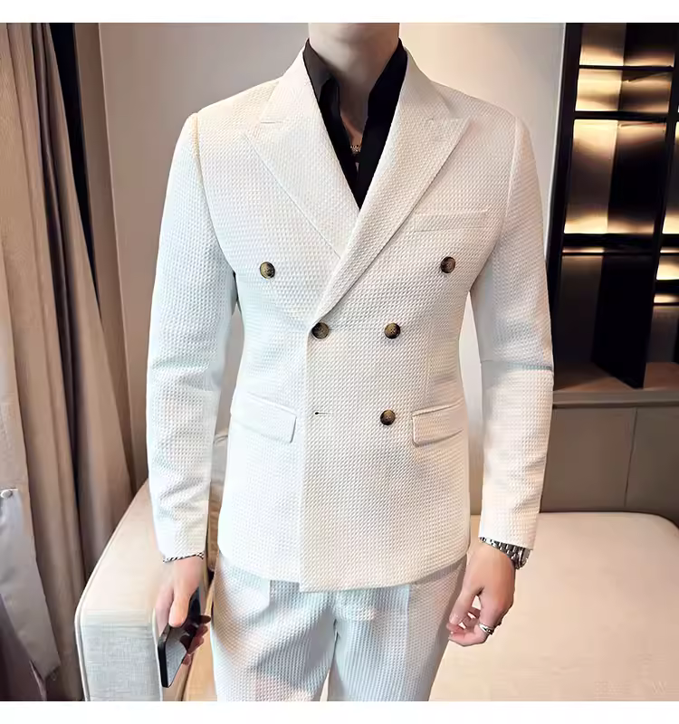 - Bộ vest nam mùa thu kiểu waffle, vest công sở cao cấp, kiểu dáng ôm body, vest nam hai hàng khuy