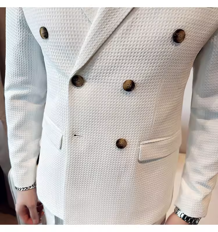 Bộ vest nam mùa thu kiểu waffle, vest công sở cao cấp, kiểu dáng ôm body, vest nam hai hàng khuy