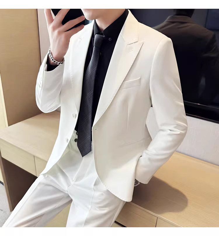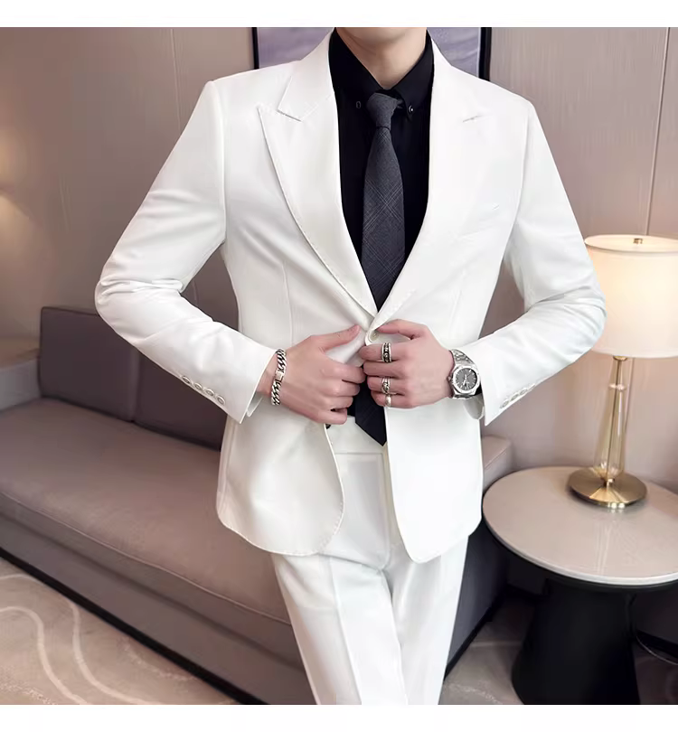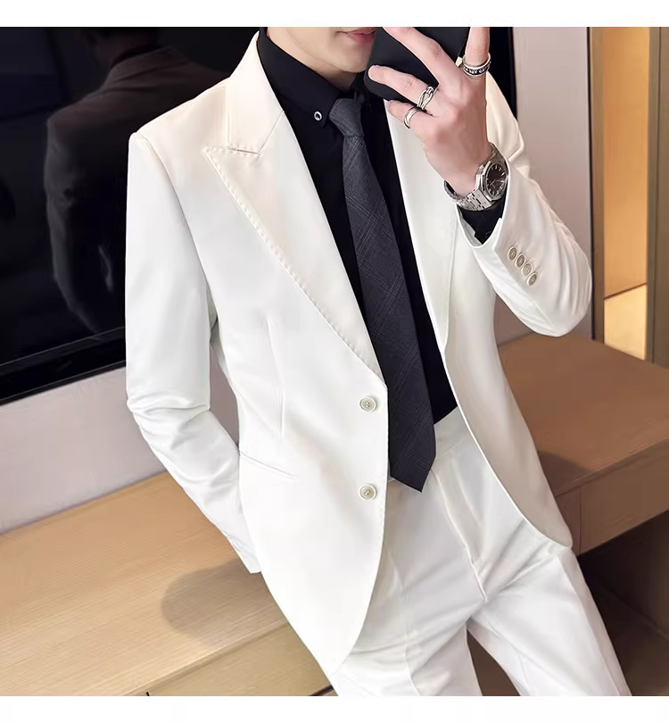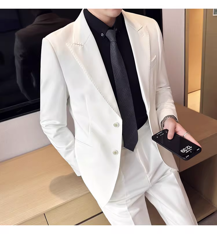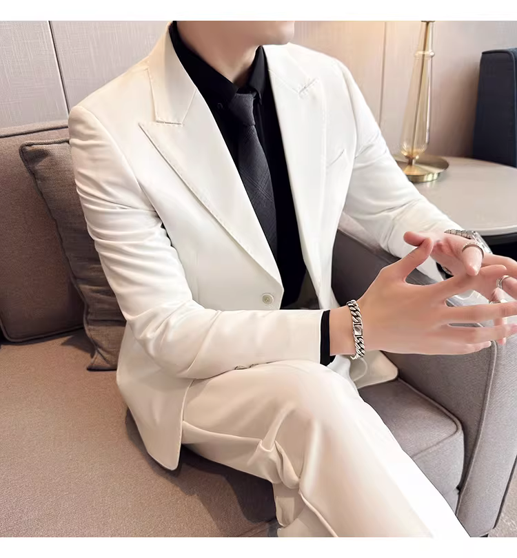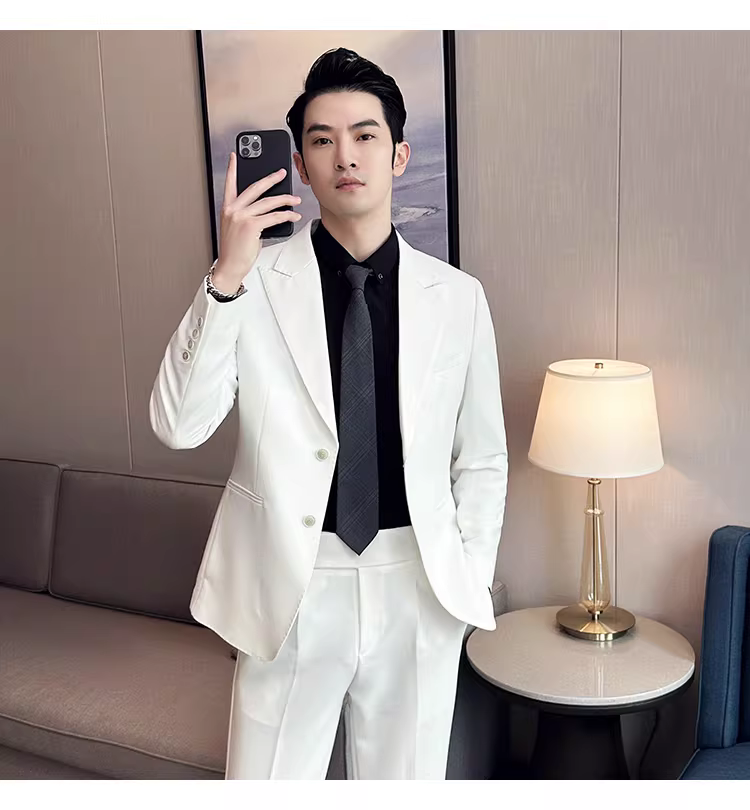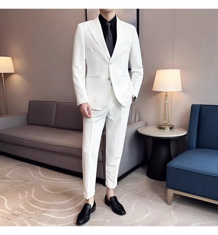 - Bộ vest nam Naples, kiểu mới xuân thu, cao cấp, phong cách Anh, lịch sự, bộ hai mảnh màu trắng