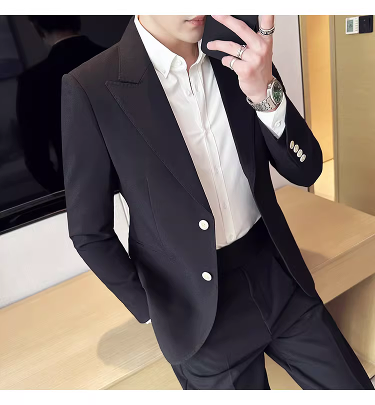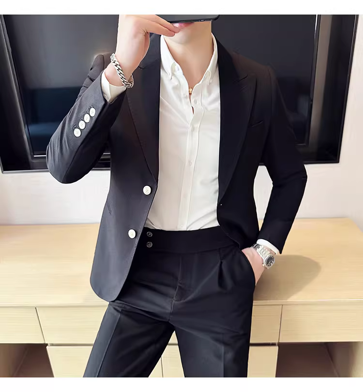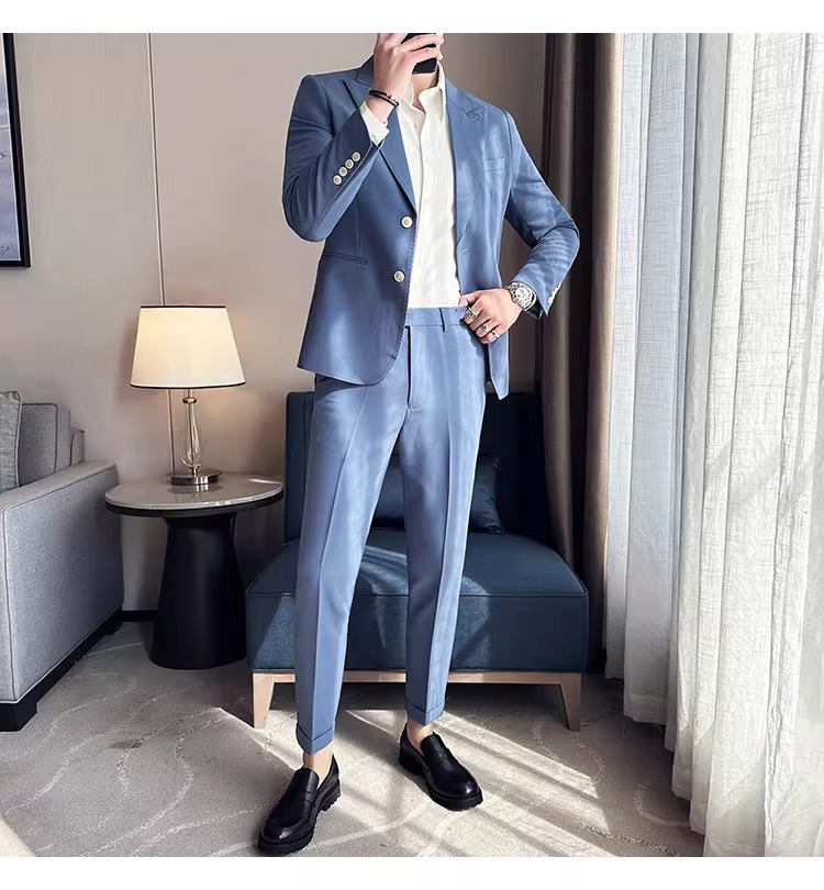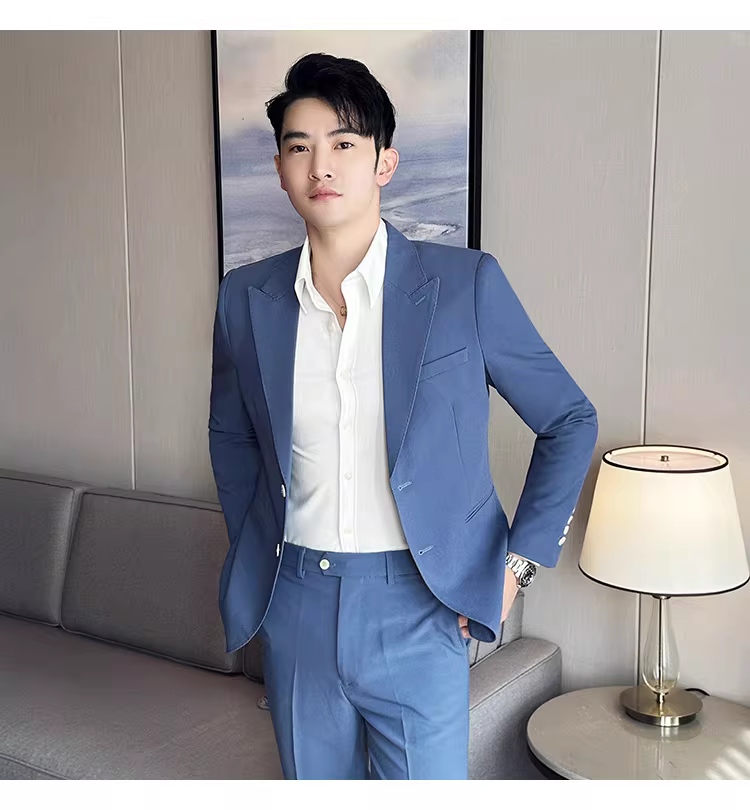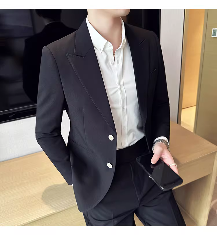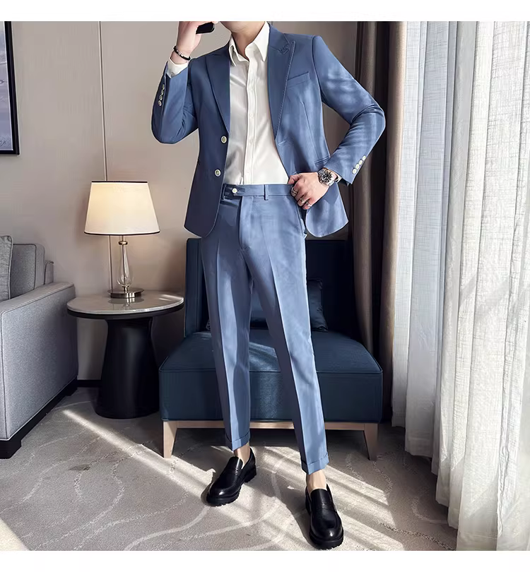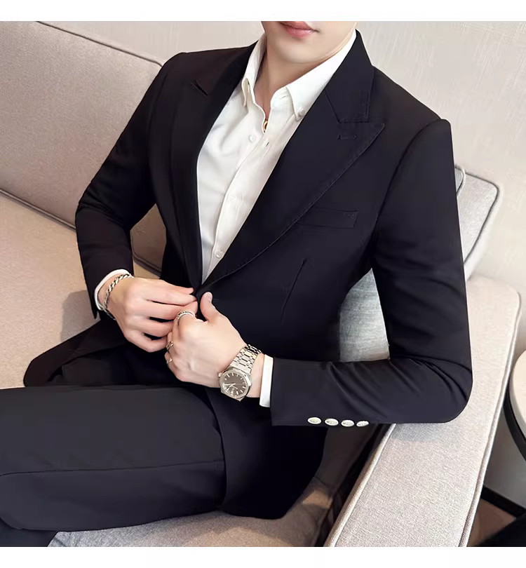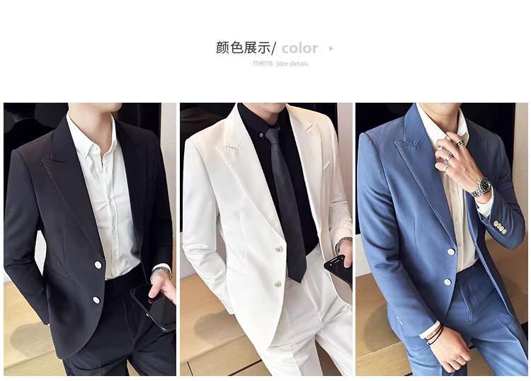 - Bộ vest nam Naples, kiểu mới xuân thu, cao cấp, phong cách Anh, lịch sự, bộ hai mảnh màu trắng