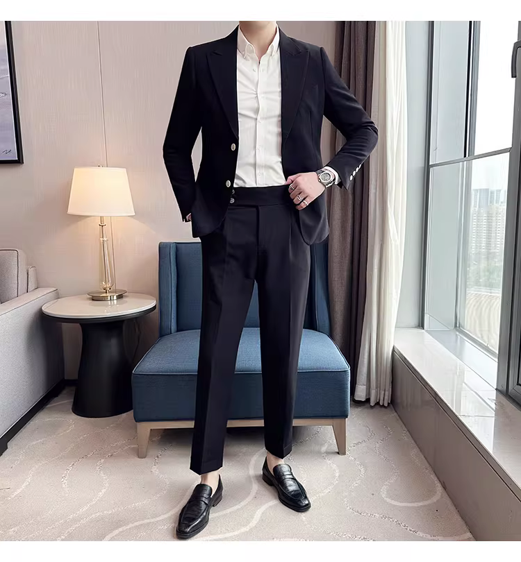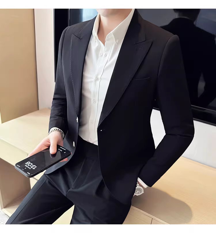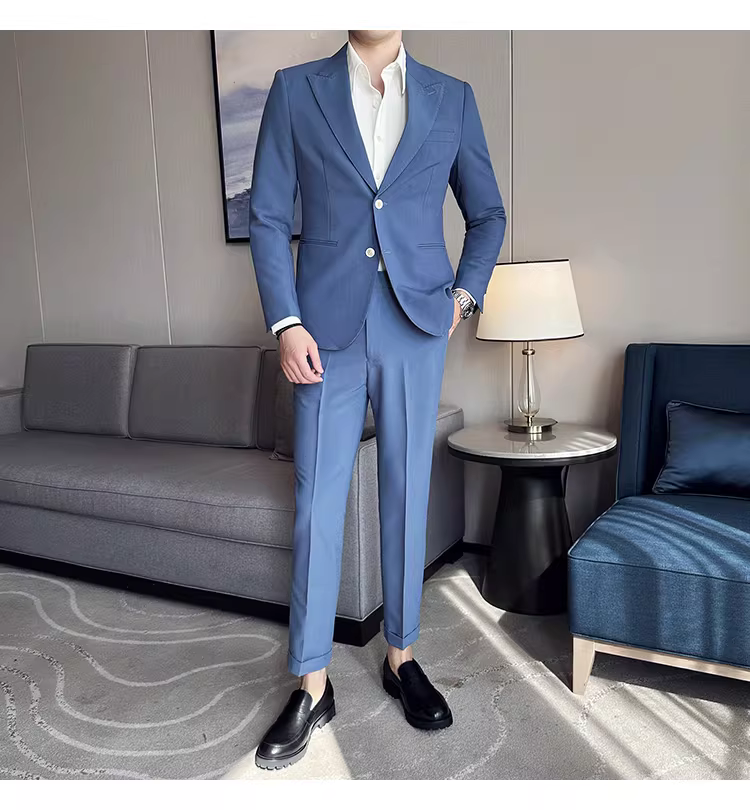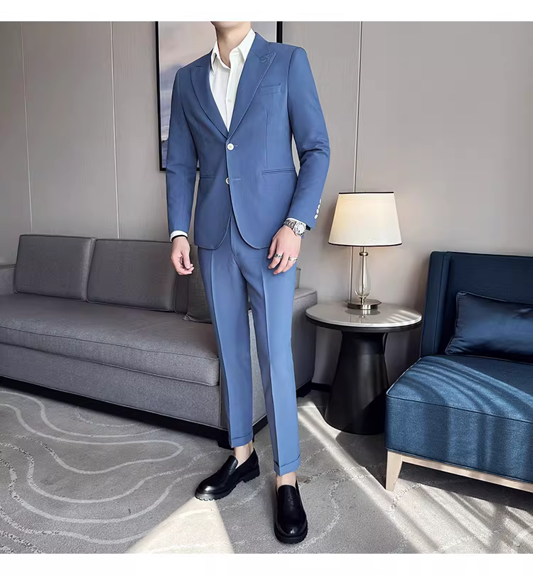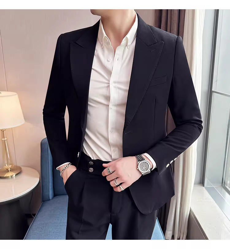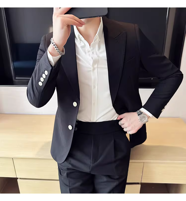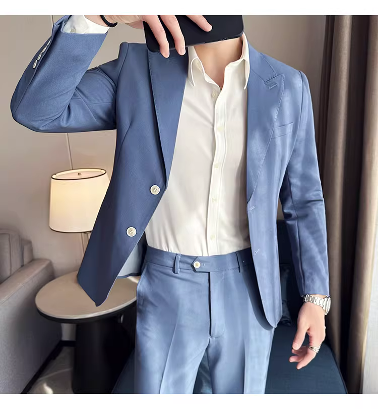 - Bộ vest nam Naples, kiểu mới xuân thu, cao cấp, phong cách Anh, lịch sự, bộ hai mảnh màu trắng