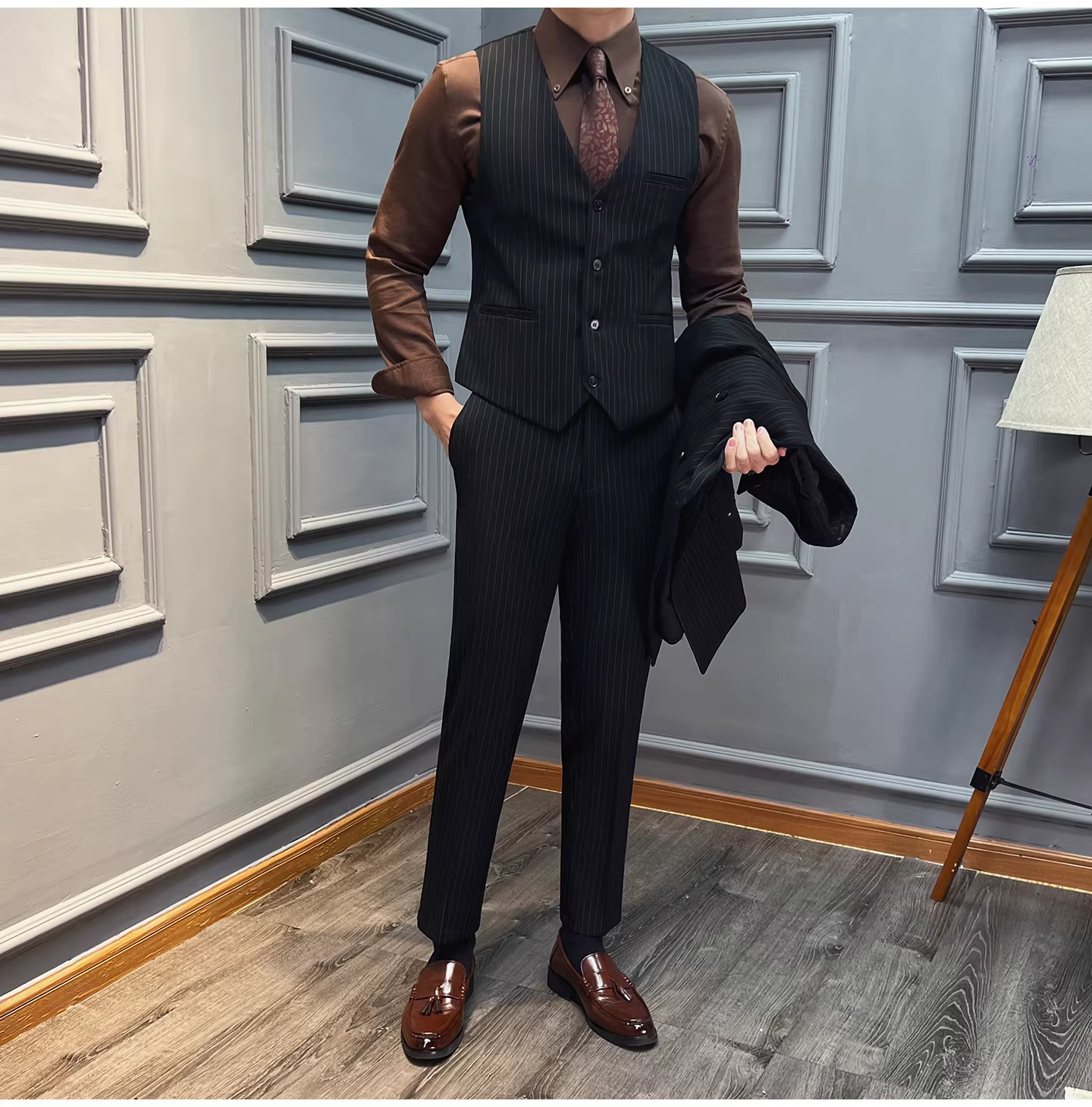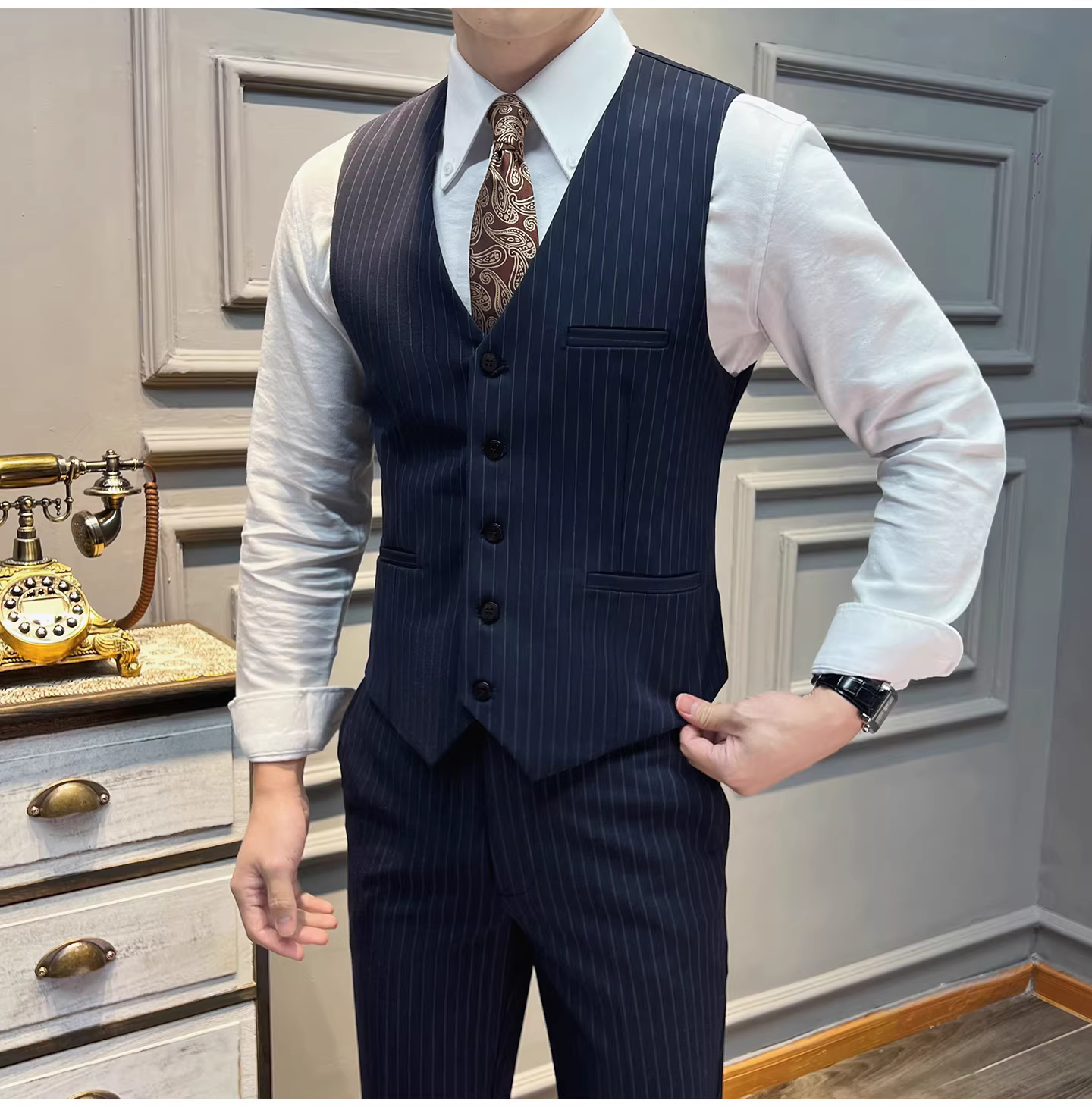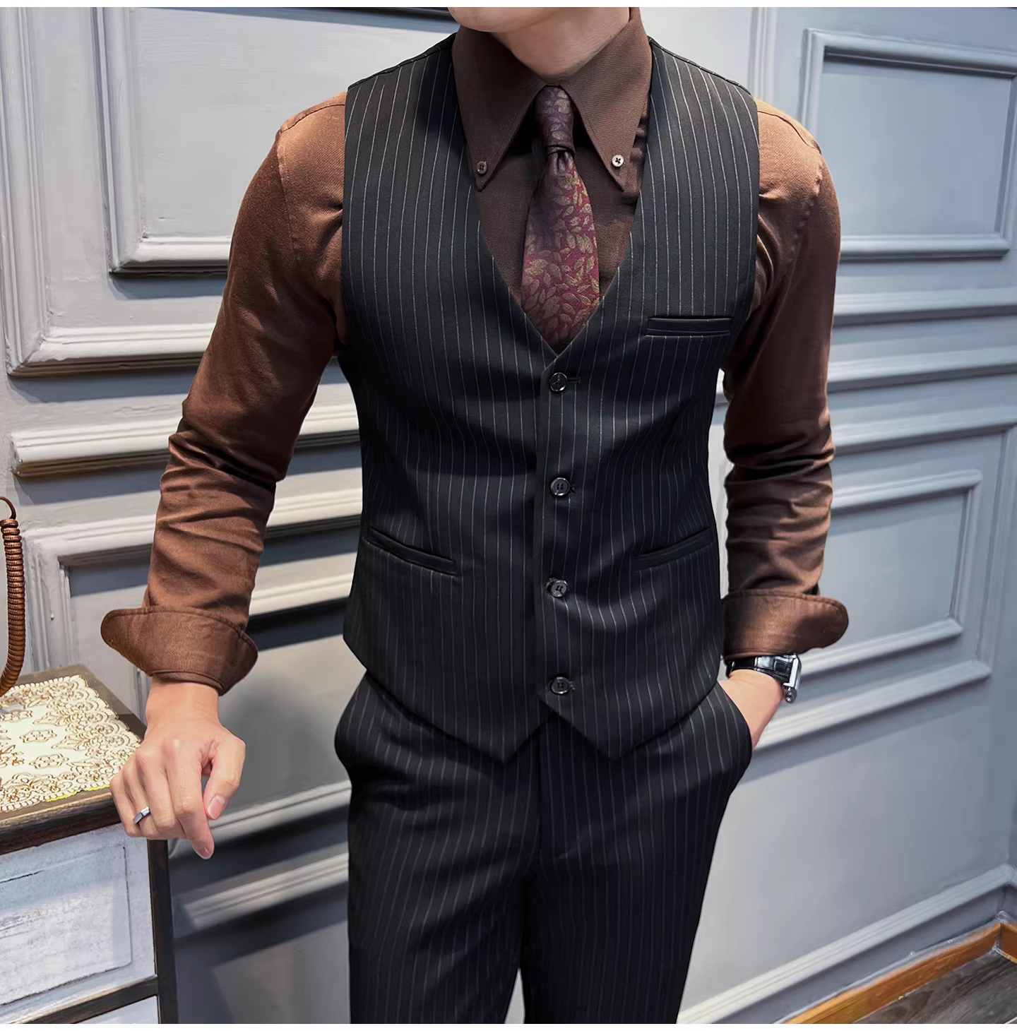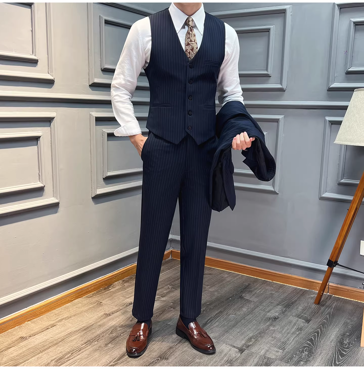 Bộ vest nam sọc, vest công sở cao cấp, phong cách Anh, bộ vest hai mảnh