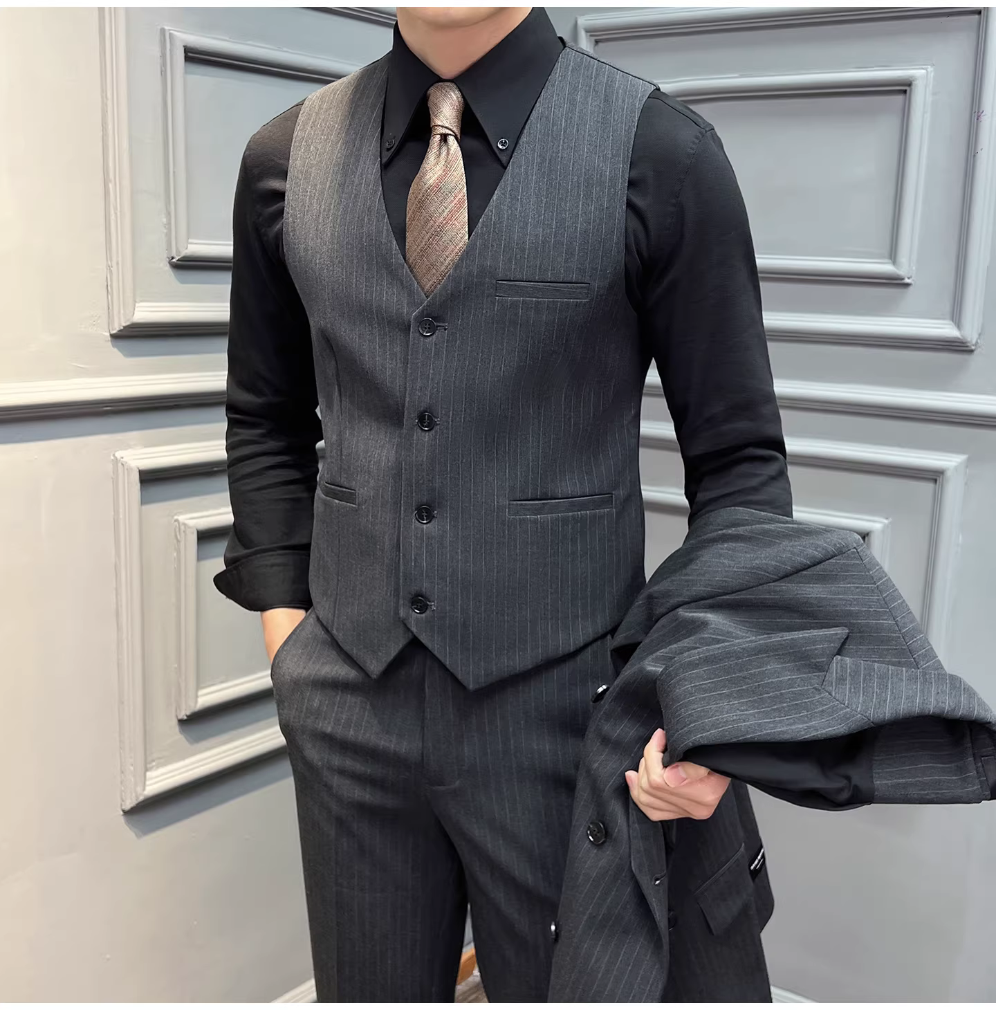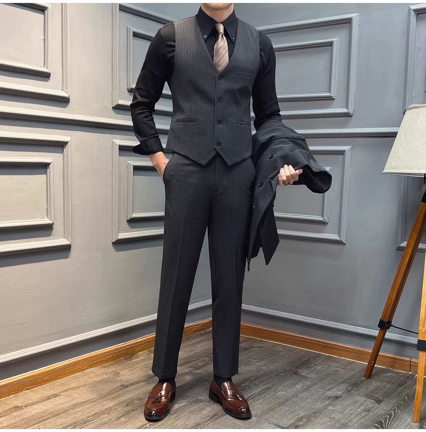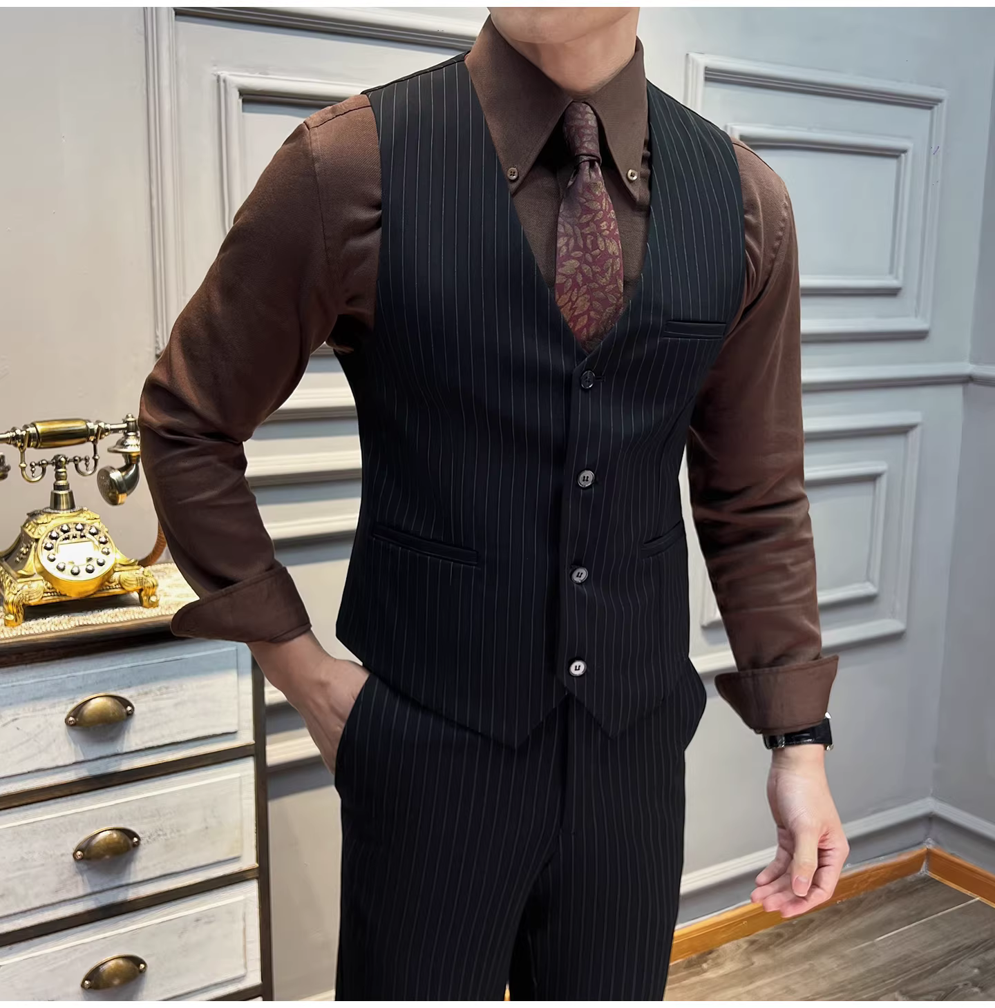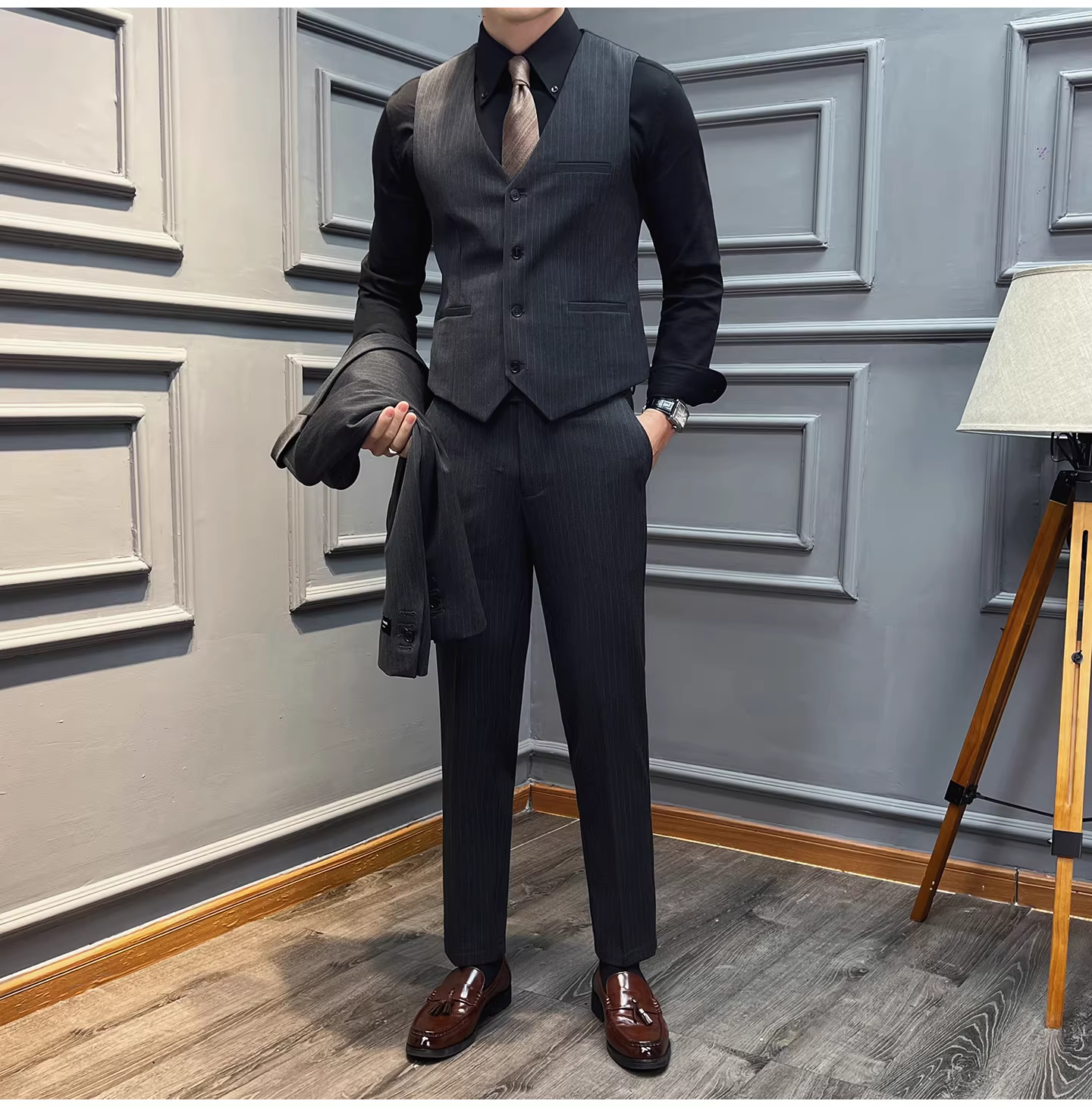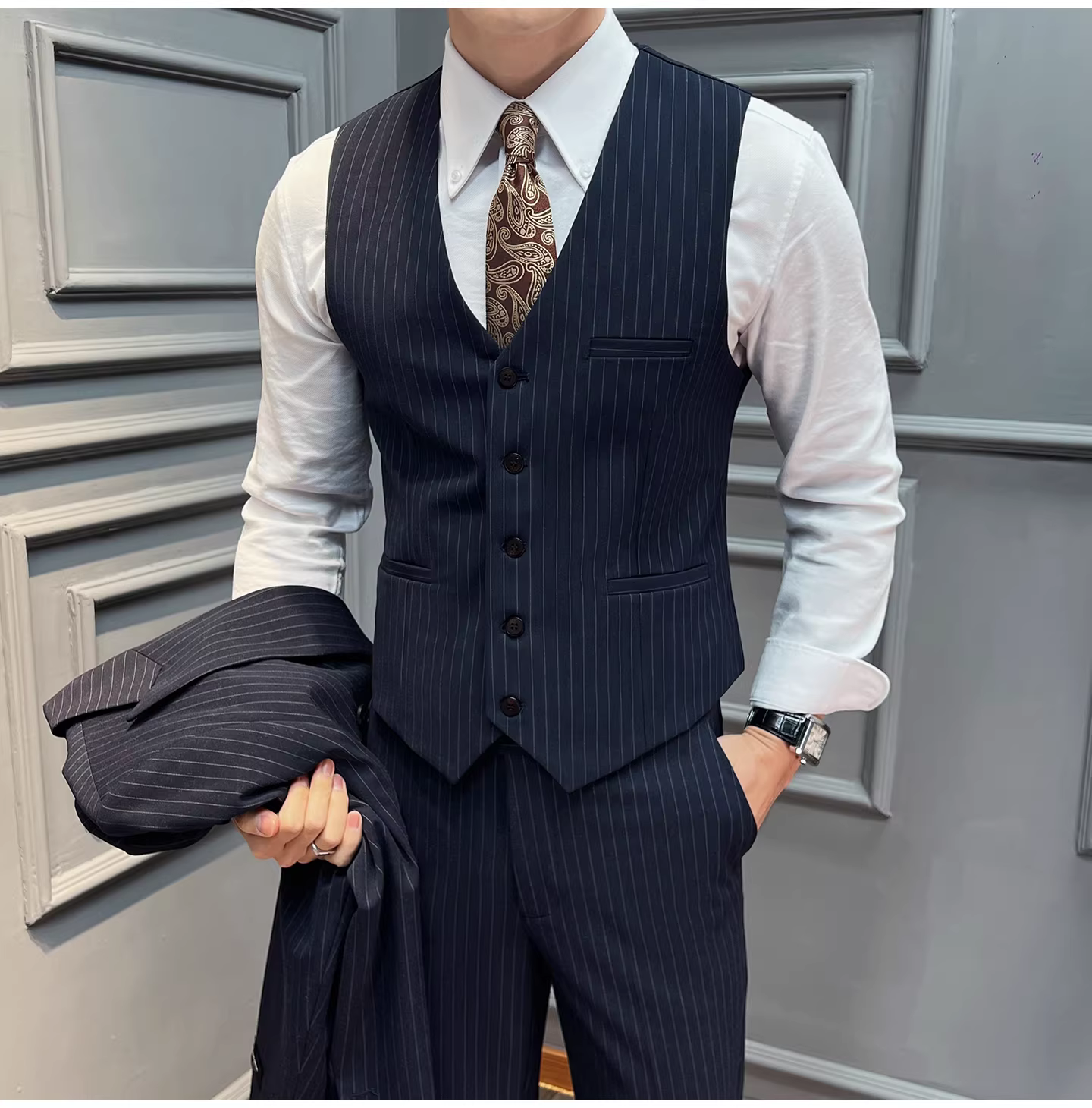 Bộ vest nam sọc, vest công sở cao cấp, phong cách Anh, bộ vest hai mảnh