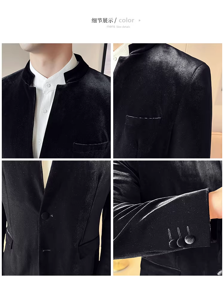 - Bộ vest nhung cổ đứng kiểu Trung Quốc mới dành cho nam, dày dặn và ấm áp mùa thu đông, phong cách công sở giản dị, bộ vest ôm dáng cao cấp.