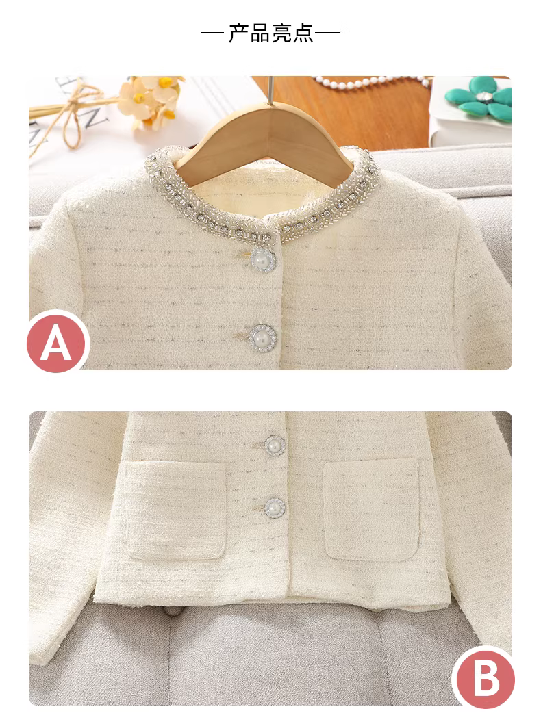- Bộ vest phong cách Chanel cho bé gái mùa xuân thu 2025, trang phục thu mới cho bé gái, bộ hai mảnh chân váy xếp ly, bộ váy thời trang và sành điệu.