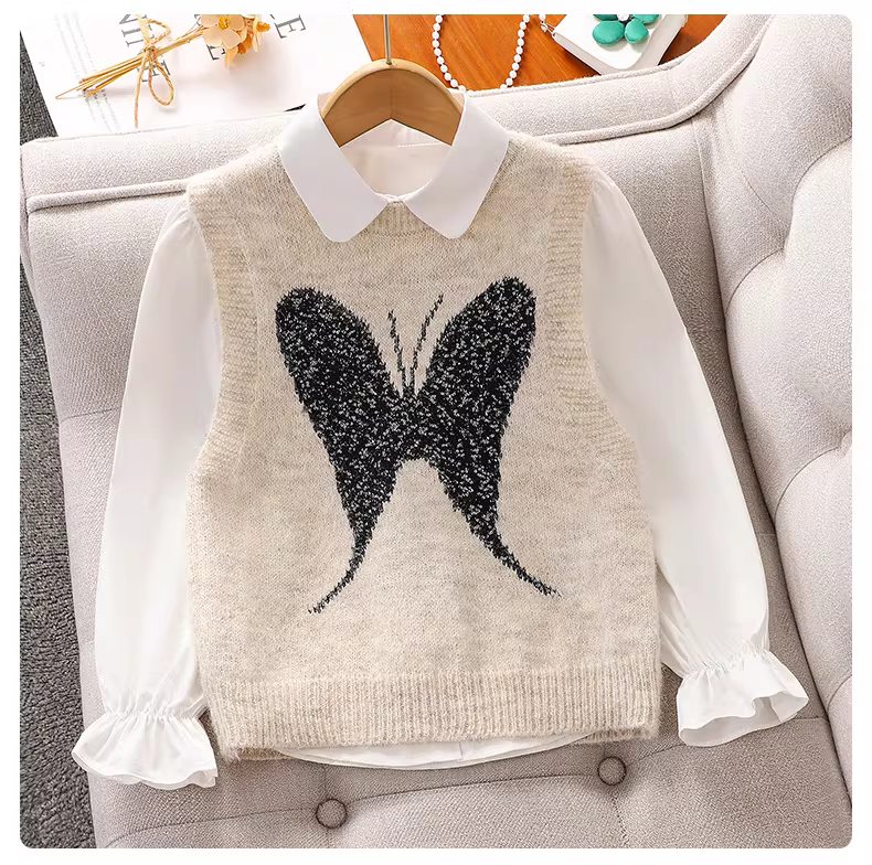 - Bộ vest thu đông bé gái 2025 kiểu mới, áo sơ mi phong cách preppy xuân thu, chân váy xếp ly ba món cho bé