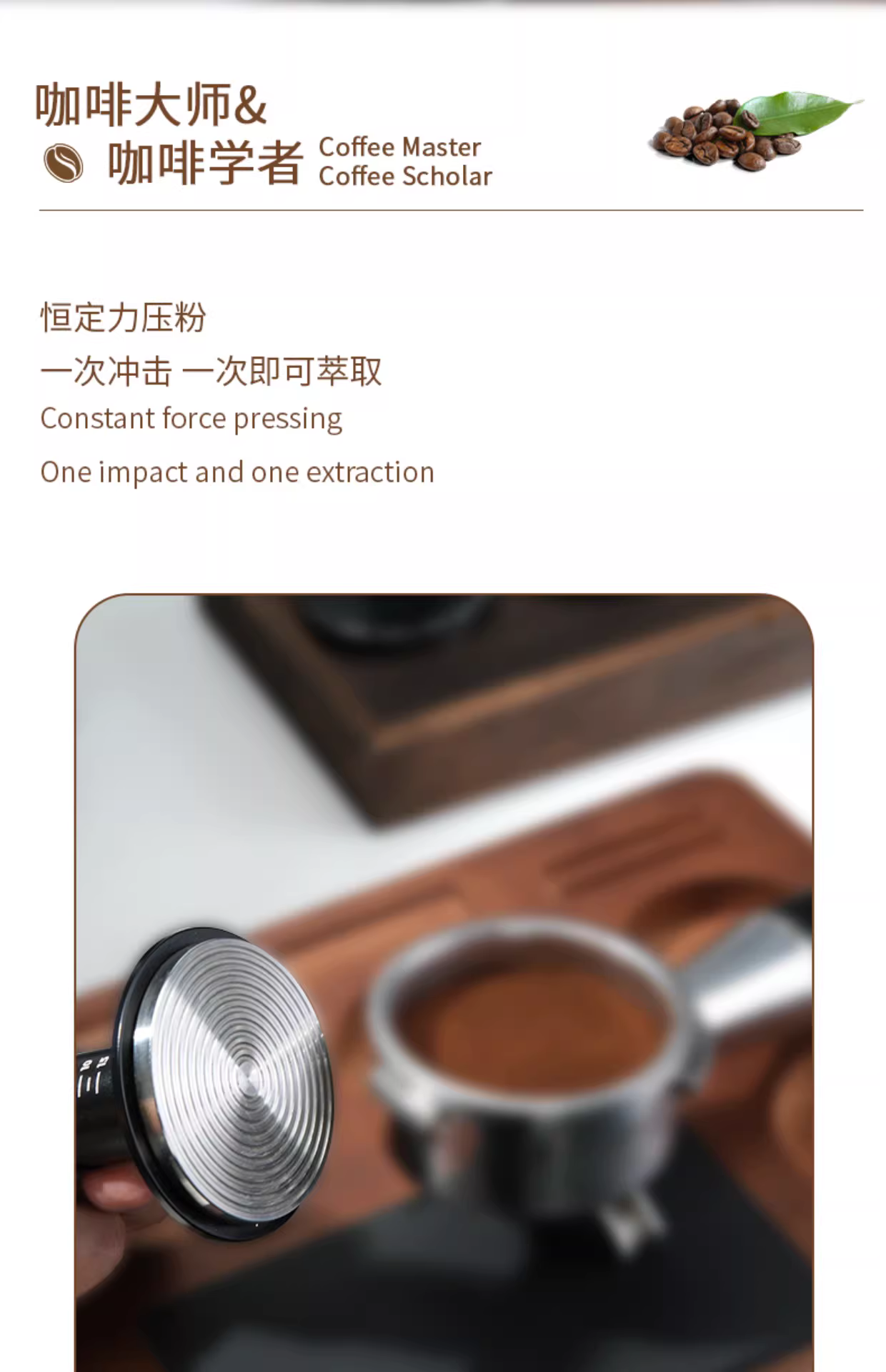 Búa nén bột cà phê lực không đổi, cân bằng lực gốc, cấp độ đàn hồi, áp suất không đổi, kích thước 51/53/58mm