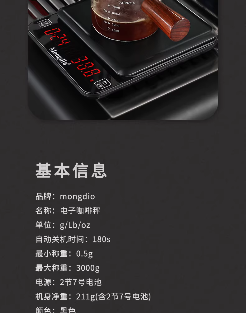 - Cân điện tử cà phê Mongdio, cân cà phê espresso pha thủ công, cân gram chuyên nghiệp, cân điện tử chống nước, cân hẹn giờ pha cà phê
