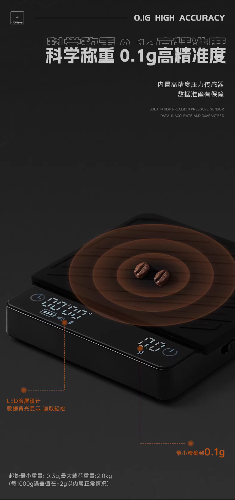 Cân điện tử mini MUVNA Zero-G, cân cà phê espresso, cân hạt cà phê, cân pha cà phê thủ công