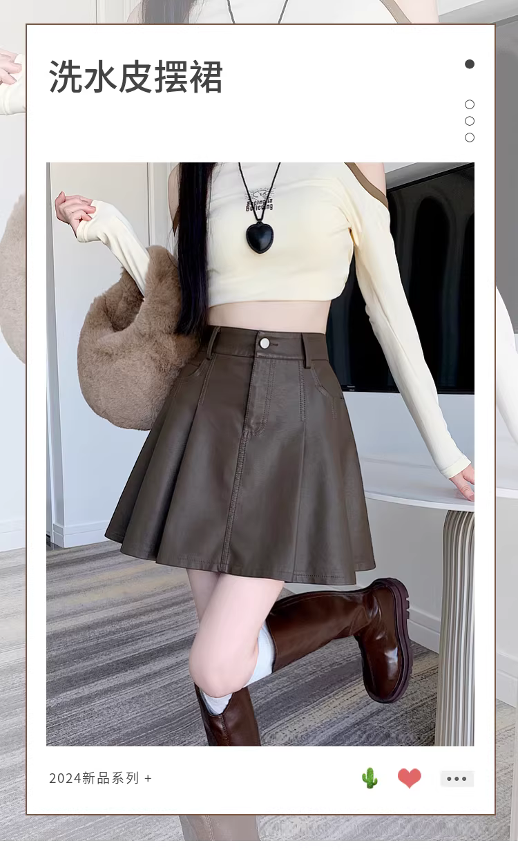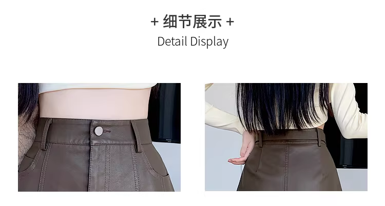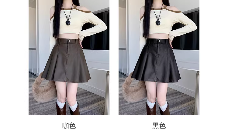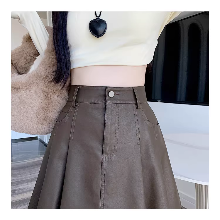- Chân váy da PU nâu La Chapelle dành cho nữ, mẫu mới thu đông 2025, xếp ly, lưng cao, dáng chữ A, ngắn