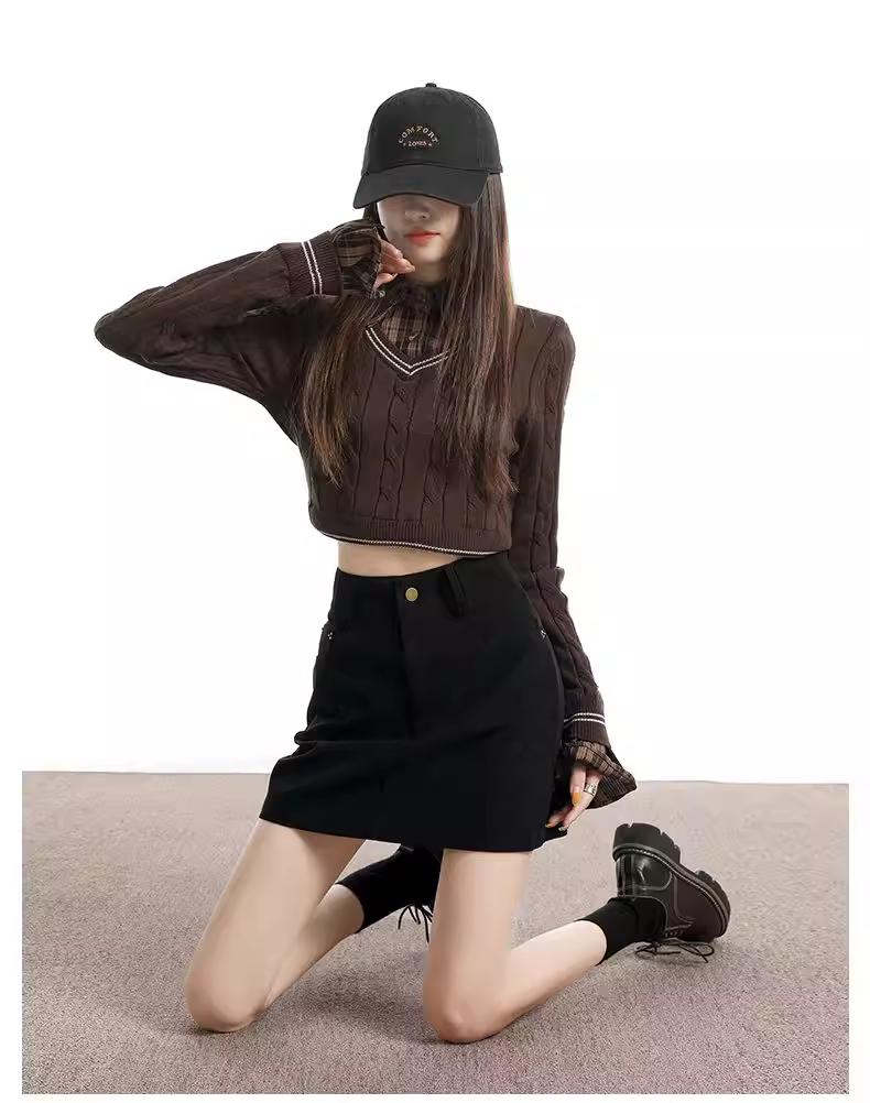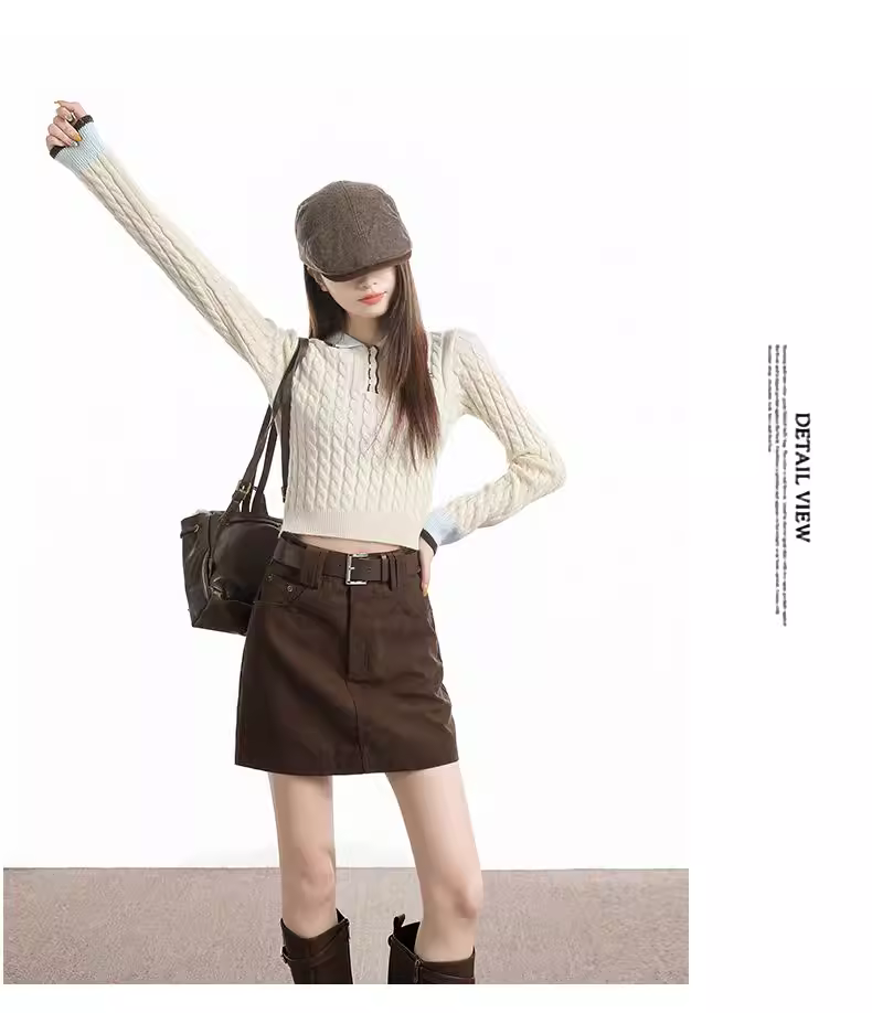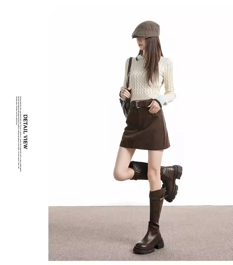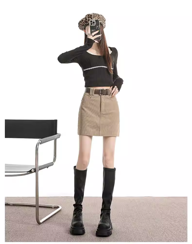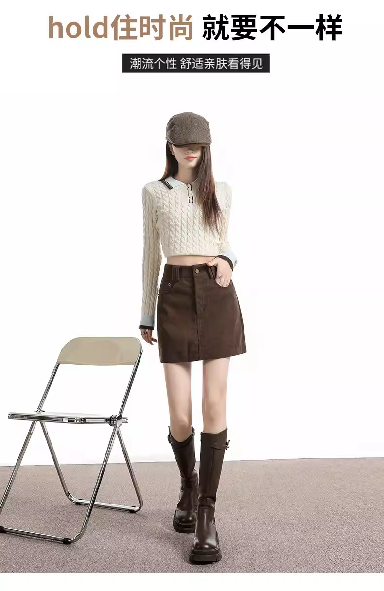 - Chân váy nhỏ màu cà phê La Chapelle dành cho nữ 2025, kiểu dáng mới thu đông, cạp cao, chất liệu nhung tăm, ôm dáng.