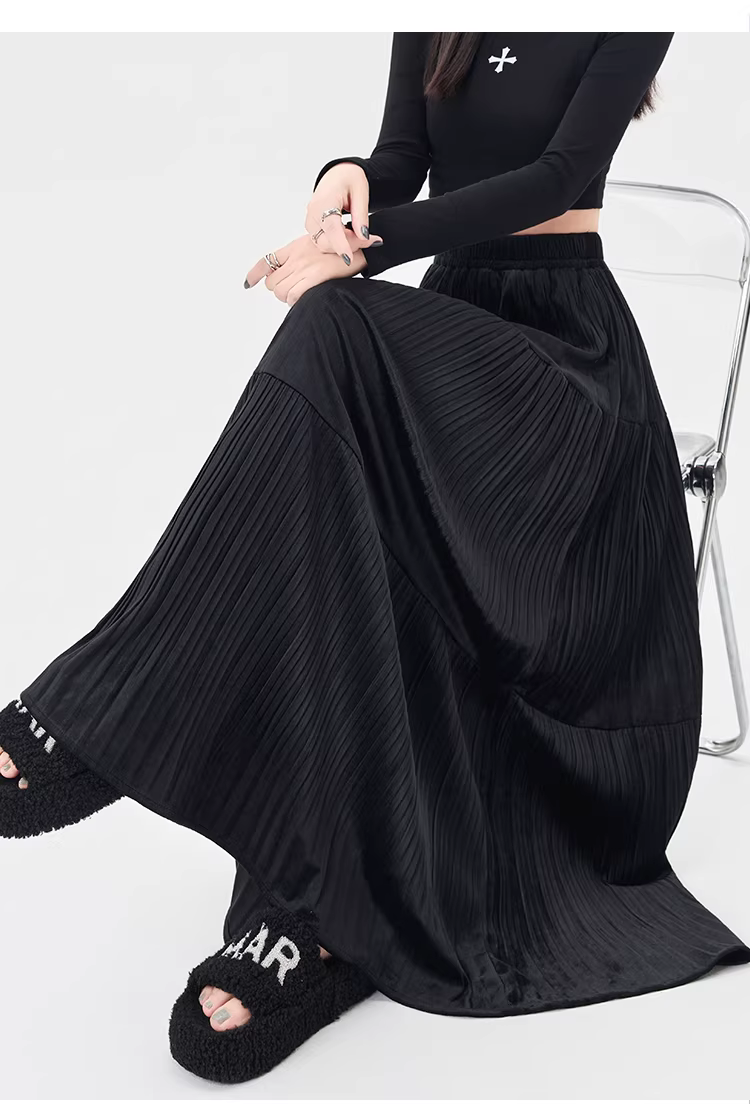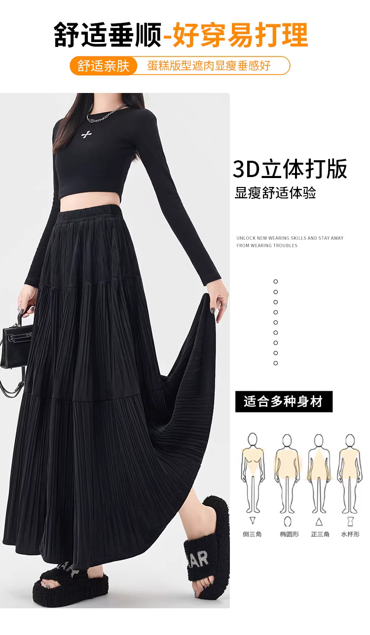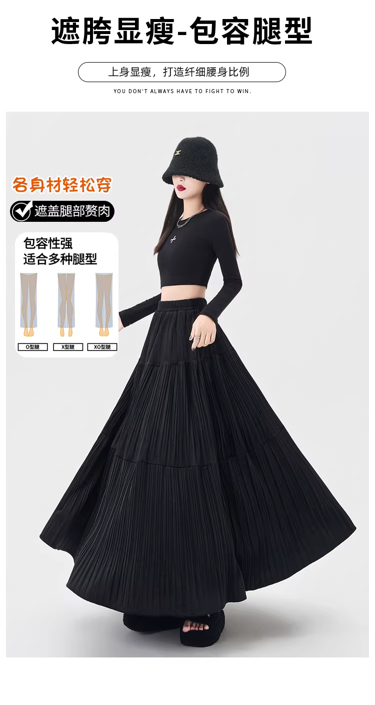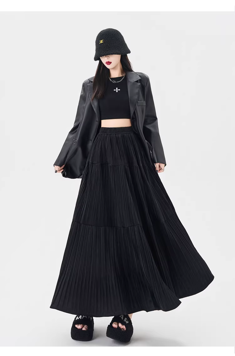- Chân váy xếp ly cao eo màu cà phê La Chapelle dành cho nữ, mẫu mới thu đông 2025, dáng chữ A dài trung bình, nhiều tầng