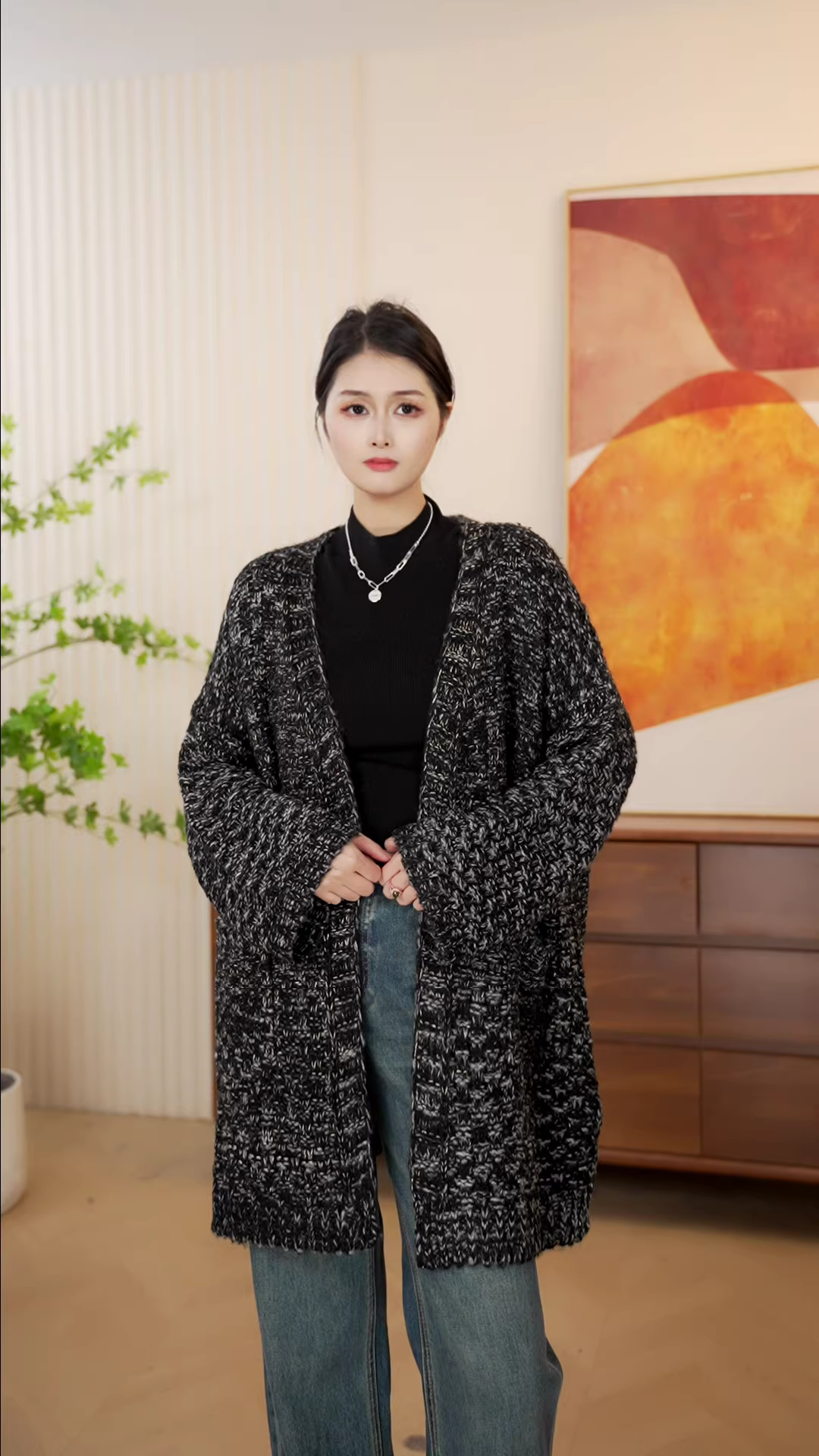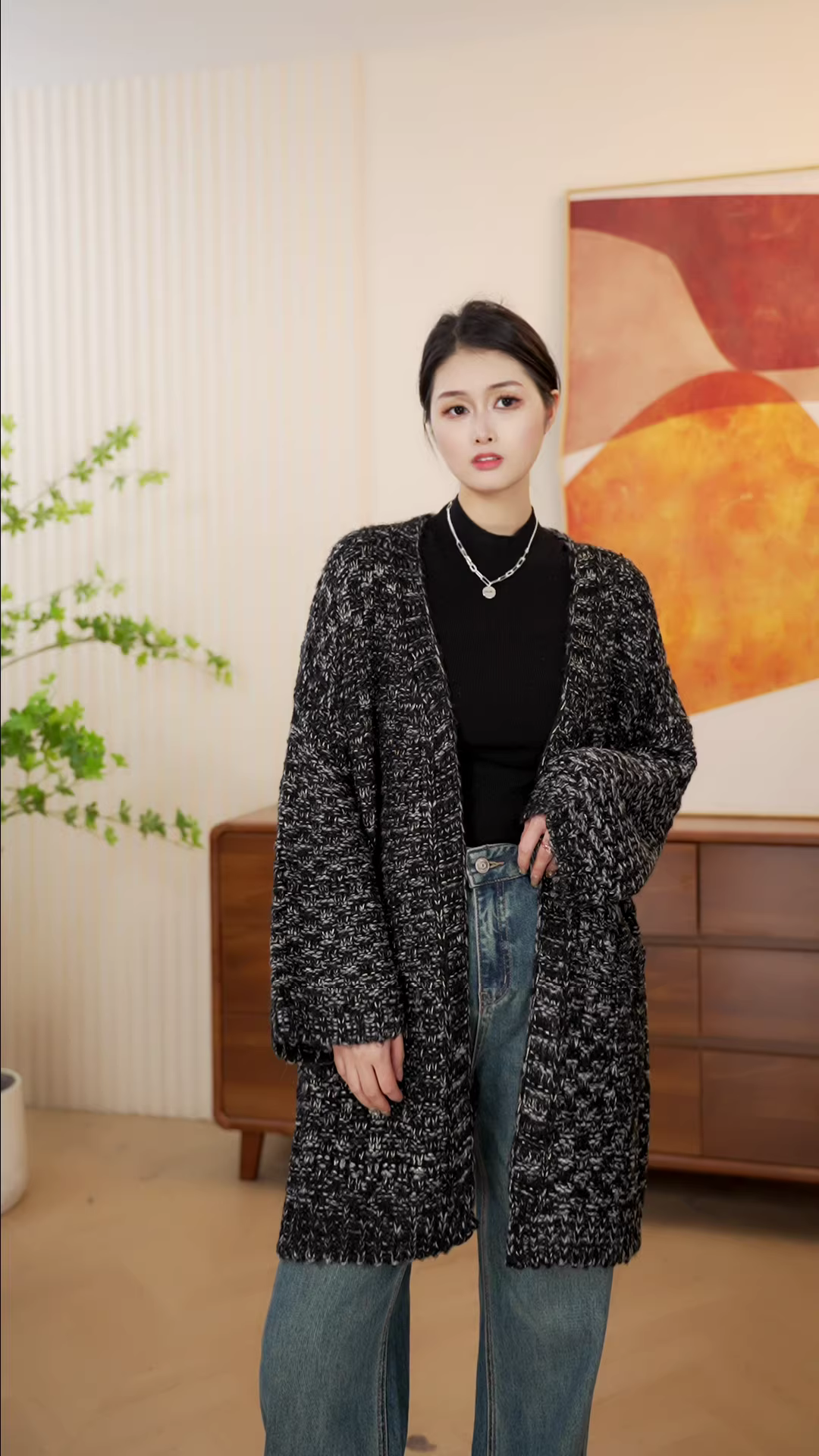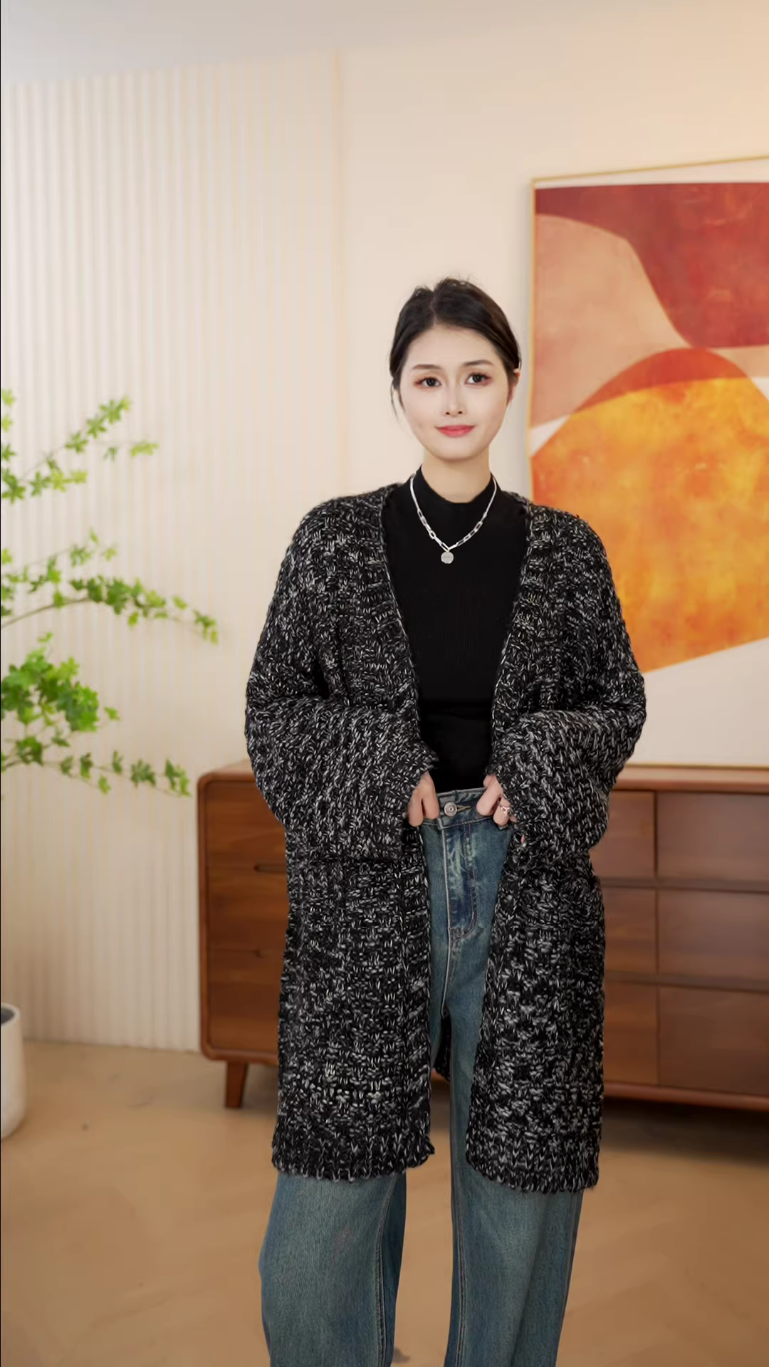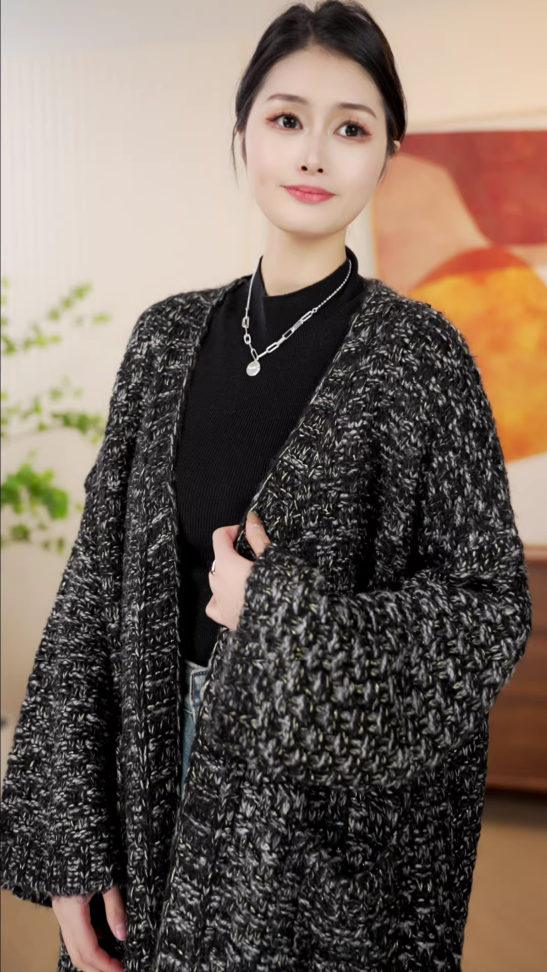 Chỉ 39 nhân dân tệ!! Áo khoác dài trung bình cổ chữ V phong cách Chanel chất liệu tweed mùa xuân thu