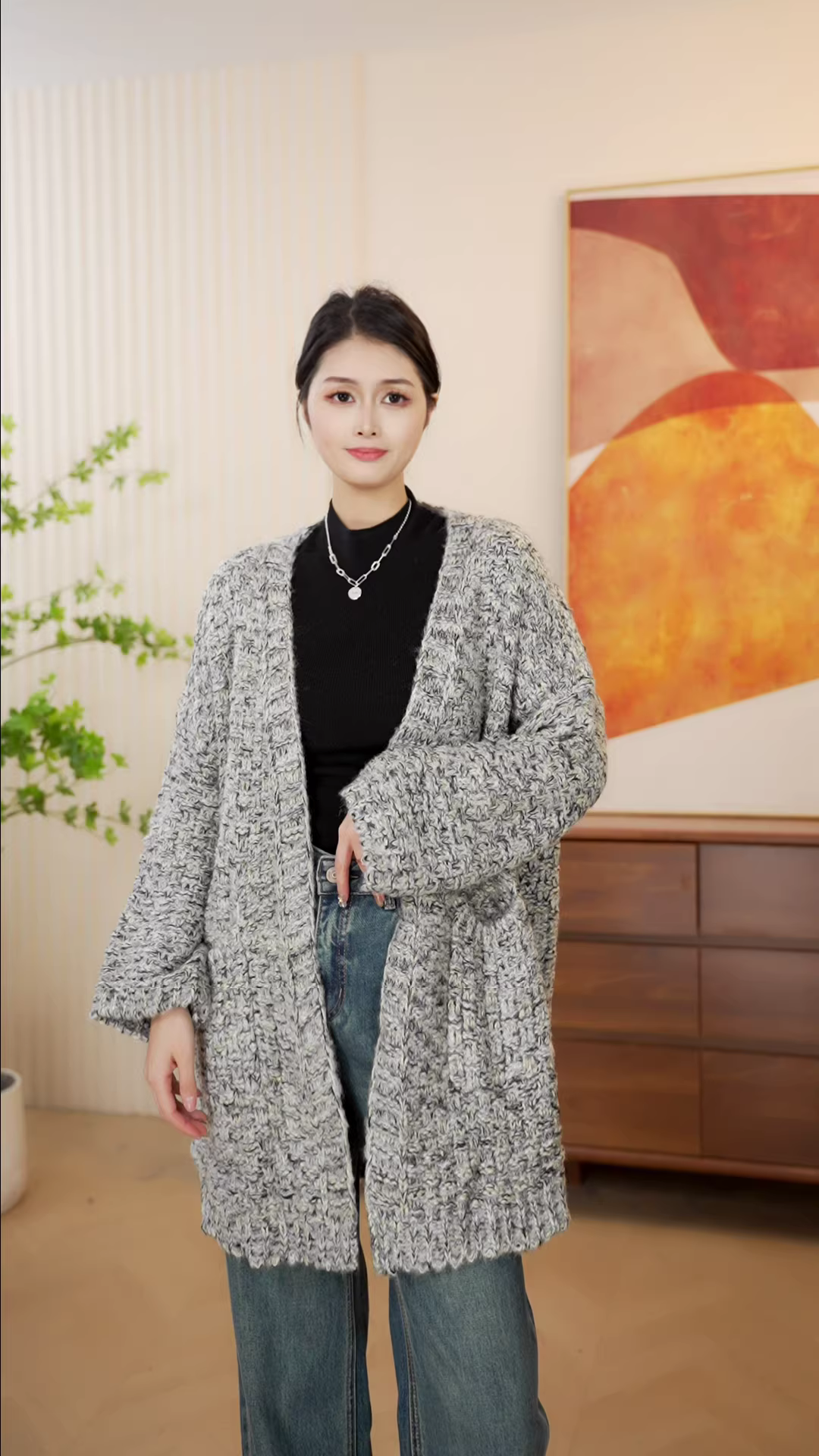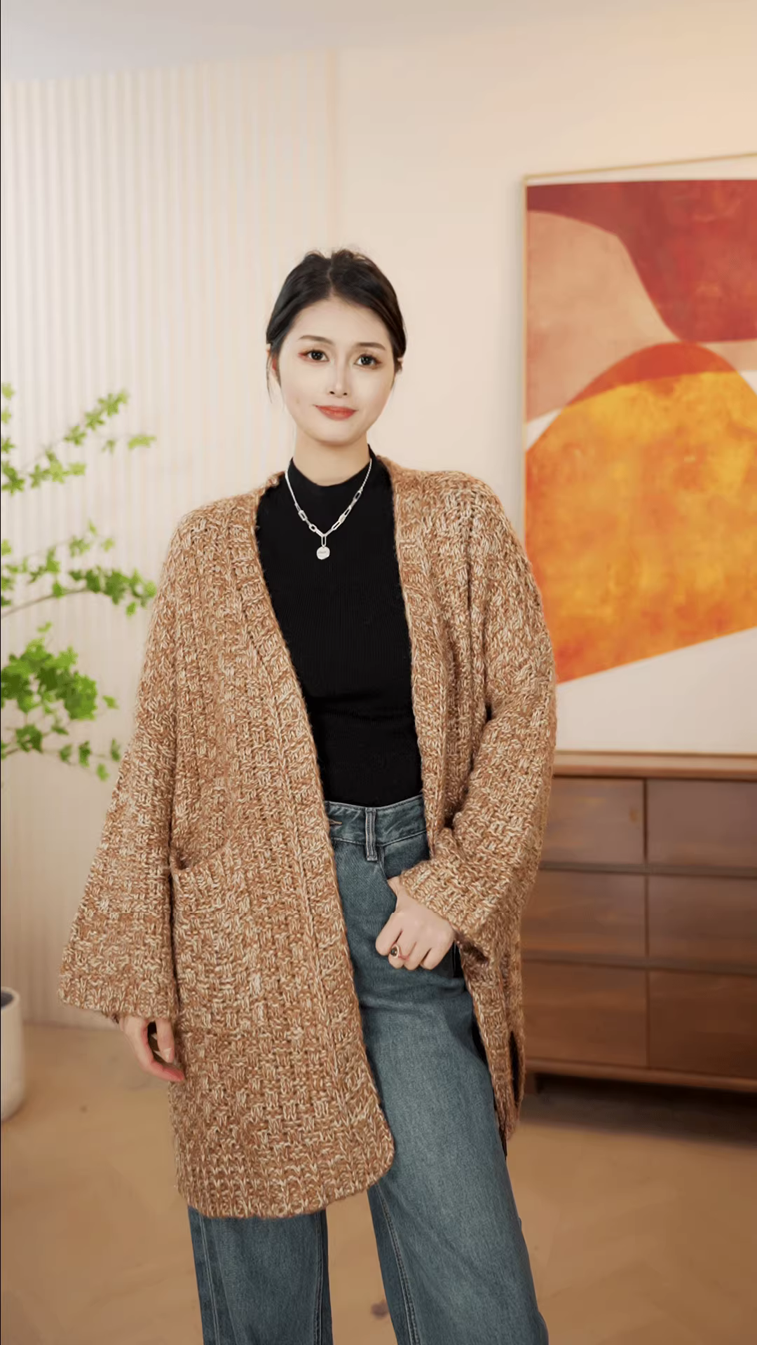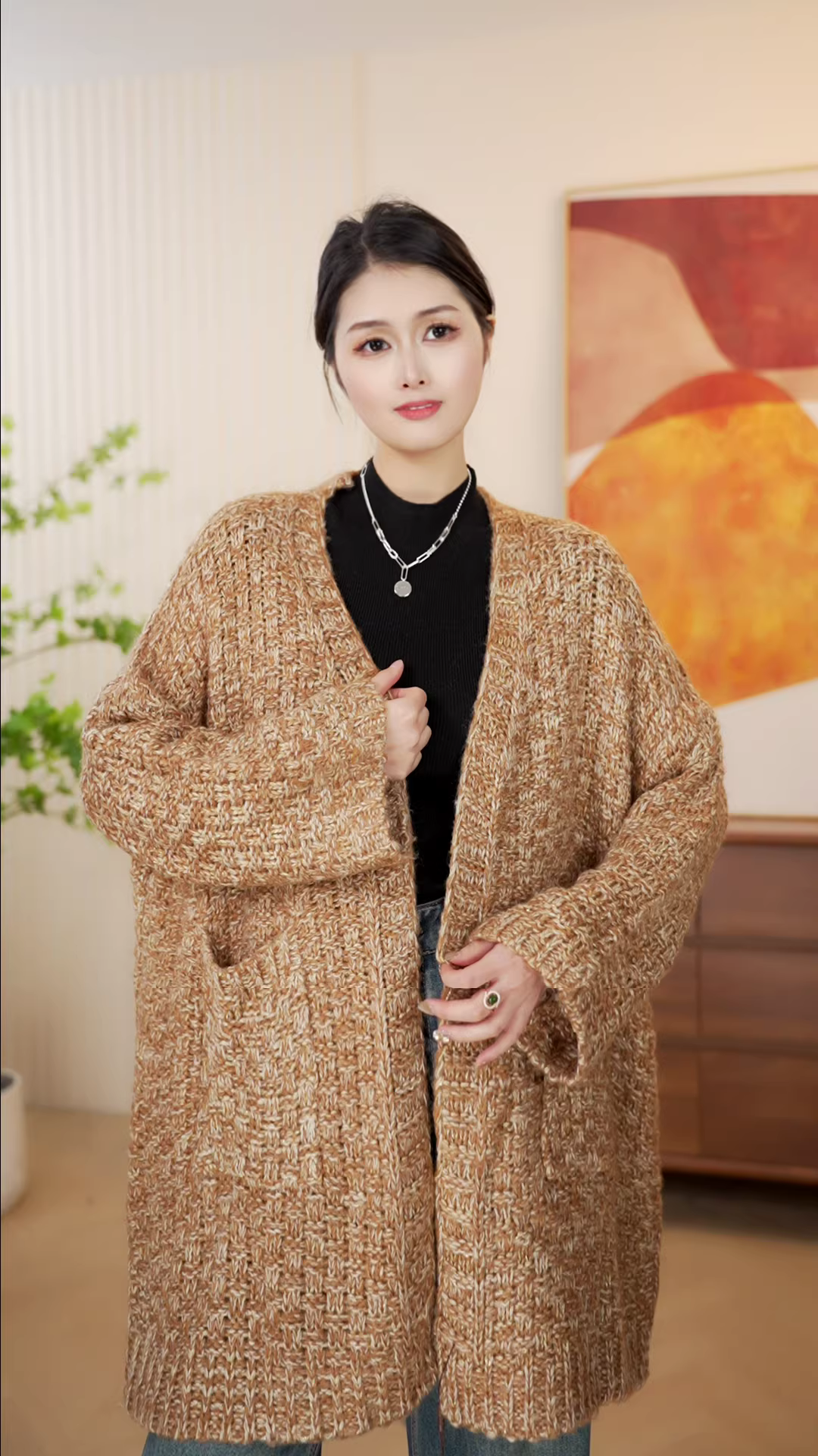 - Chỉ 39 nhân dân tệ!! Áo khoác dài trung bình cổ chữ V phong cách Chanel chất liệu tweed mùa xuân thu