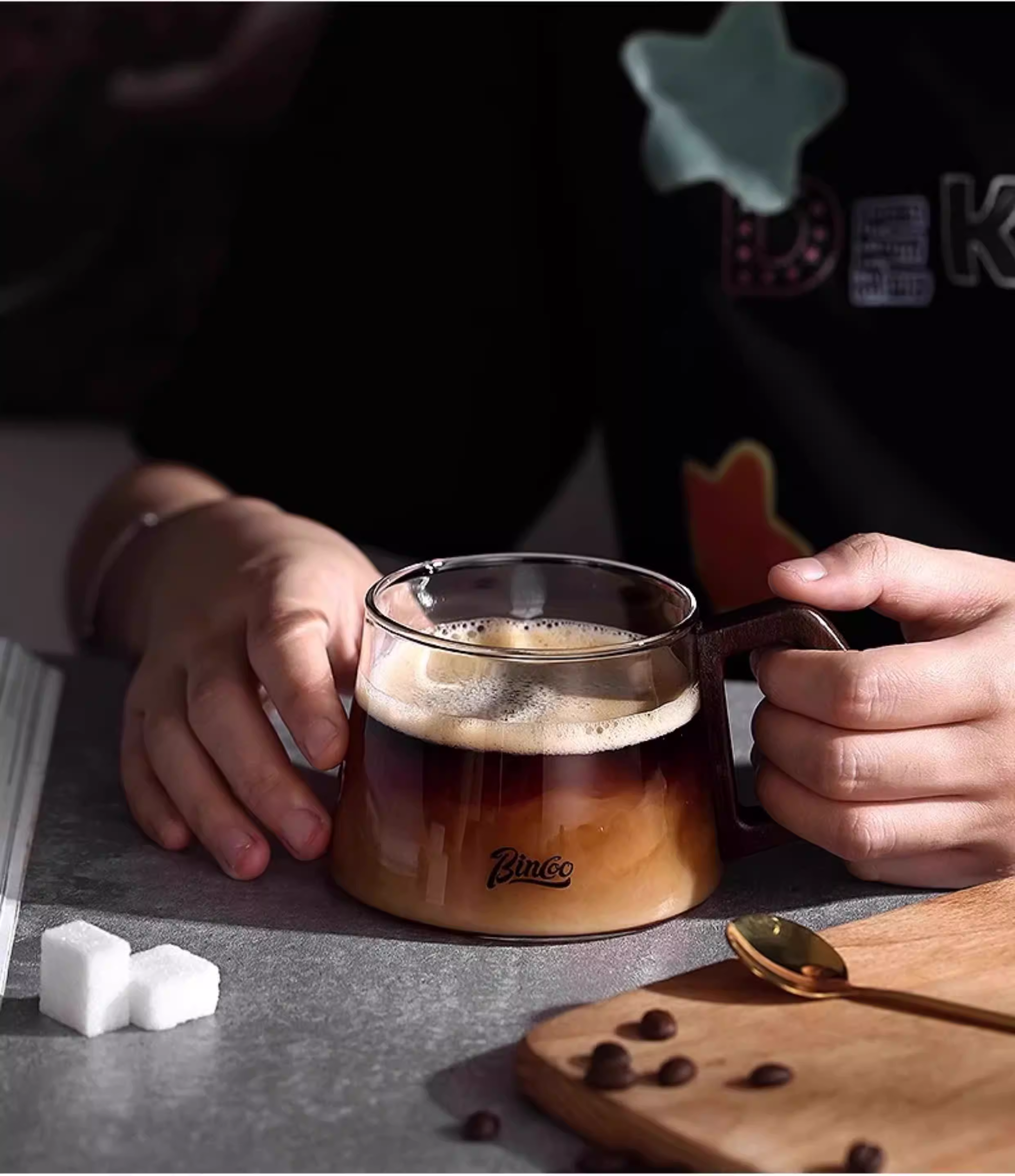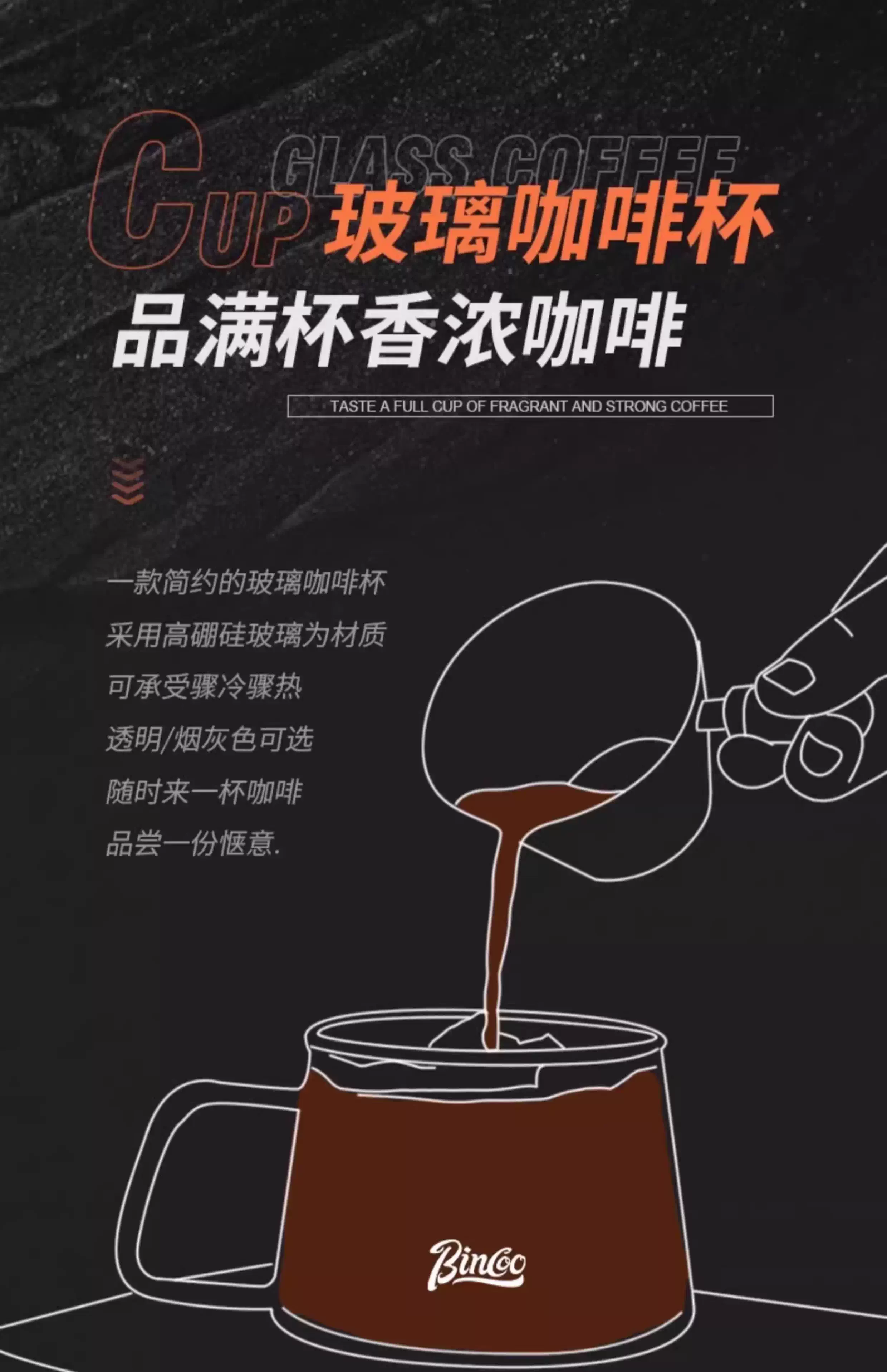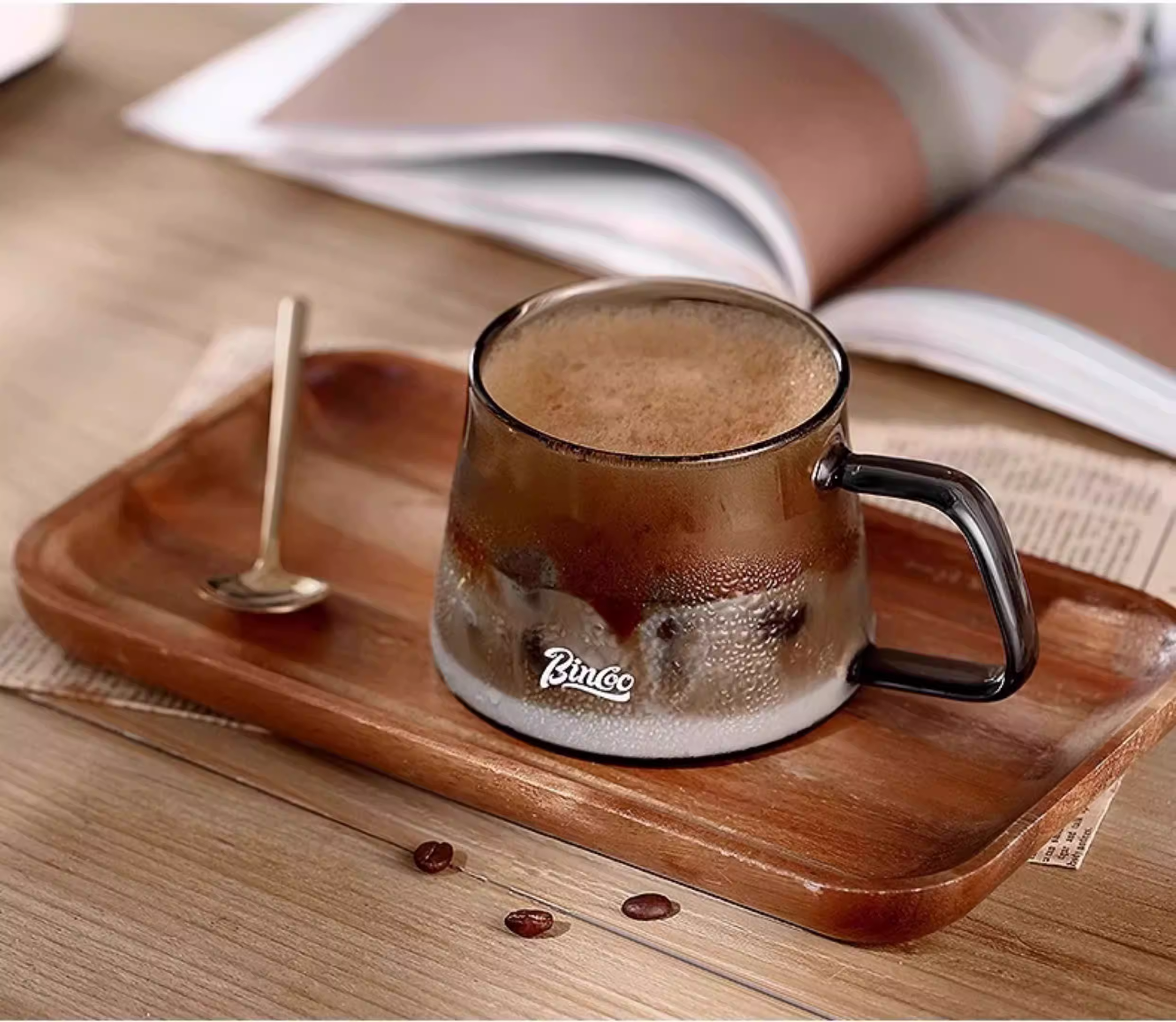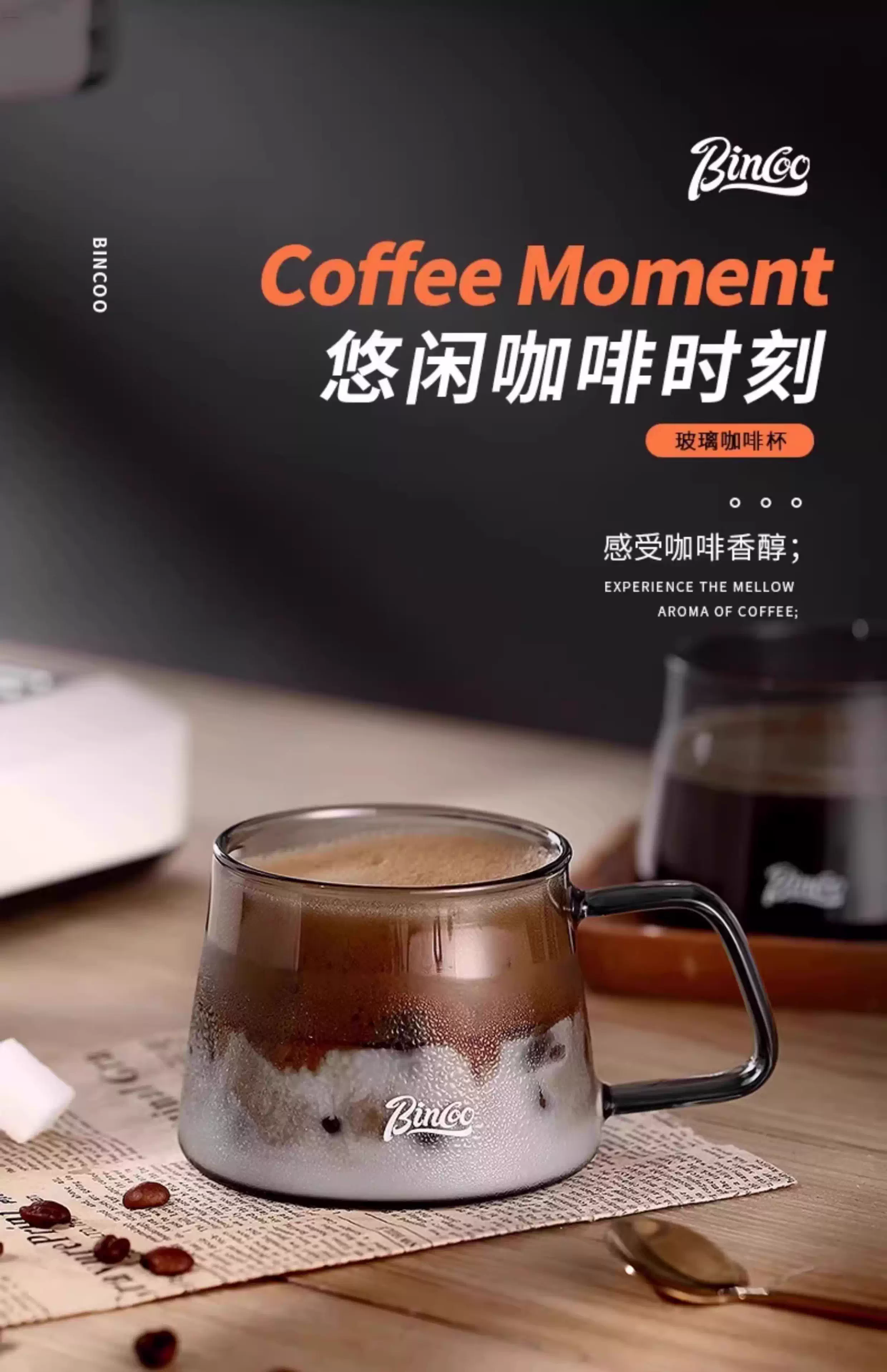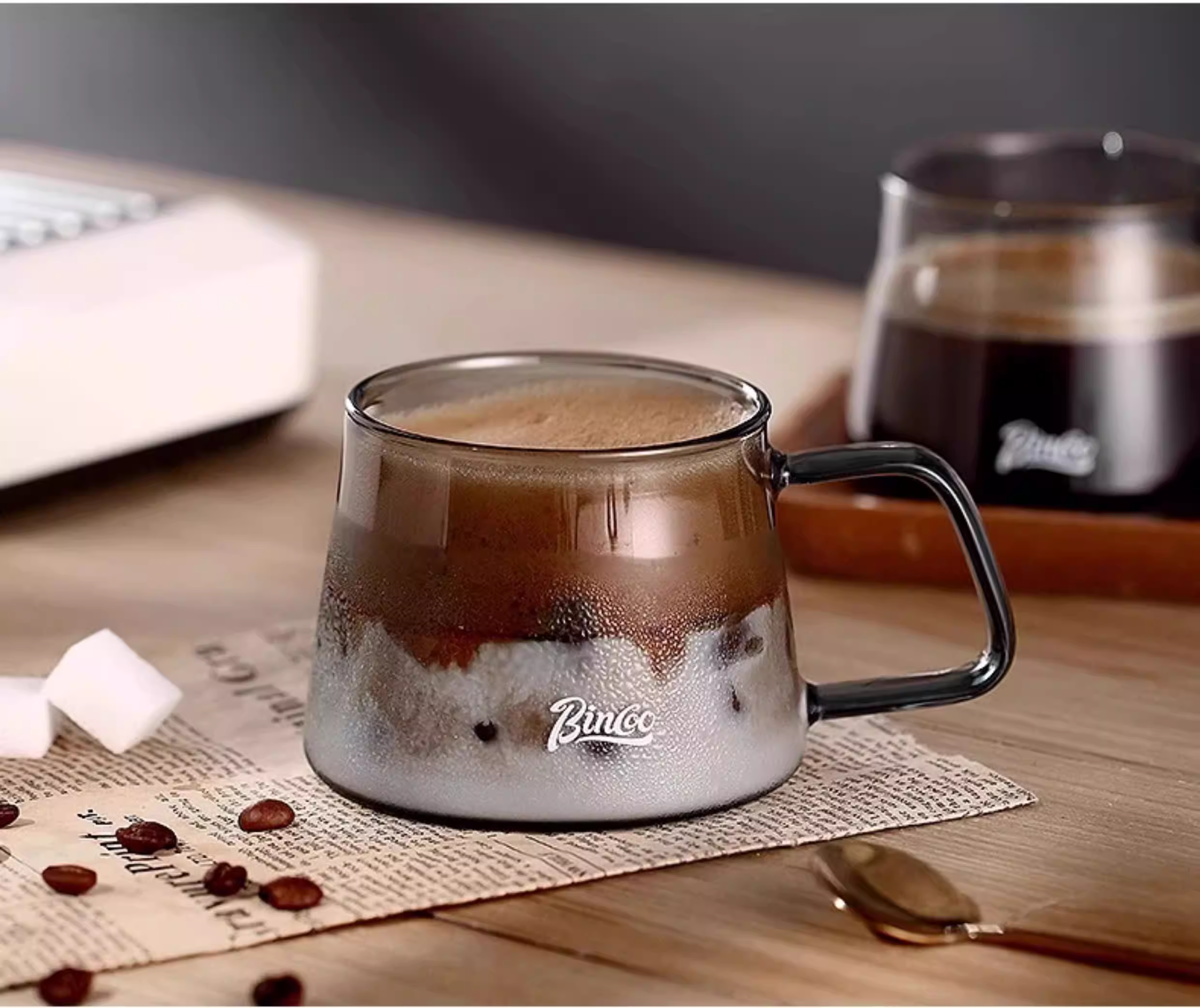 Cốc cà phê thủy tinh kiểu Nhật Bincoo, giá trị thẩm mỹ cao, cốc nghệ thuật latte latte kiểu Mỹ, cốc uống nước văn phòng