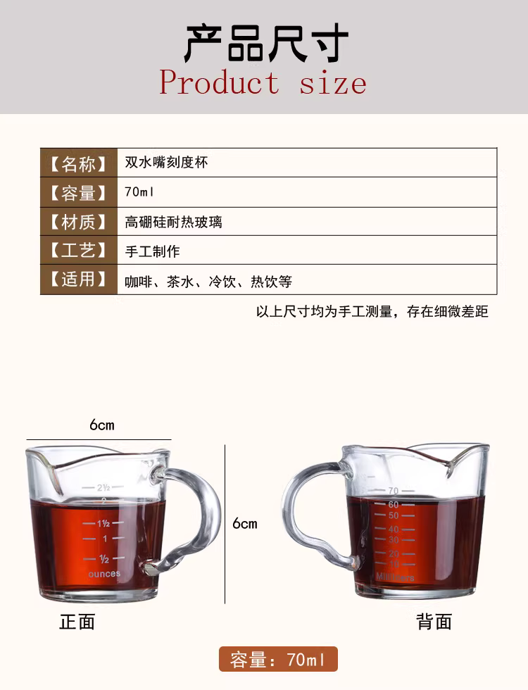 - Cốc đo thủy tinh hai miệng có vạch chia, cốc sữa, cốc cà phê, cốc đo espresso, cốc ounce, 70ML
