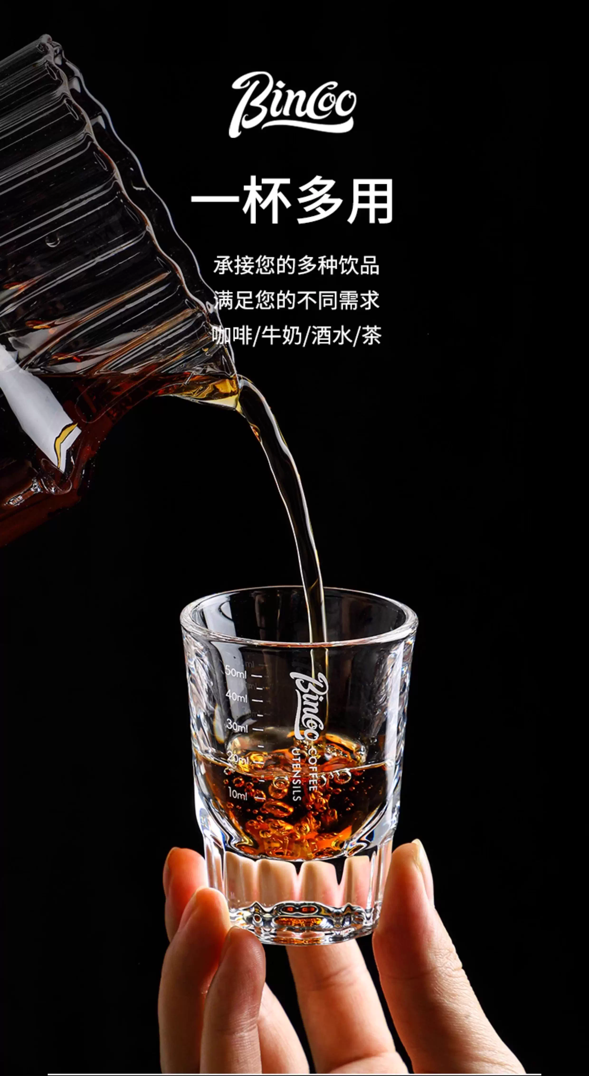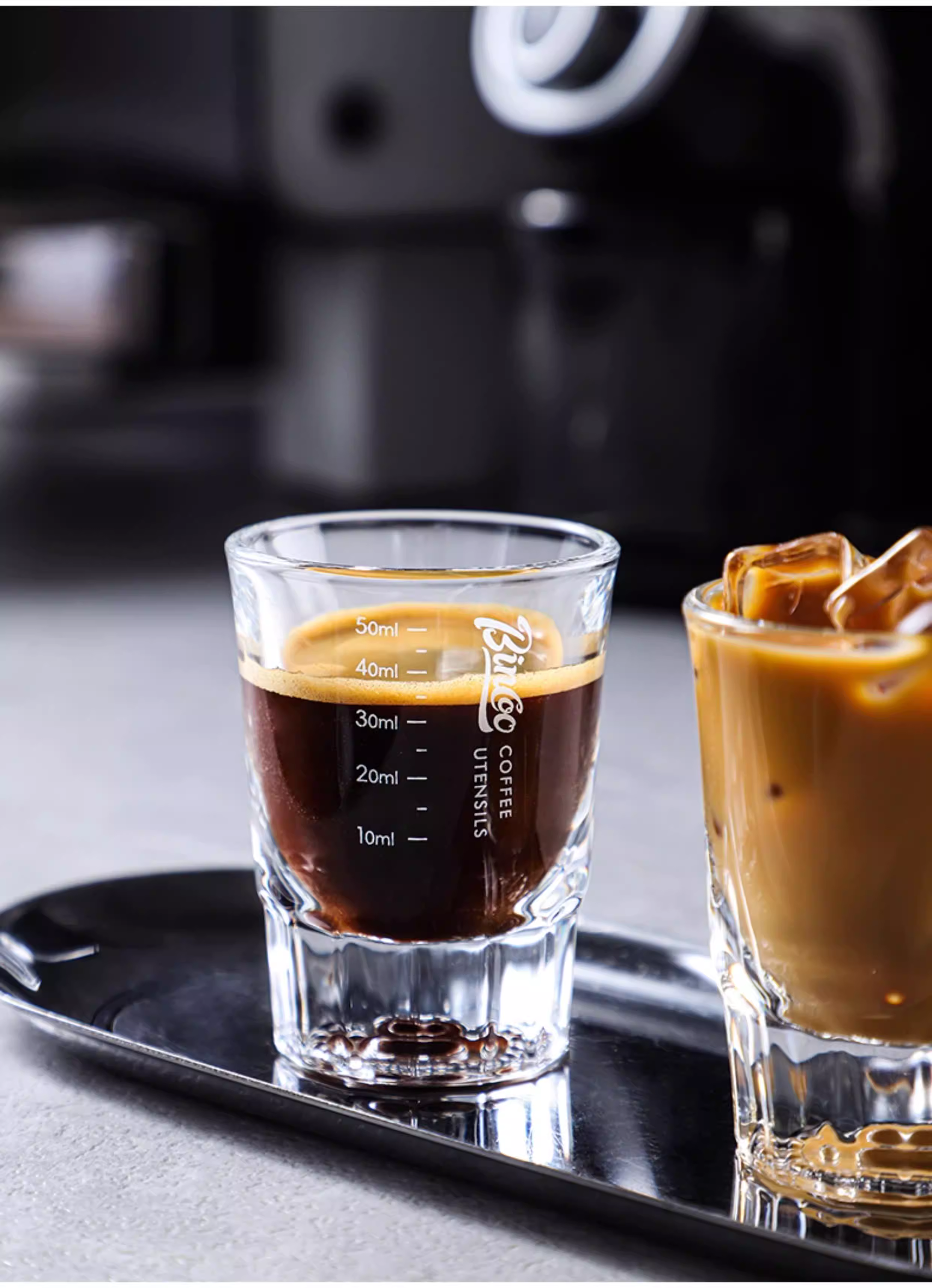 Cốc đong cà phê Ý Bincoo, cốc espresso thủy tinh, cốc ounce, cốc bomb, cốc shot có vạch chia, bình sữa nhỏ, hộp đựng sữa