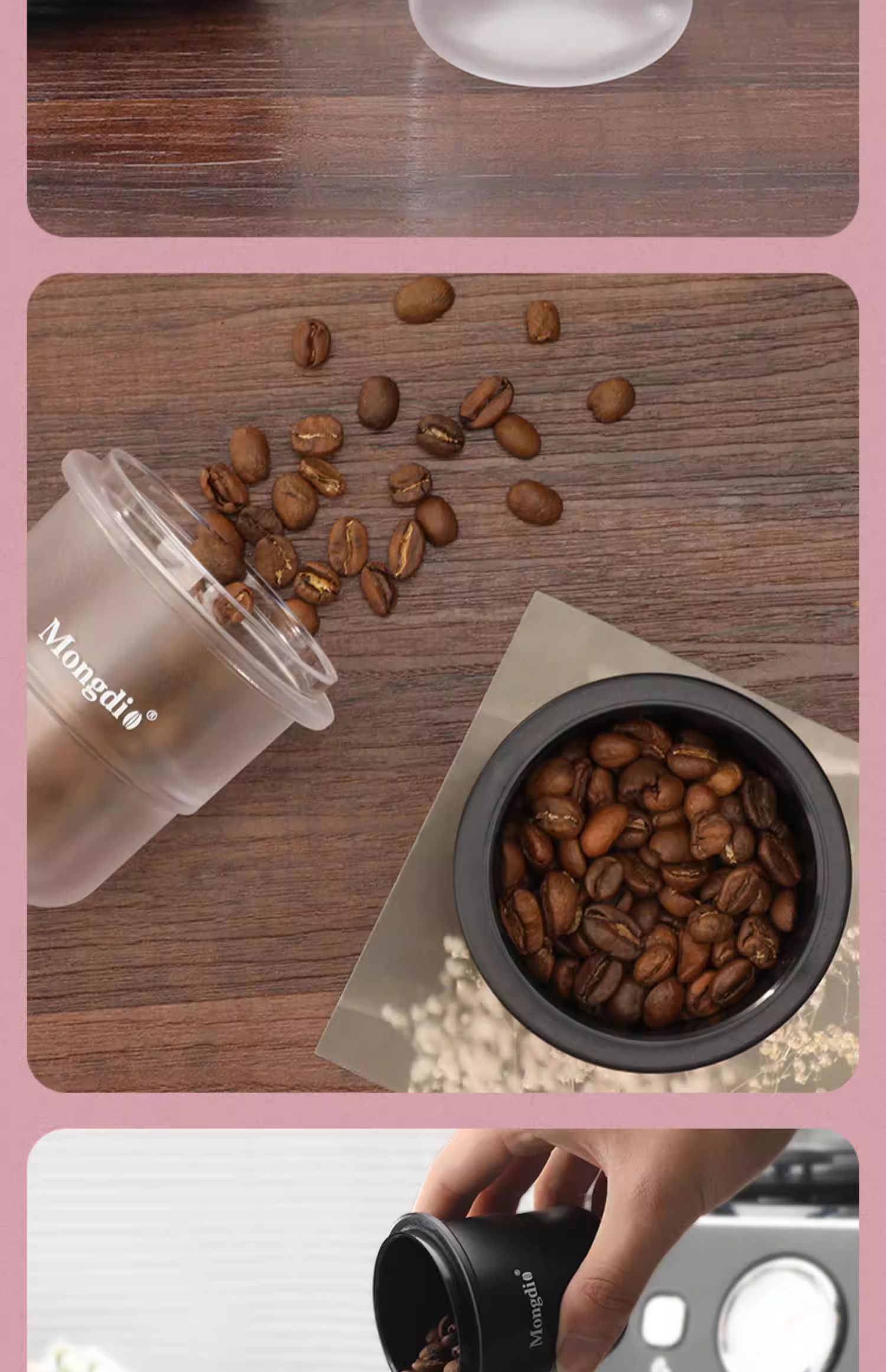 - Cốc đựng bột cà phê Mongdio, cốc đong, cốc ngửi mùi cà phê, tay cầm máy pha cà phê, bộ thu bột chống bắn 58mm