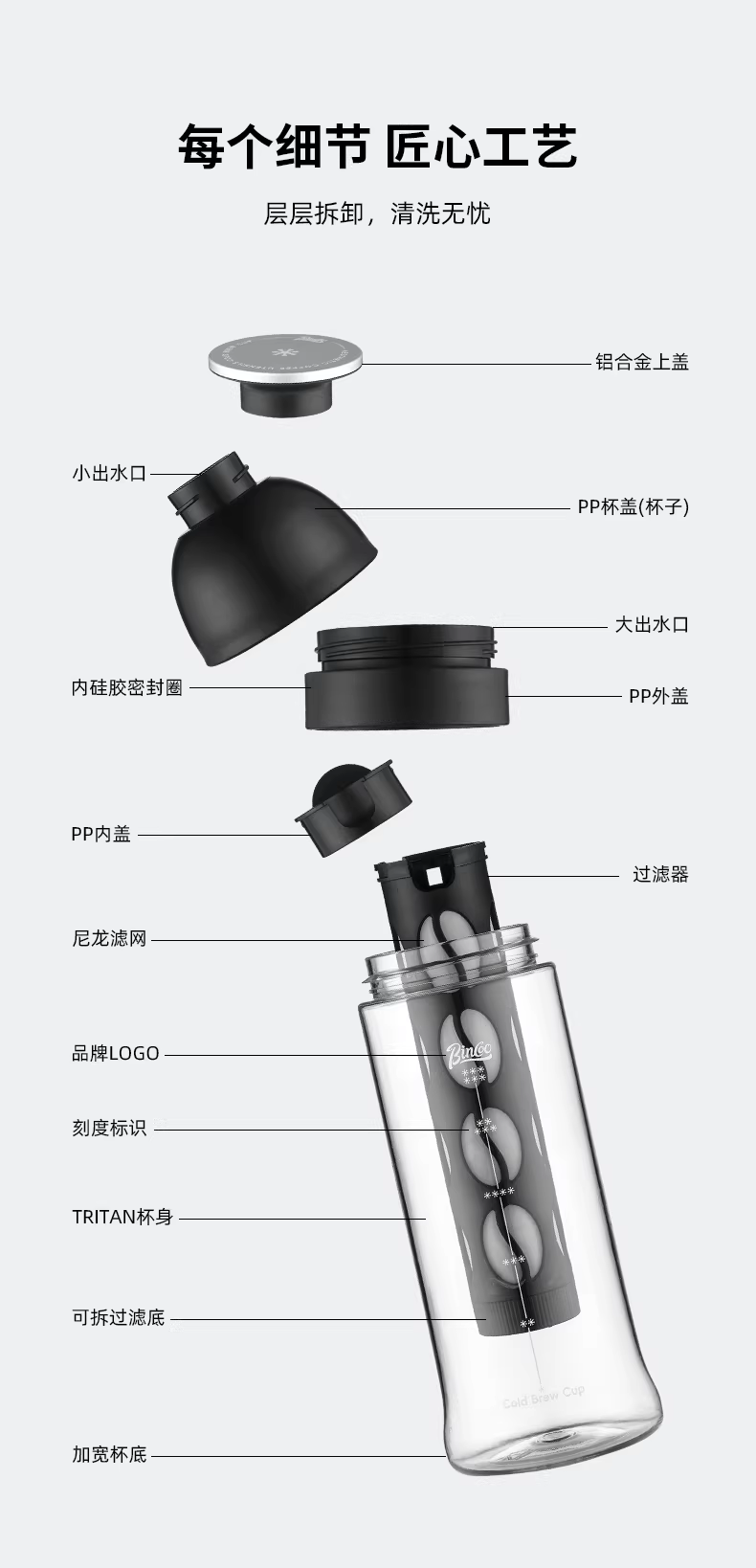 - Cốc pha cà phê lạnh Bincoo, bình pha cà phê lạnh di động, cốc chịu nhiệt cao, cốc nước Tritan di động, bình pha cà phê lạnh chống rò rỉ