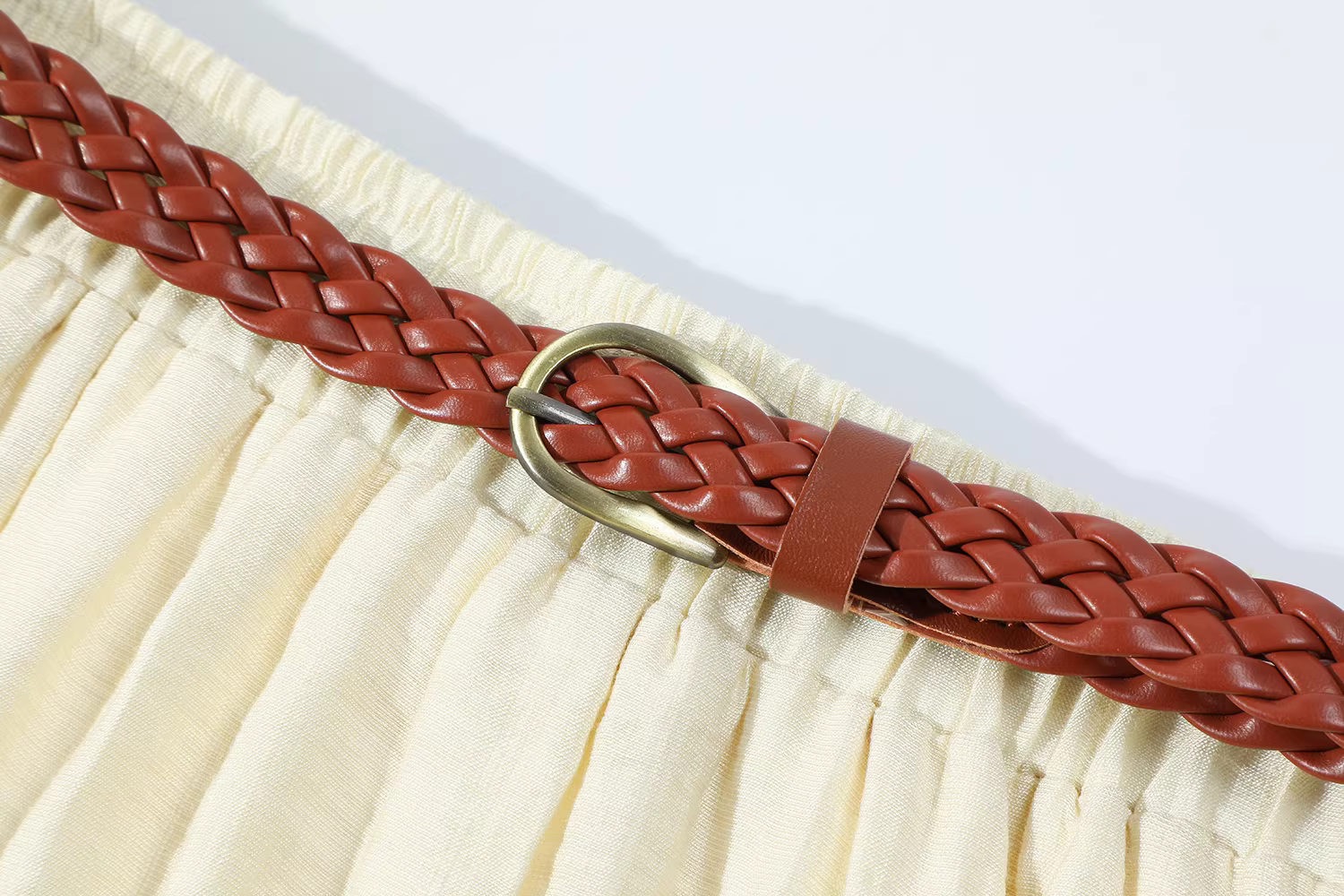 - CuteGirl phong cách dịu dàng kiểu Pháp thắt lưng dệt váy trắng mùa hè dành cho nữ váy dài chữ A xếp nếp thanh lịch lưng cao