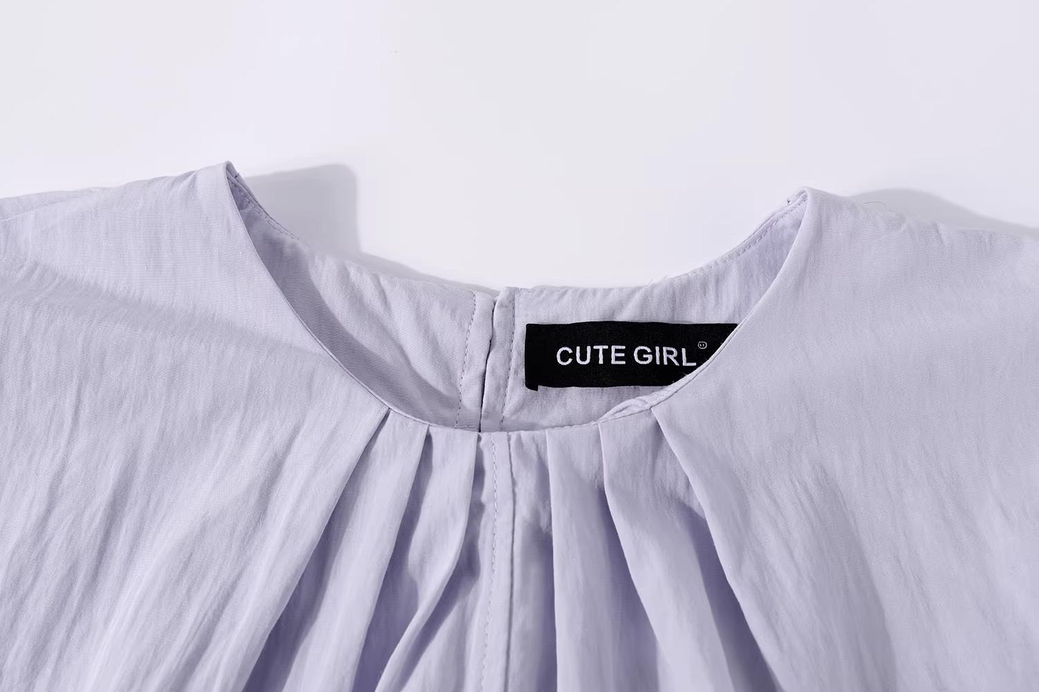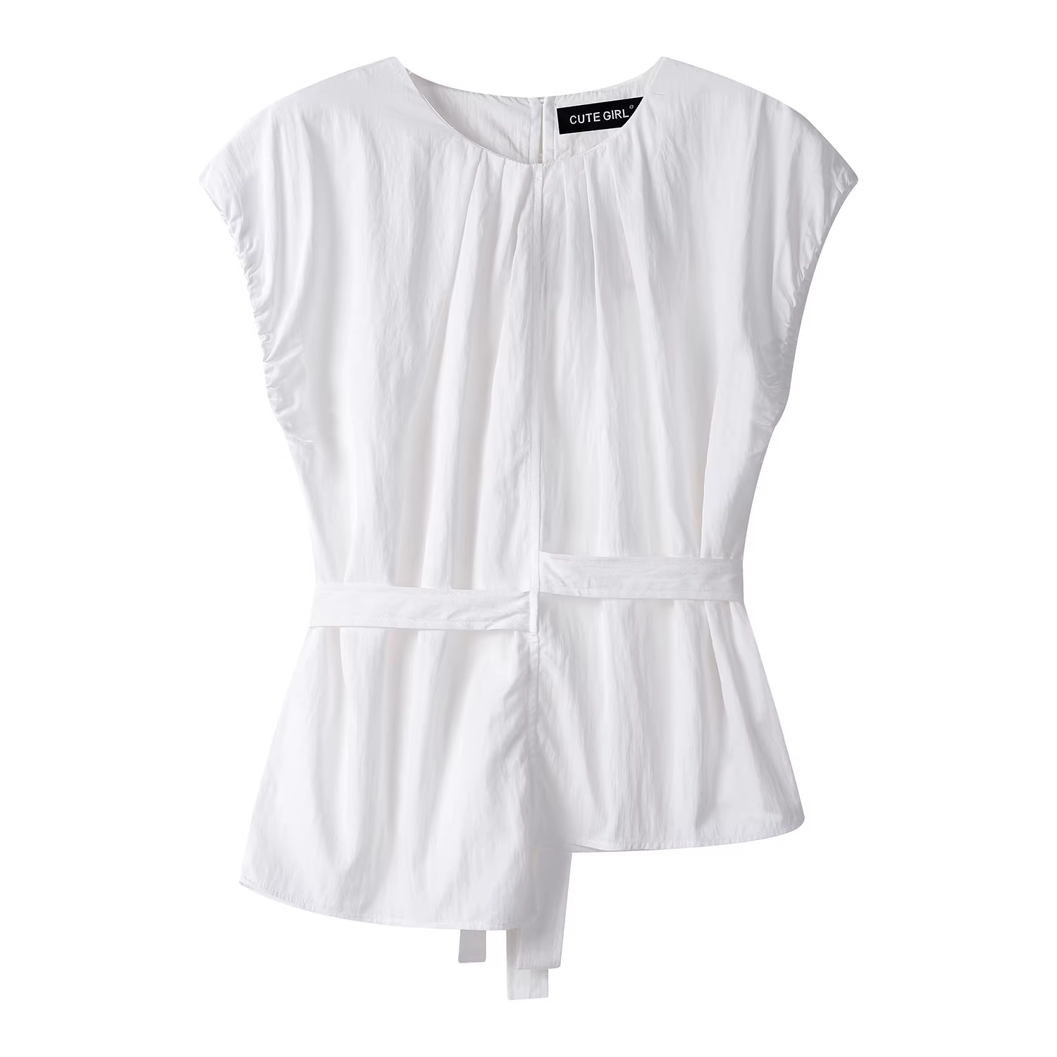 CuteGirl Thiết kế theo phong cách Hàn Quốc với tay áo xòe, áo sơ mi ngắn tay buộc dây phía sau dành cho nữ, áo bất đối xứng ôm eo mùa hè
