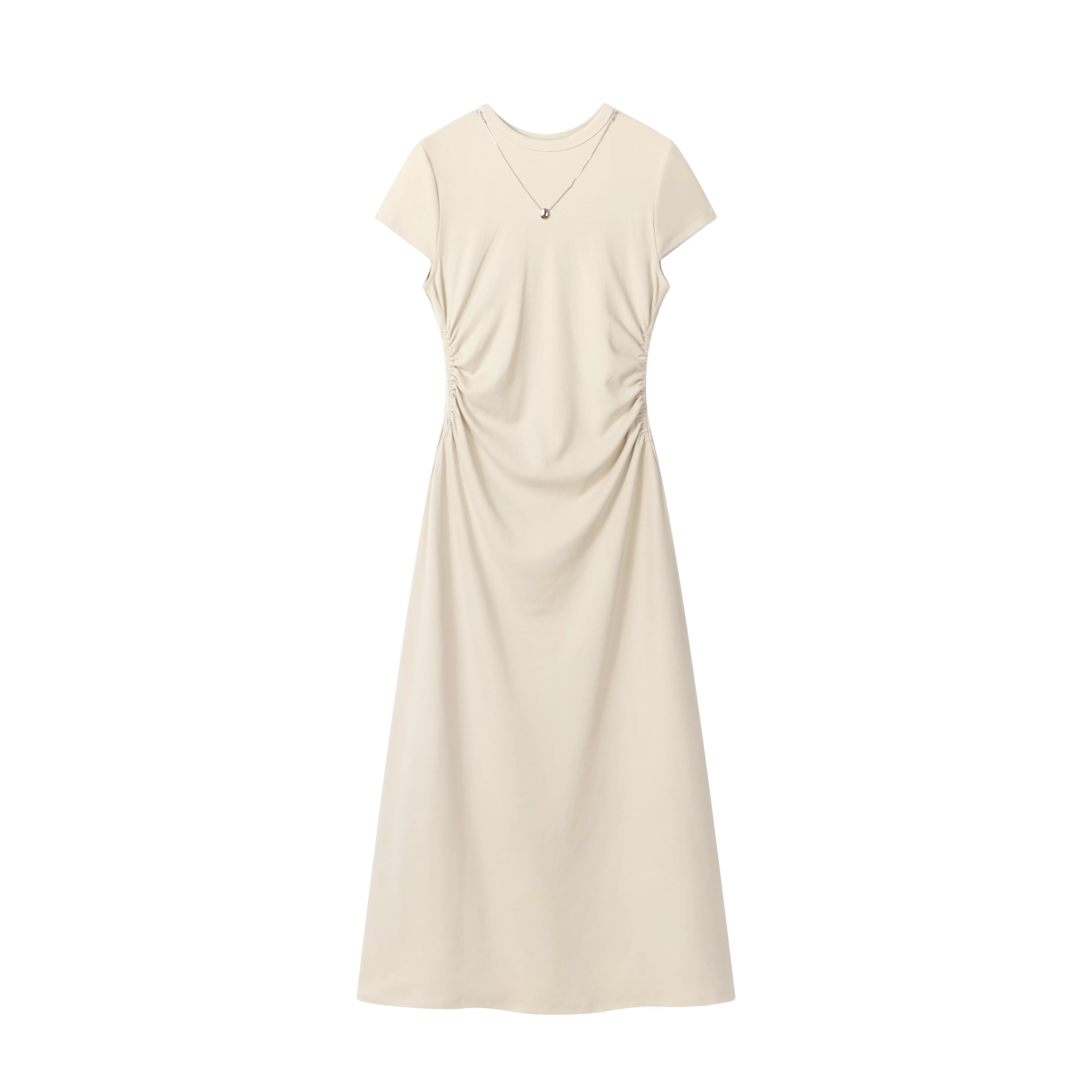 CuteGirl Váy màu mơ dáng ôm eo thanh lịch kiểu Pháp dành cho nữ, váy dài kiểu áo thun dệt kim thon gọn eo mùa hè.
