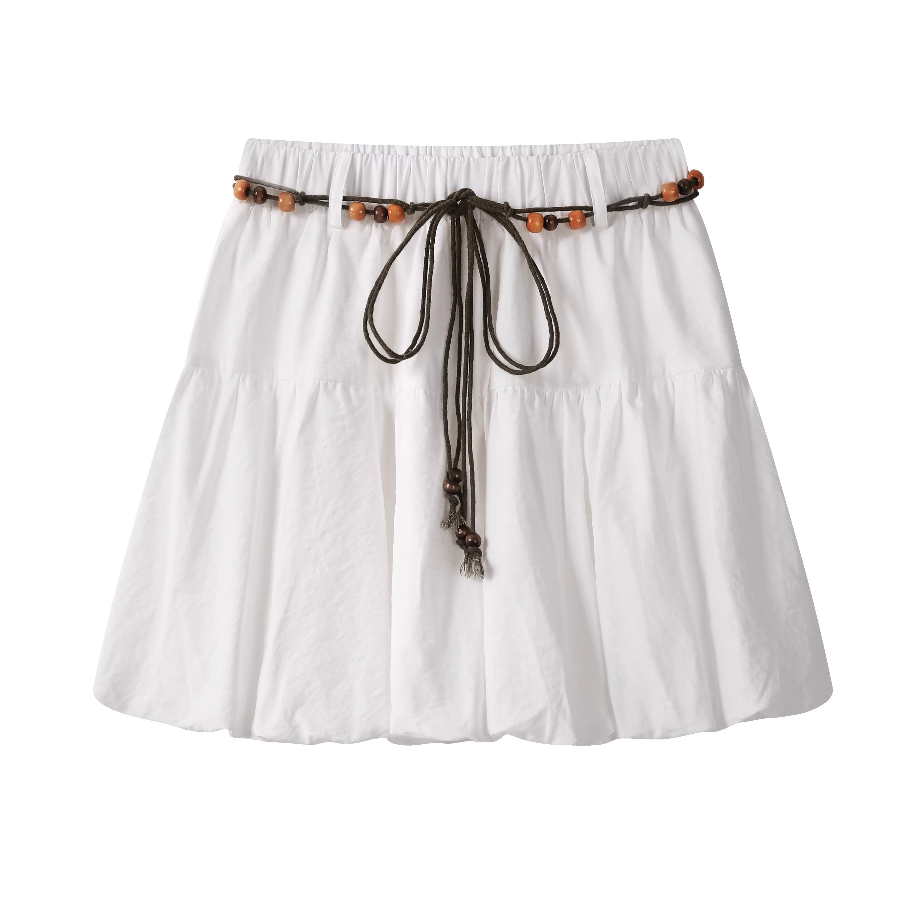 CuteGirl Váy phồng đính cườm phong cách Hàn Quốc màu trắng chữ A dành cho nữ, váy ngắn phồng thanh lịch mùa hè