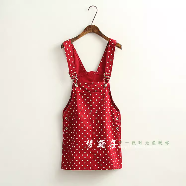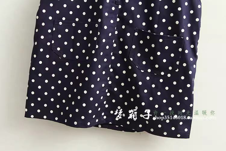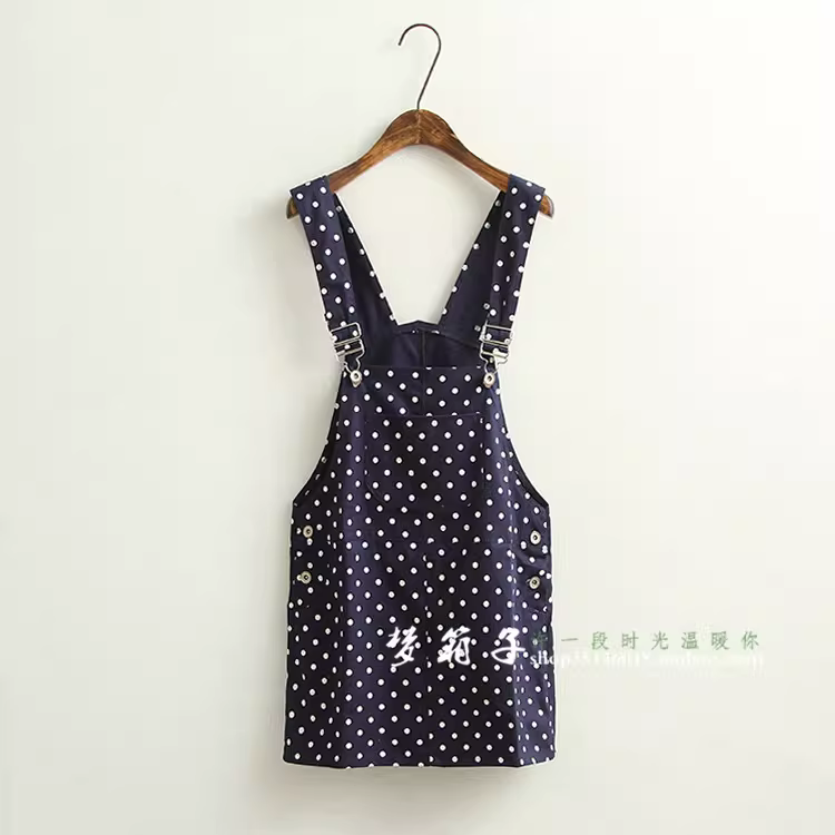 - Đầm cotton in chấm bi mùa hè Dream Box 2024, kiểu dáng ôm dáng, phong cách Mori Girl, trẻ trung, đầm yếm chấm bi