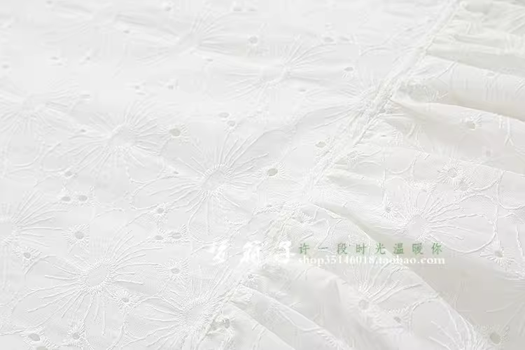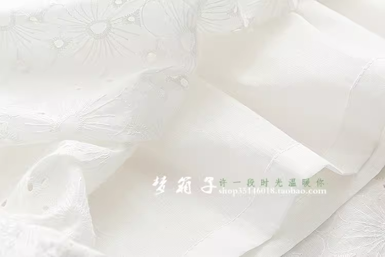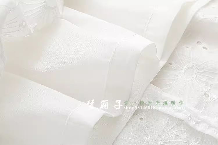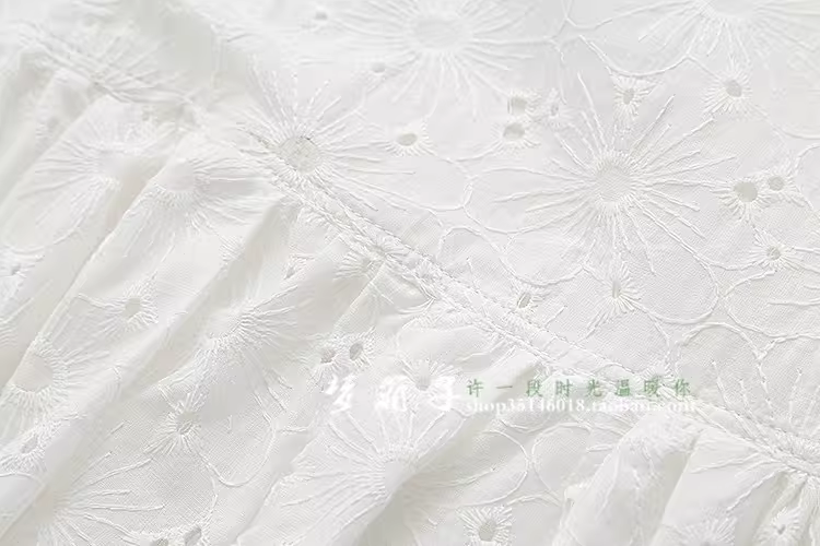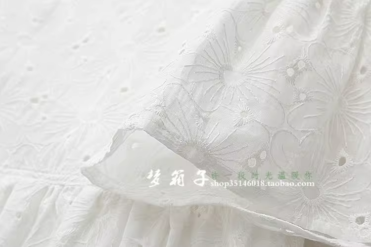 - Đầm cotton trắng tay bồng thêu hoa mùa hè mới Dream Box 2024 cổ tròn