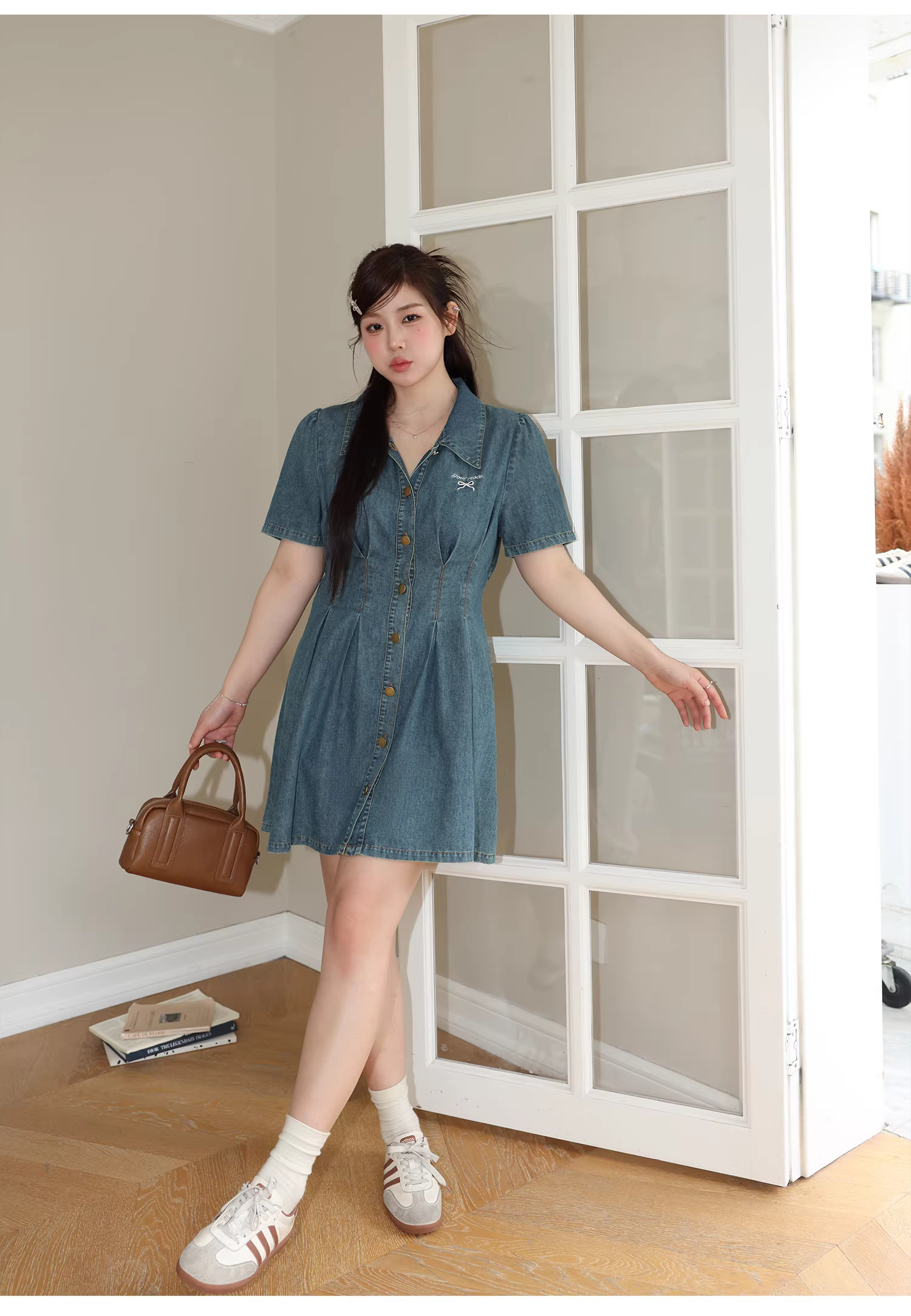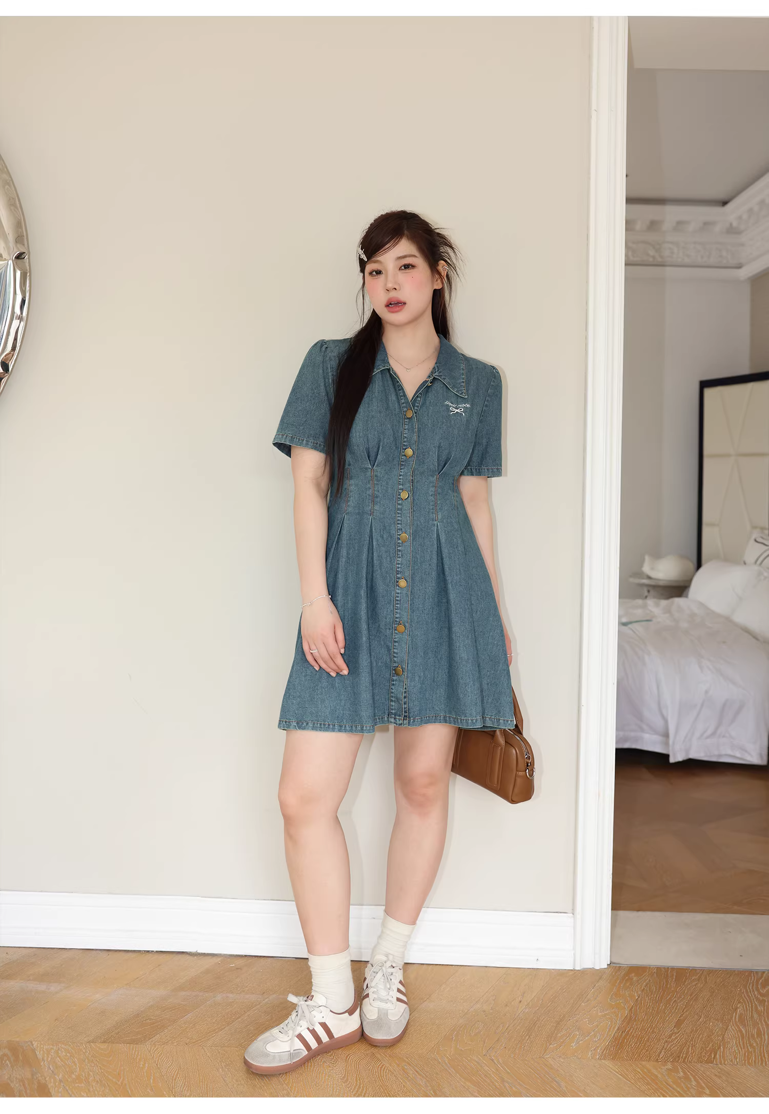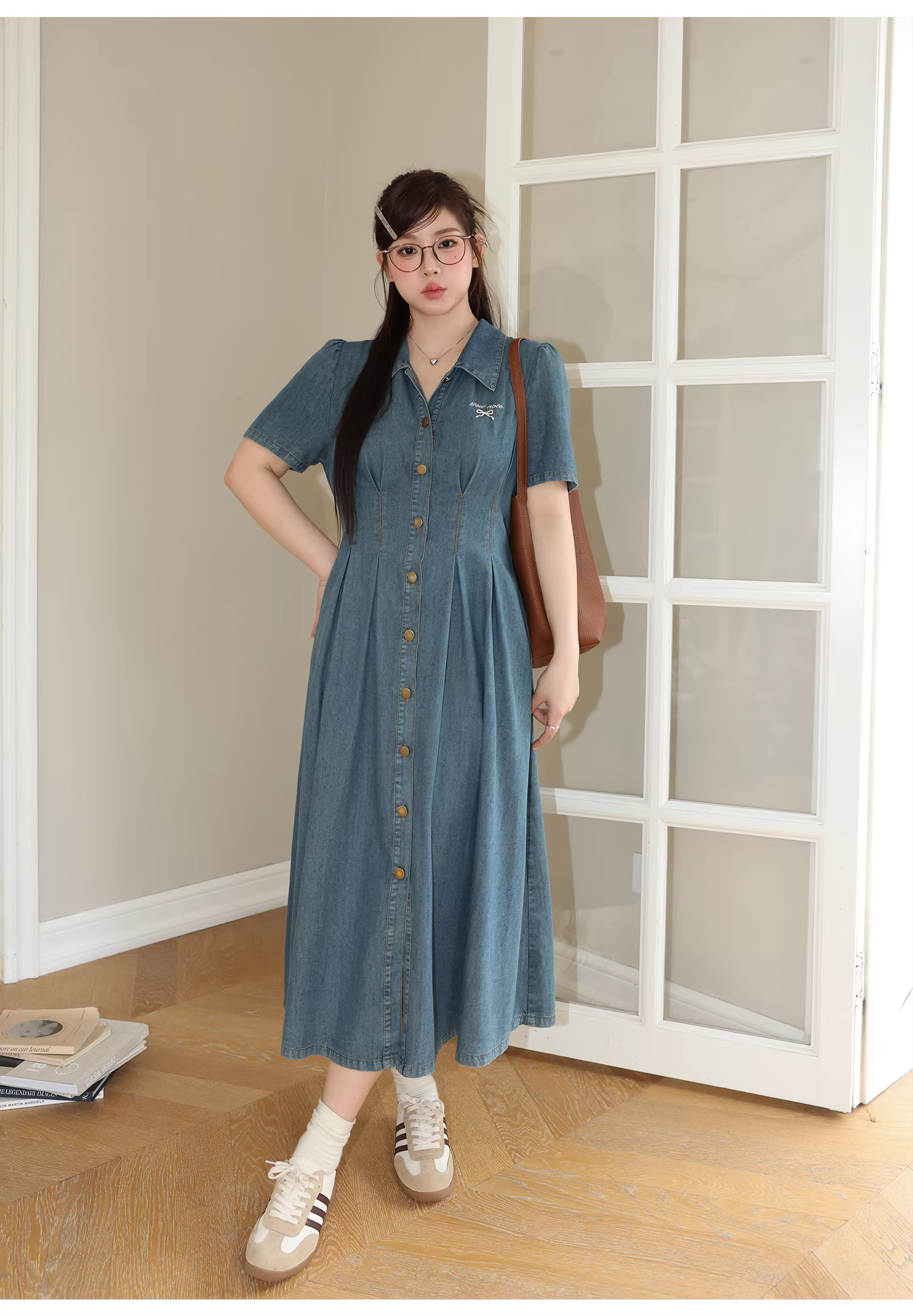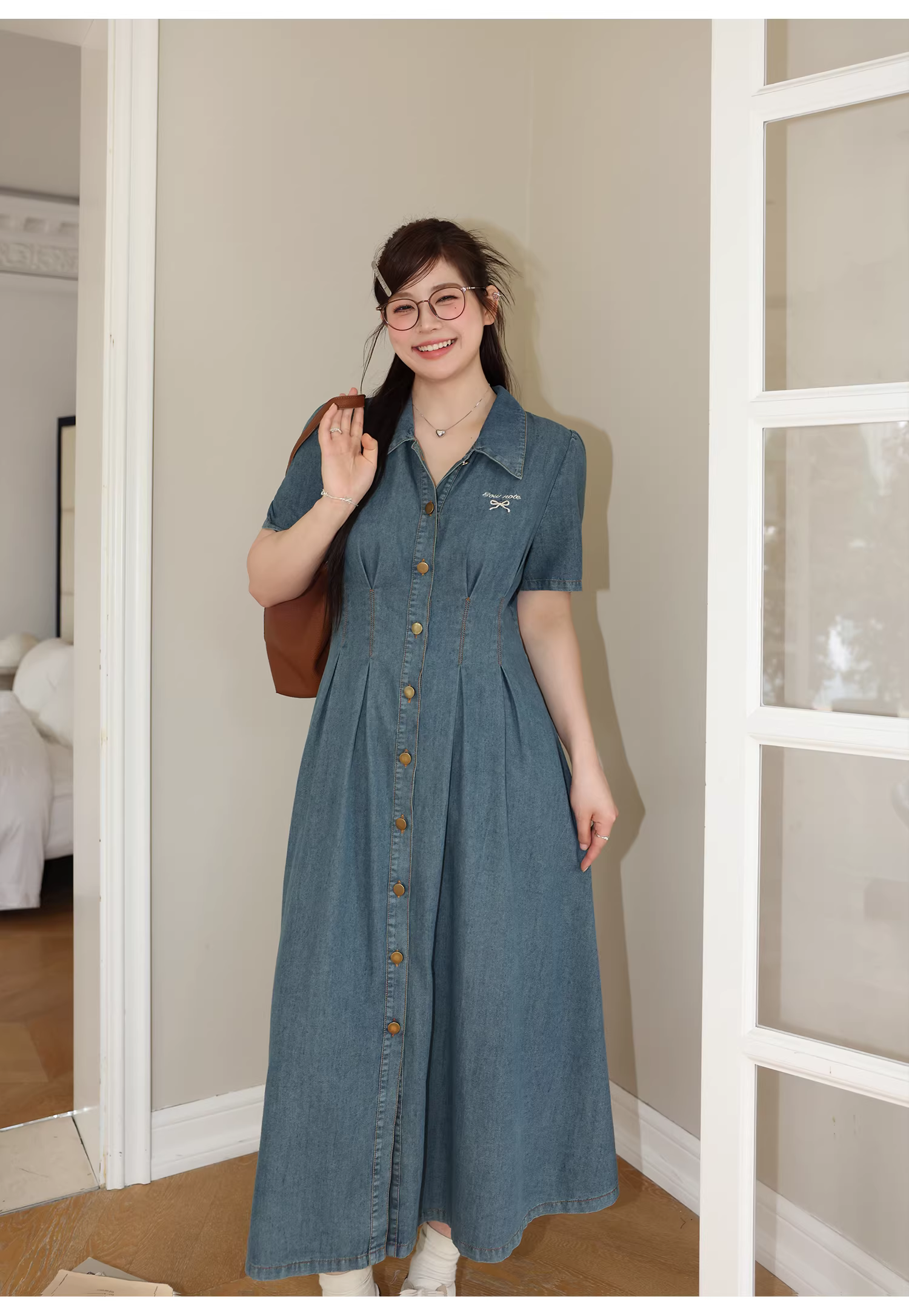 - Đầm dài kiểu Pháp size lớn cho nữ Zhang Daren, mùa hè 2025, kiểu mới dành cho các cô gái mũm mĩm, giúp thon gọn và che khuyết điểm, chất liệu denim.