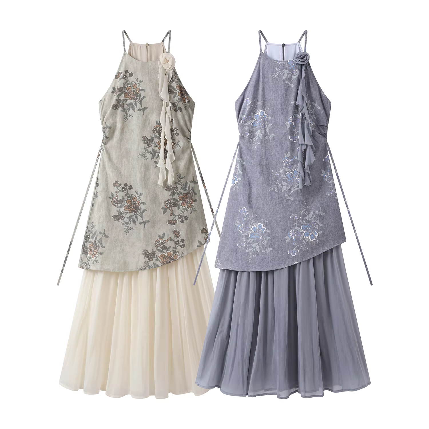 Đầm dây đeo hoa kiểu cổ điển kiểu Trung Quốc mới dành cho nữ, váy dài kiểu áo ba lỗ cao cấp mới mùa hè