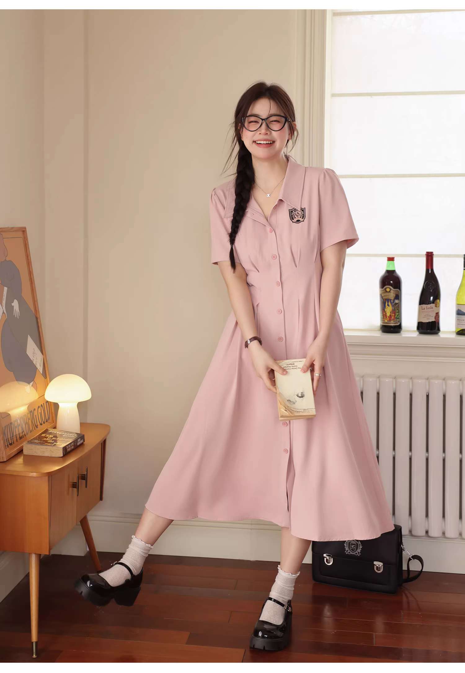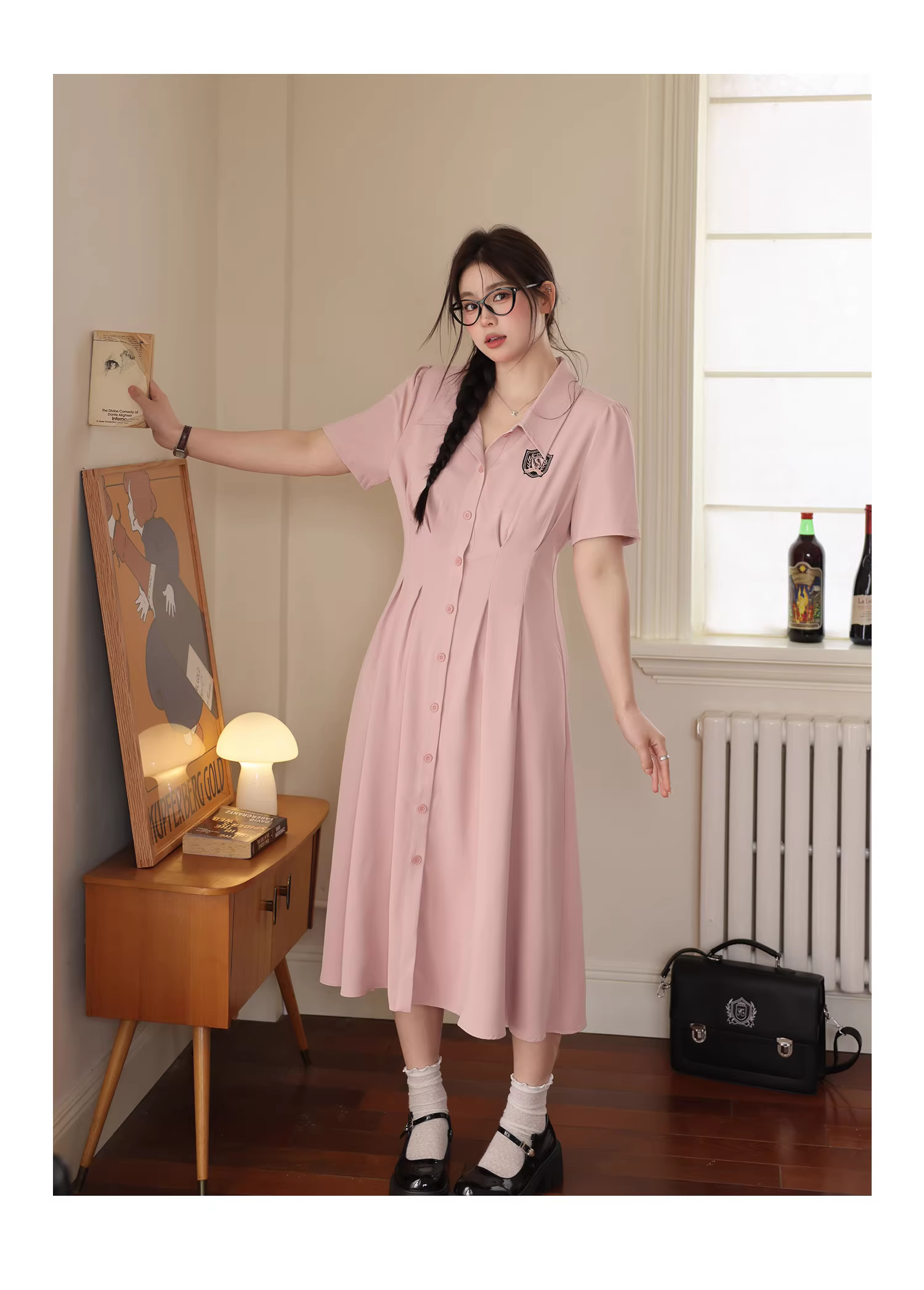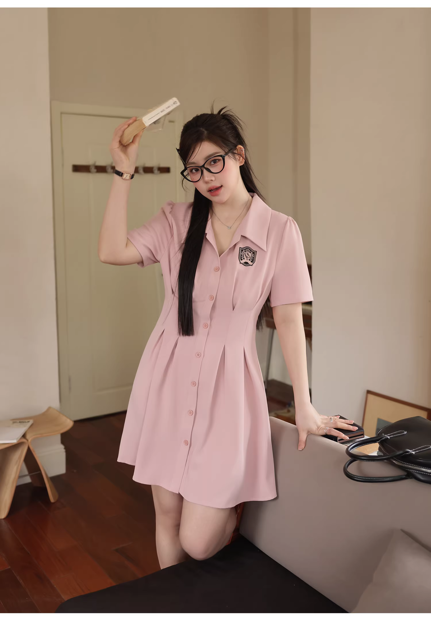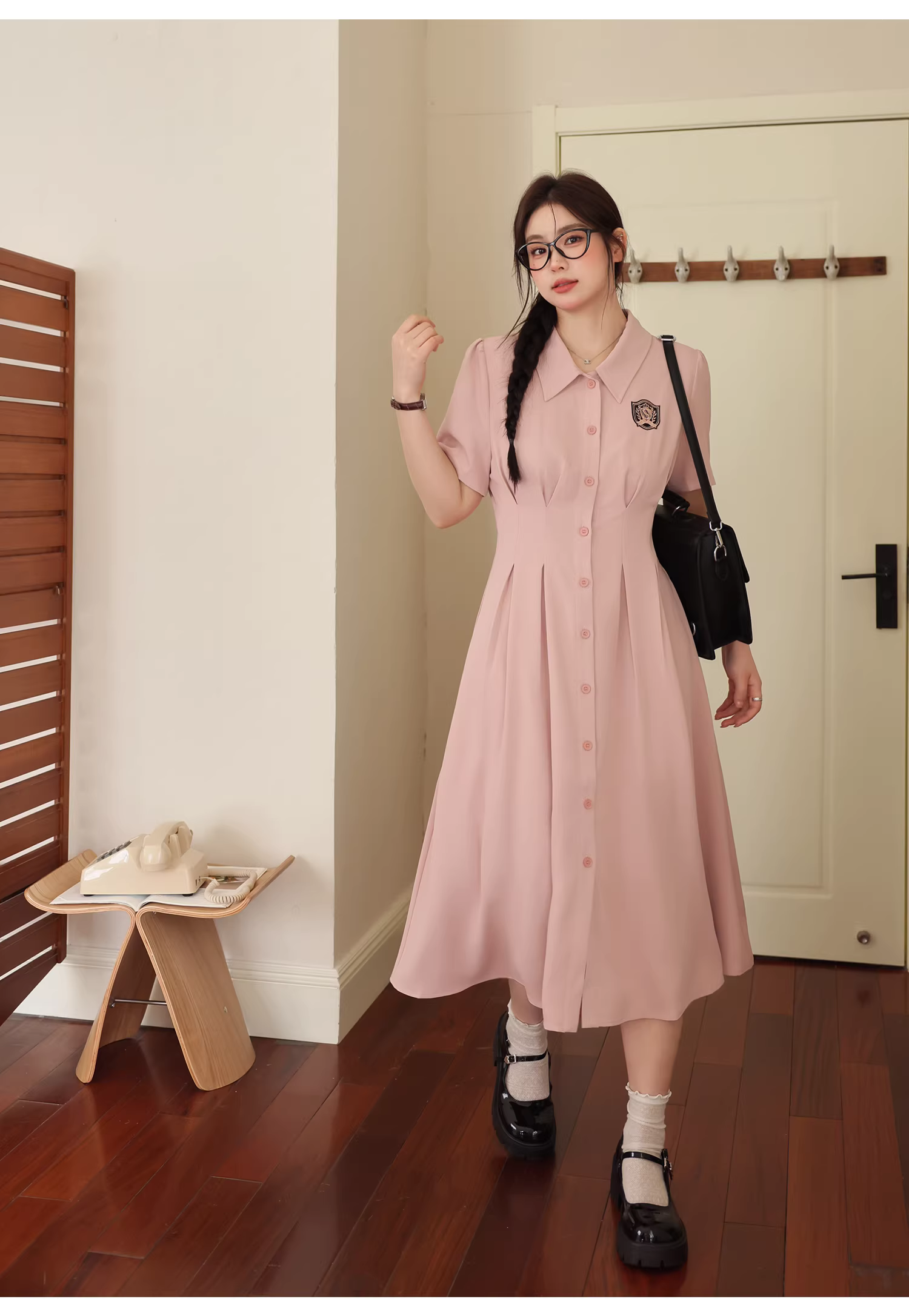 - Đầm ngắn tay màu hồng thanh lịch, kiểu dáng thời trang, tôn dáng dành cho phụ nữ cỡ lớn, phong cách preppy mùa hè.