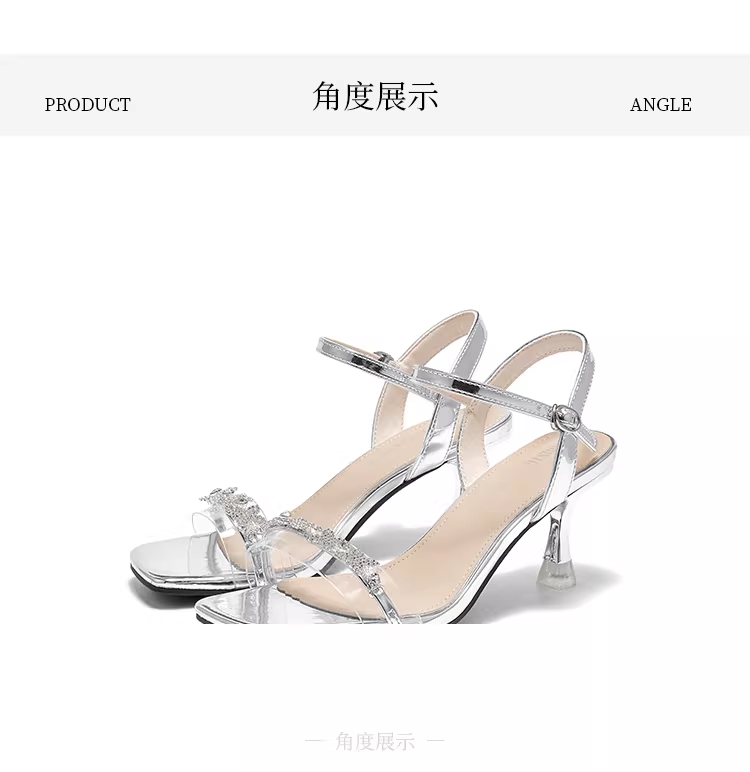 - Dép bạc Dadong dành cho nữ 2025, dép mùa hè mới với quai đơn, phù hợp phối với đầm, mũi vuông, gót nhọn cao.