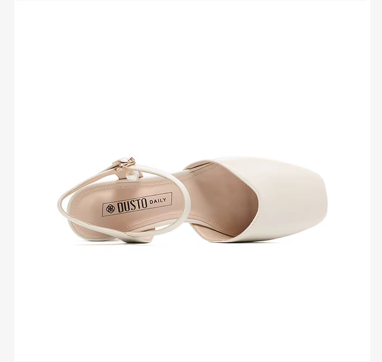 - Dép cao gót đế thô Dadong dành cho nữ, mẫu mới hè 2025 màu trắng, quai hở, kiểu dáng thanh lịch.