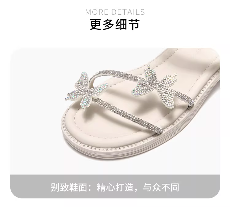 Dép đính đá Dadong dành cho nữ, kiểu dáng mùa hè mới 2025, có thể phối với váy, đeo được hai kiểu, dép đi biển kiểu Pháp để mặc ngoài trời.