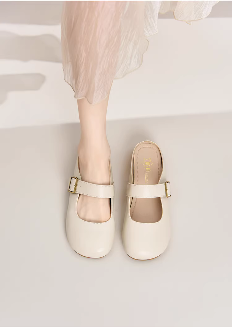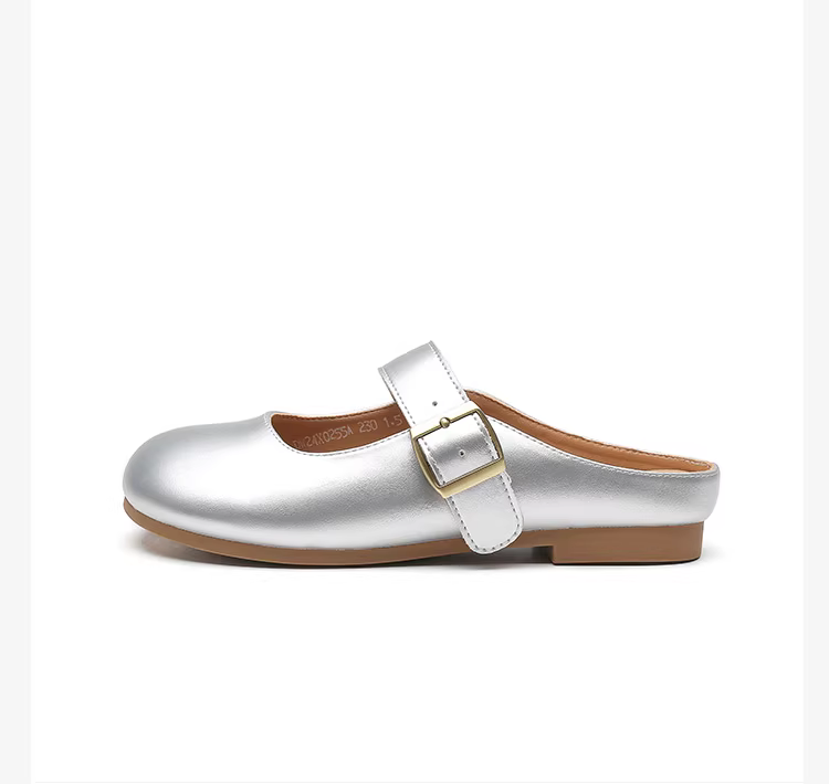 - Dép lê nửa kín mũi Dadong dành cho nữ, mẫu mới hè 2025, kiểu Pháp, đế bằng, màu bạc, thanh lịch