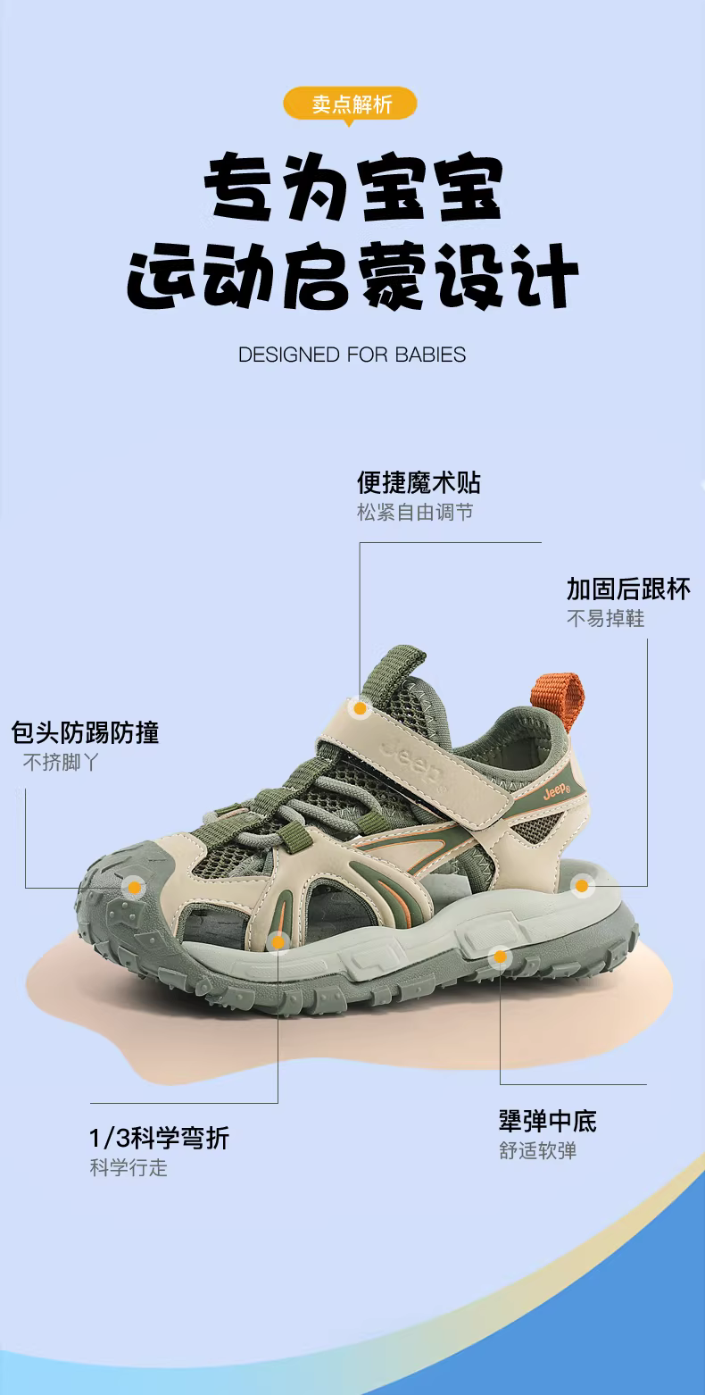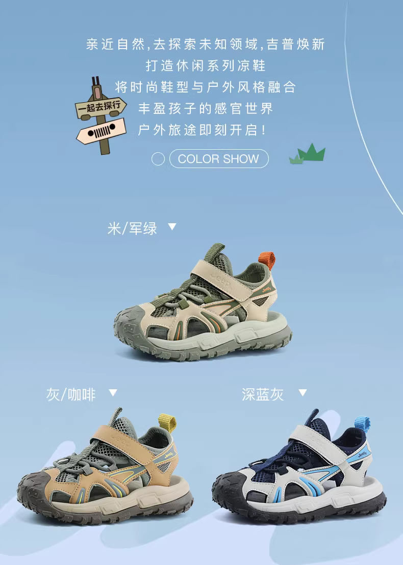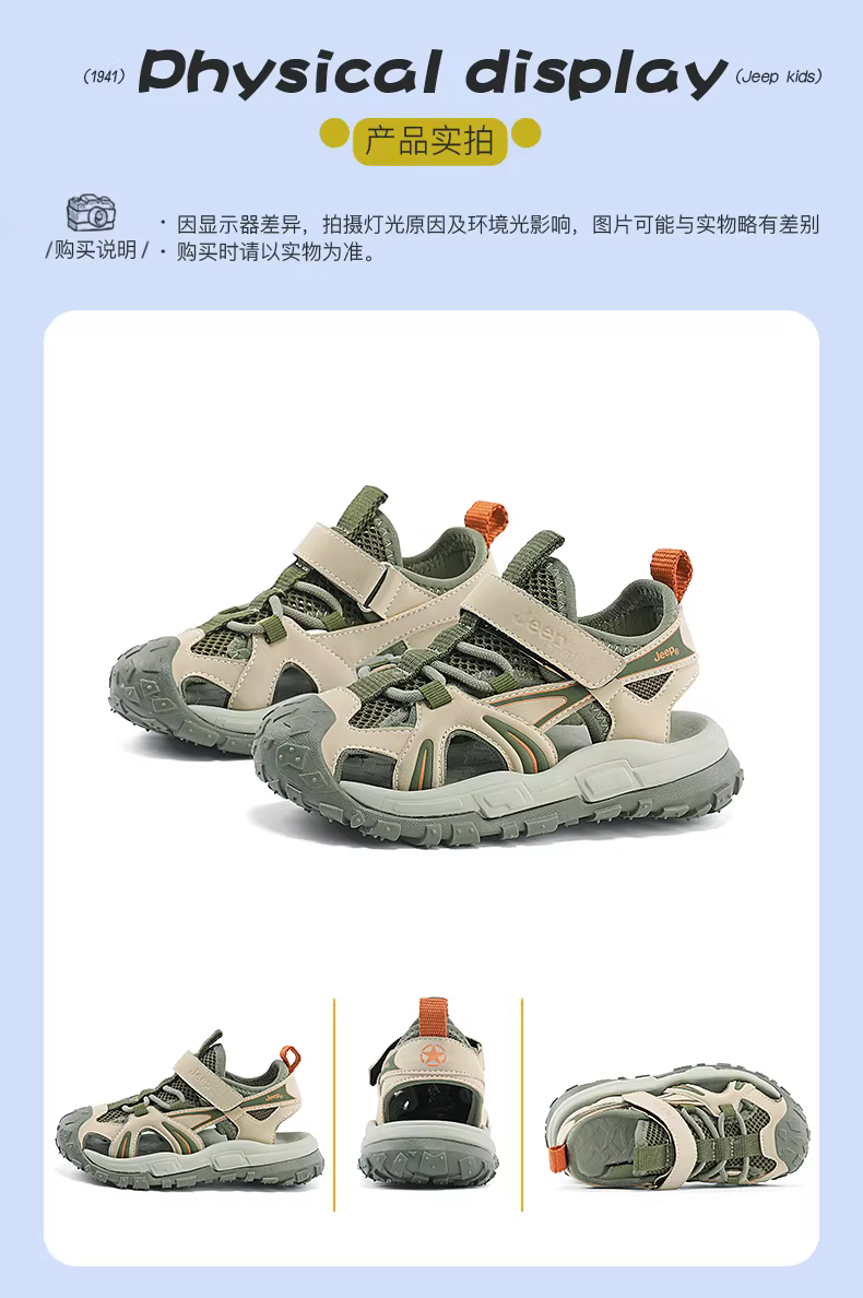 - Dép nam Jeep mũi kín, giày thể thao mùa hè cho trẻ lớn, mẫu mới 2024, giày đi biển trẻ em kiểu rỗng.