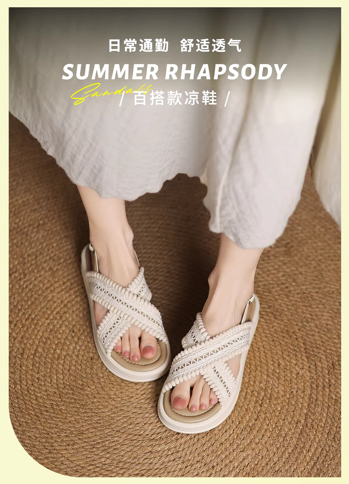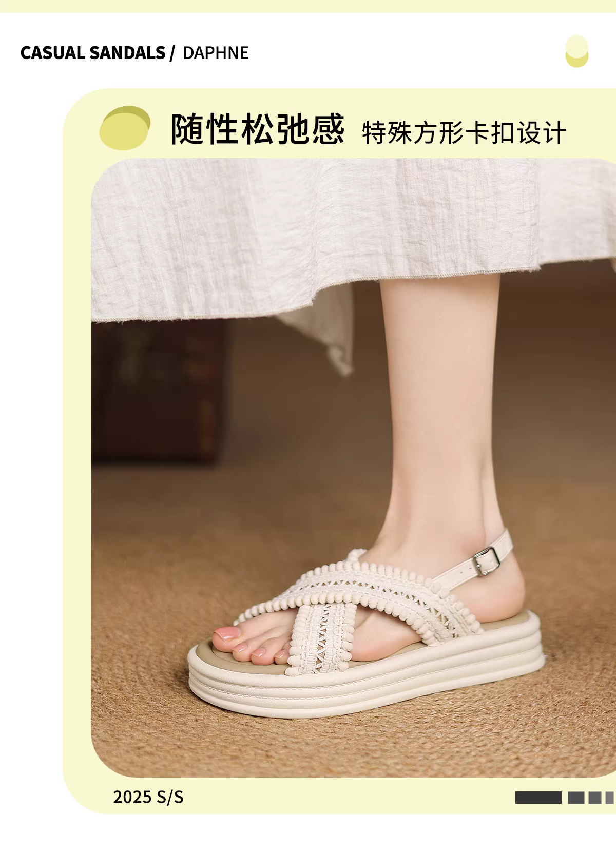 - Dép nữ đế dày phong cách boho Daphne 2025, kiểu dáng dân tộc mùa hè mới, dép dệt
