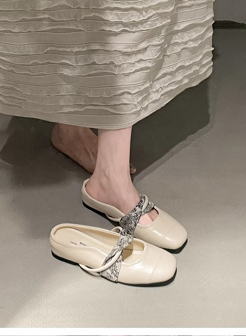 - Dép nữ đế thấp cổ điển màu đen, mũi kín, tăng chiều cao, thời trang mùa hè, kiểu mới 2025, thích hợp phối cùng váy, dép kiểu Pháp.