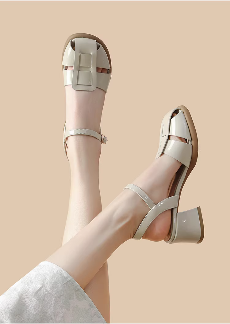 Dép nữ quai ngang, mũi kín, kiểu mới 2025, thích hợp đi ngoài trời mùa hè, gót dày, phối cùng chân váy, giày cao gót.