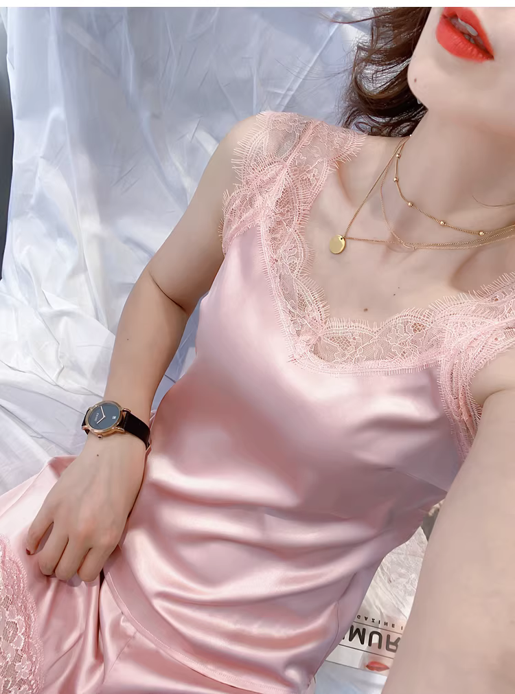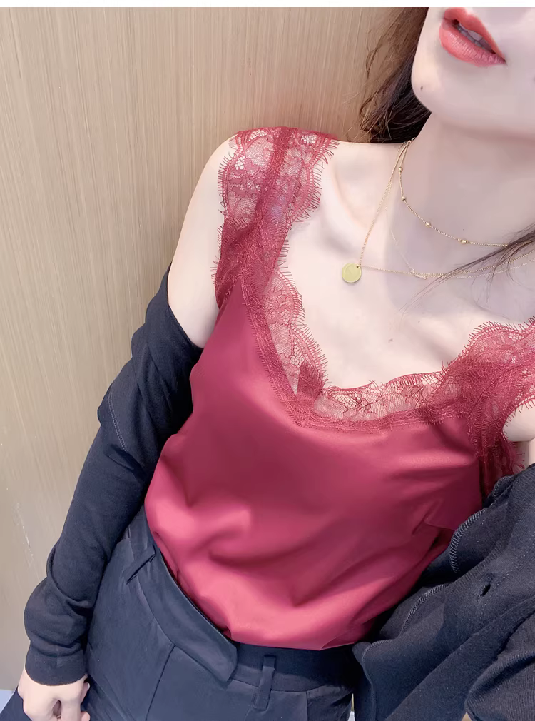 - Đẹp quá! Áo camisole màu trơn phong cách công sở dành cho nữ, áo ren mềm mại gợi cảm, cổ chữ V mùa xuân hè.