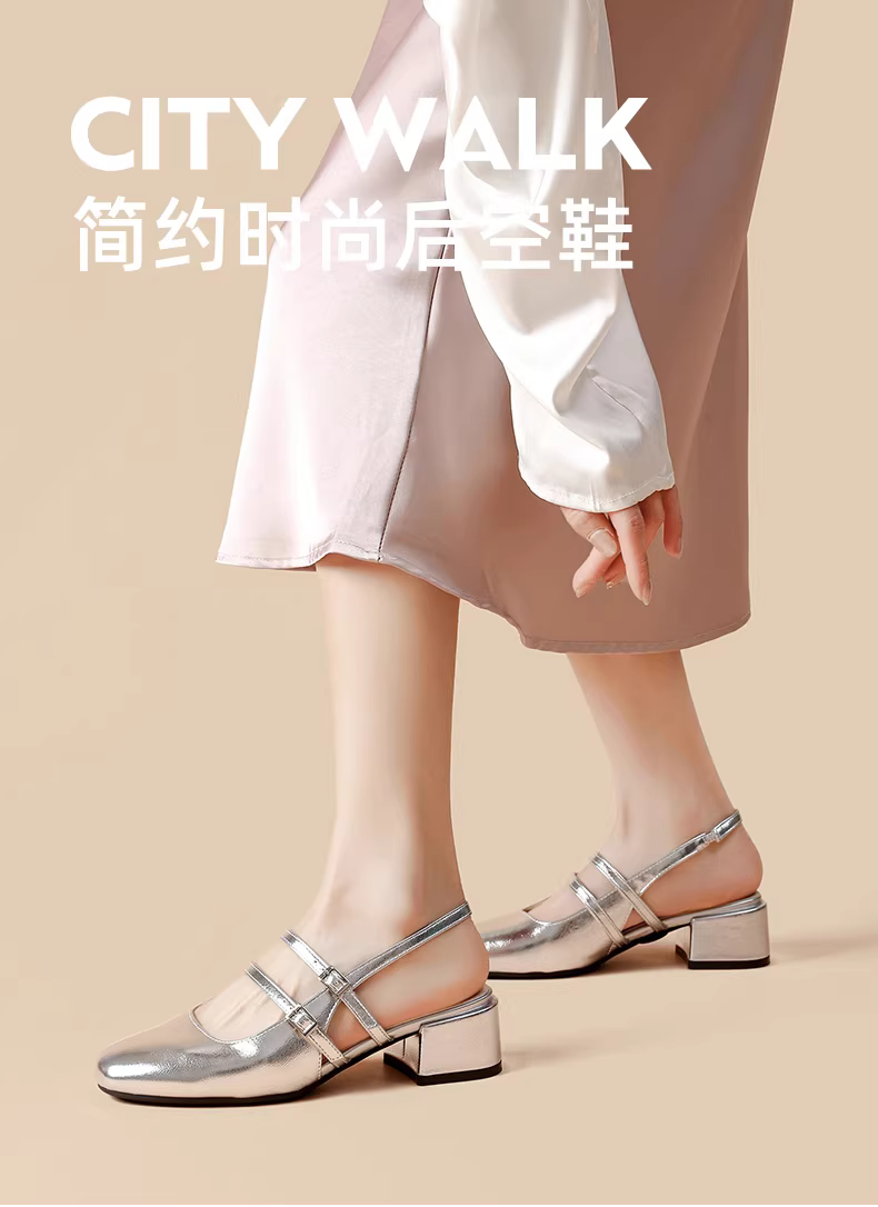 Dép quai ngang bạc Dadong dành cho nữ, áo khoác ngoài mùa hè, kiểu dáng thời trang mới năm 2025, phong cách Pháp, giày cao gót Mary Jane đế thô