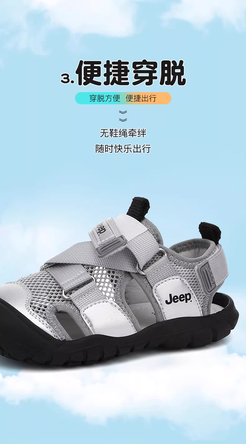 - Dép thể thao mùa hè kiểu dáng trẻ em Jeep, giày đi suối cho bé gái, mẫu mới 2025, chống trơn trượt, giày đi biển mũi kín cho trẻ em