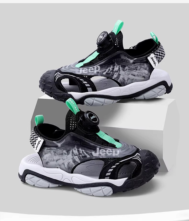 - Dép thể thao mũi kín cho bé Jeep, kiểu mùa hè 2025 mới, đế mềm chống trơn, dành cho bé trai cỡ trung và lớn, giày đi biển